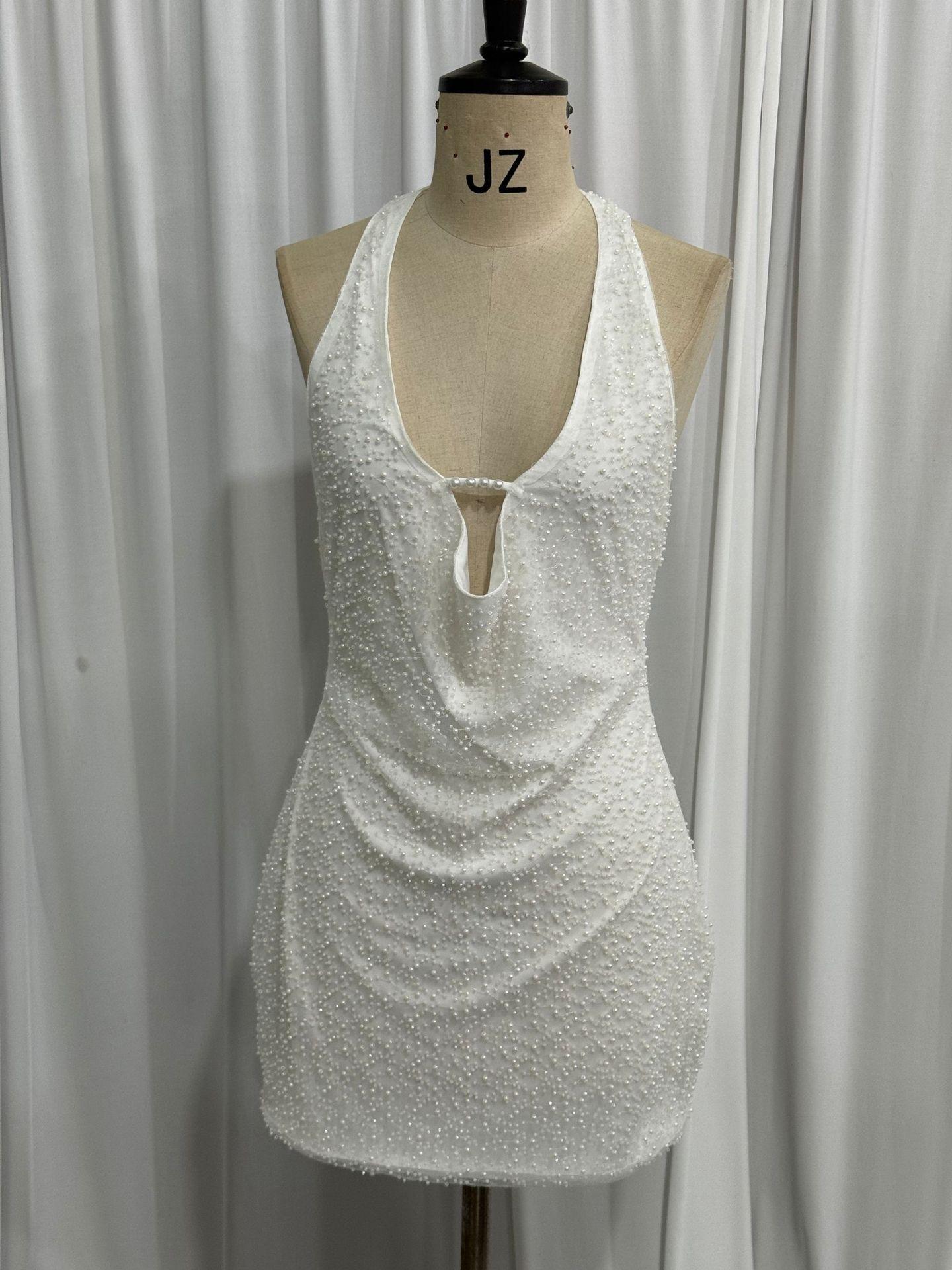Compra Falda Sexy de Chica Caliente Ajustada que Abraza las Caderas 2024 Invierno Nuevo Diseño con Cuentas Corte Profundo Abertura Halter Cuello Falda Corta al por mayor en Joom.pro