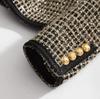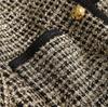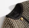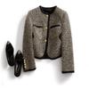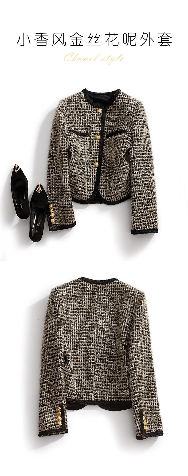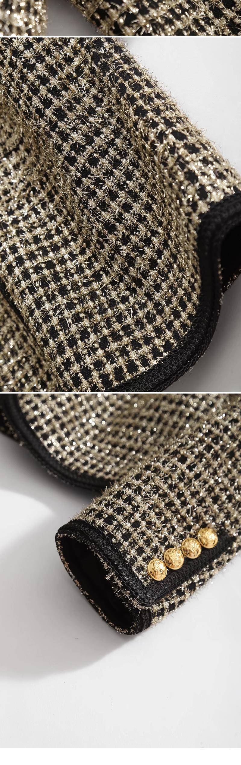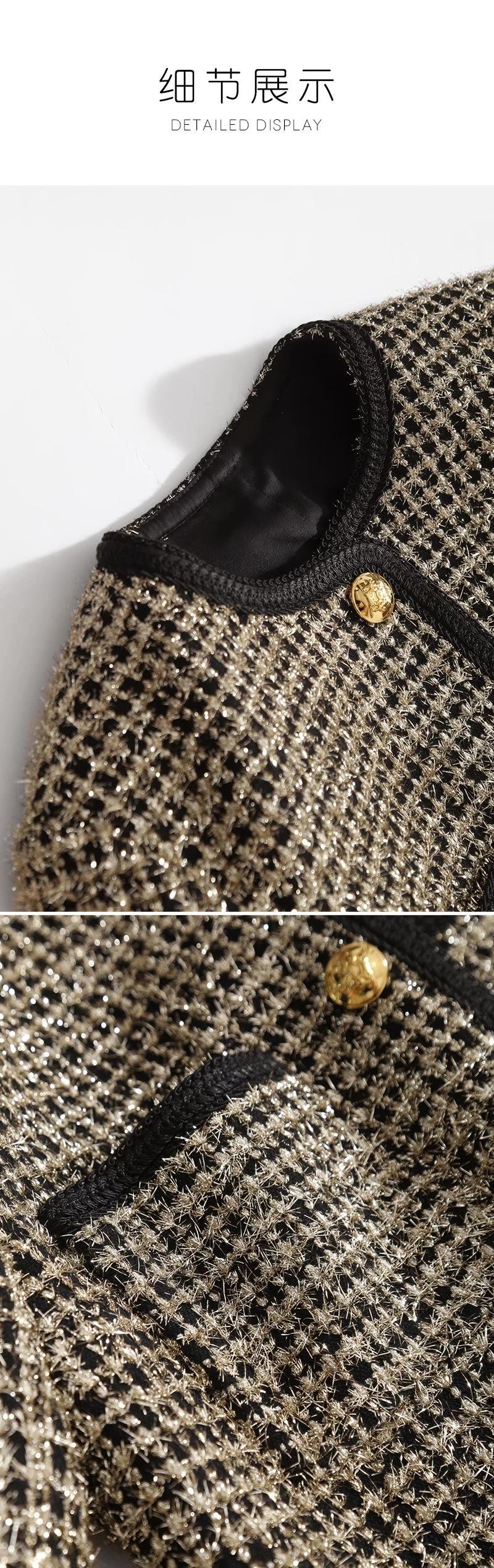 Abrigo de tweed de seda brillante con tejido de estilo Chanel, elegante y de color contrastante para mujer, de otoño e invierno, corto y dorado.