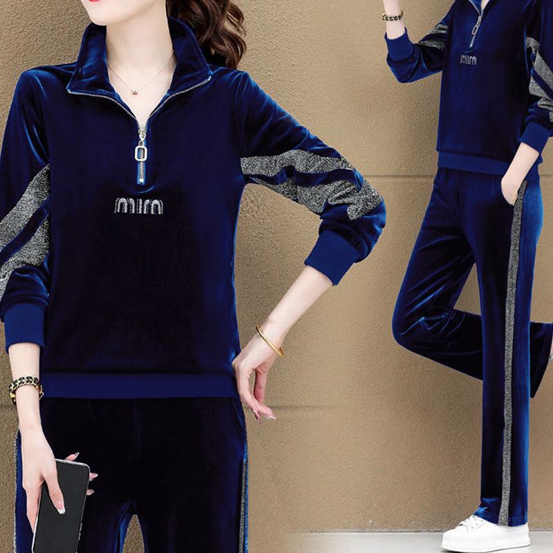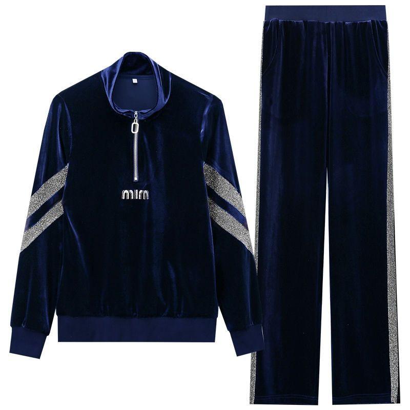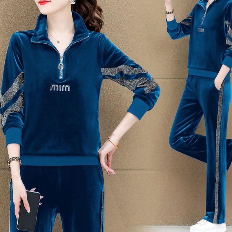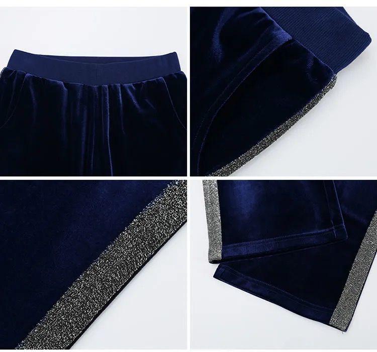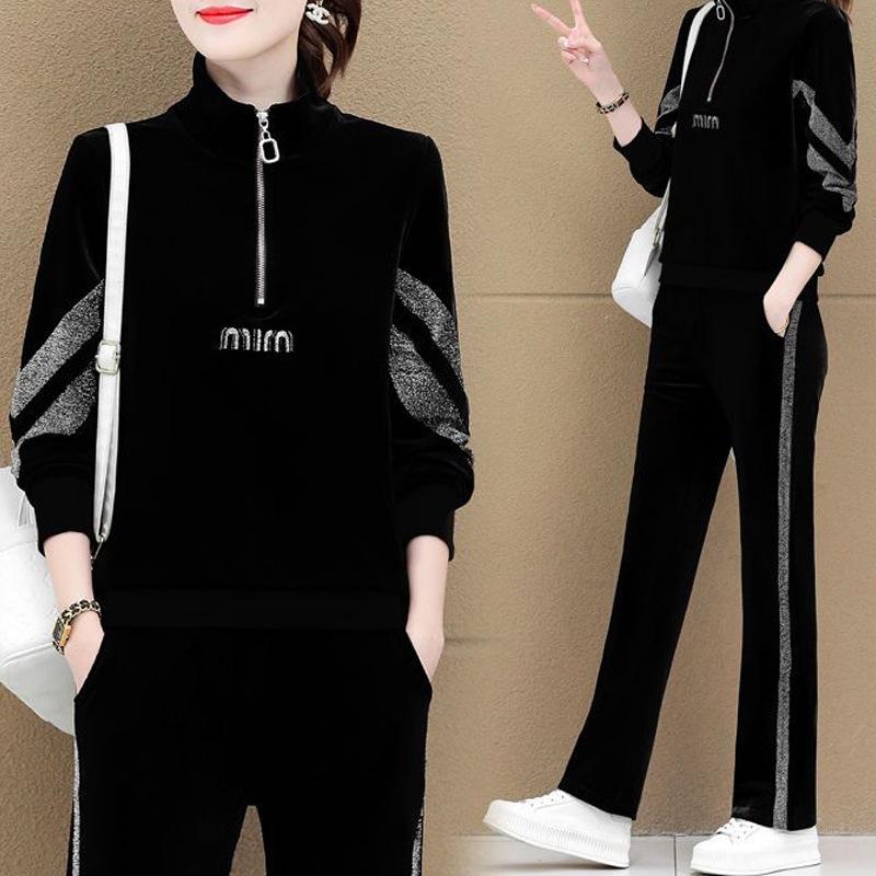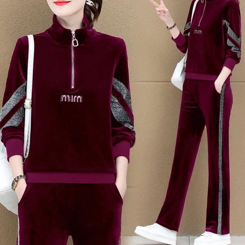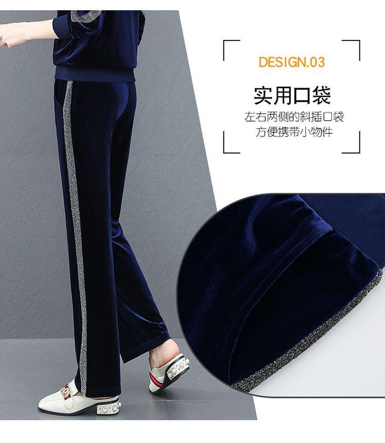 Traje deportivo casual de terciopelo dorado para mujer Primavera y Otoño 2024 Nuevo Conjunto elegante de dos piezas holgado de pierna ancha que reduce la edad