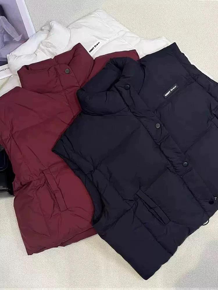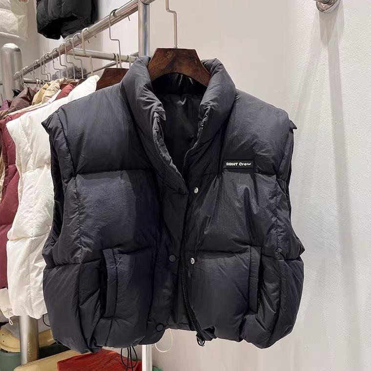 Chamarra de Plumas 2025 Otoño e Invierno Nuevo Estilo Coreano Holgado Cuello Alto Chaleco Corto Casual Elegante Versátil Exterior Chaleco para Mujer