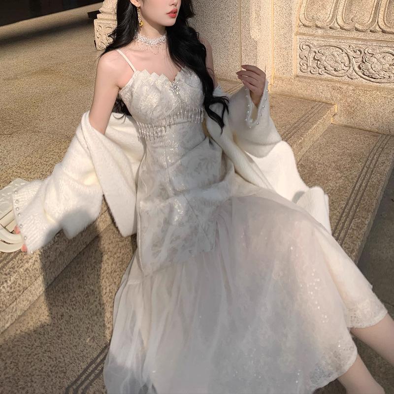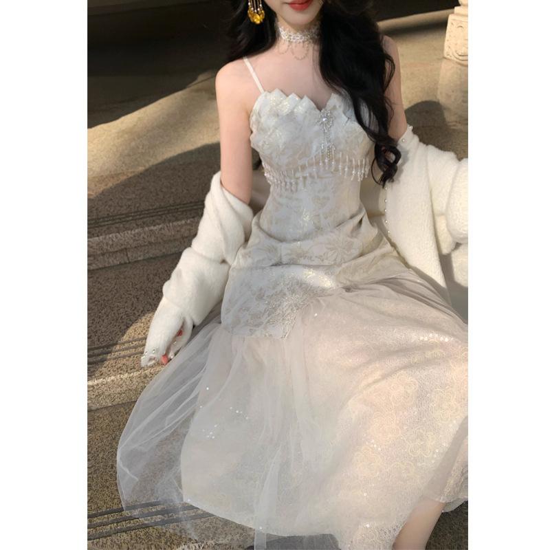 Vestido adelgazante de Jacquard con falda alta tipo ji, estilo hada poética y luz de luna, con licencia nueva aprobada para mujer.