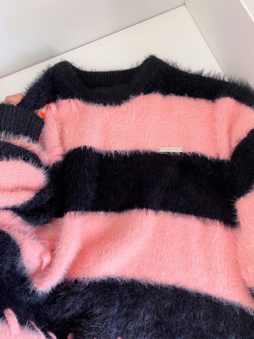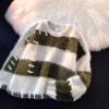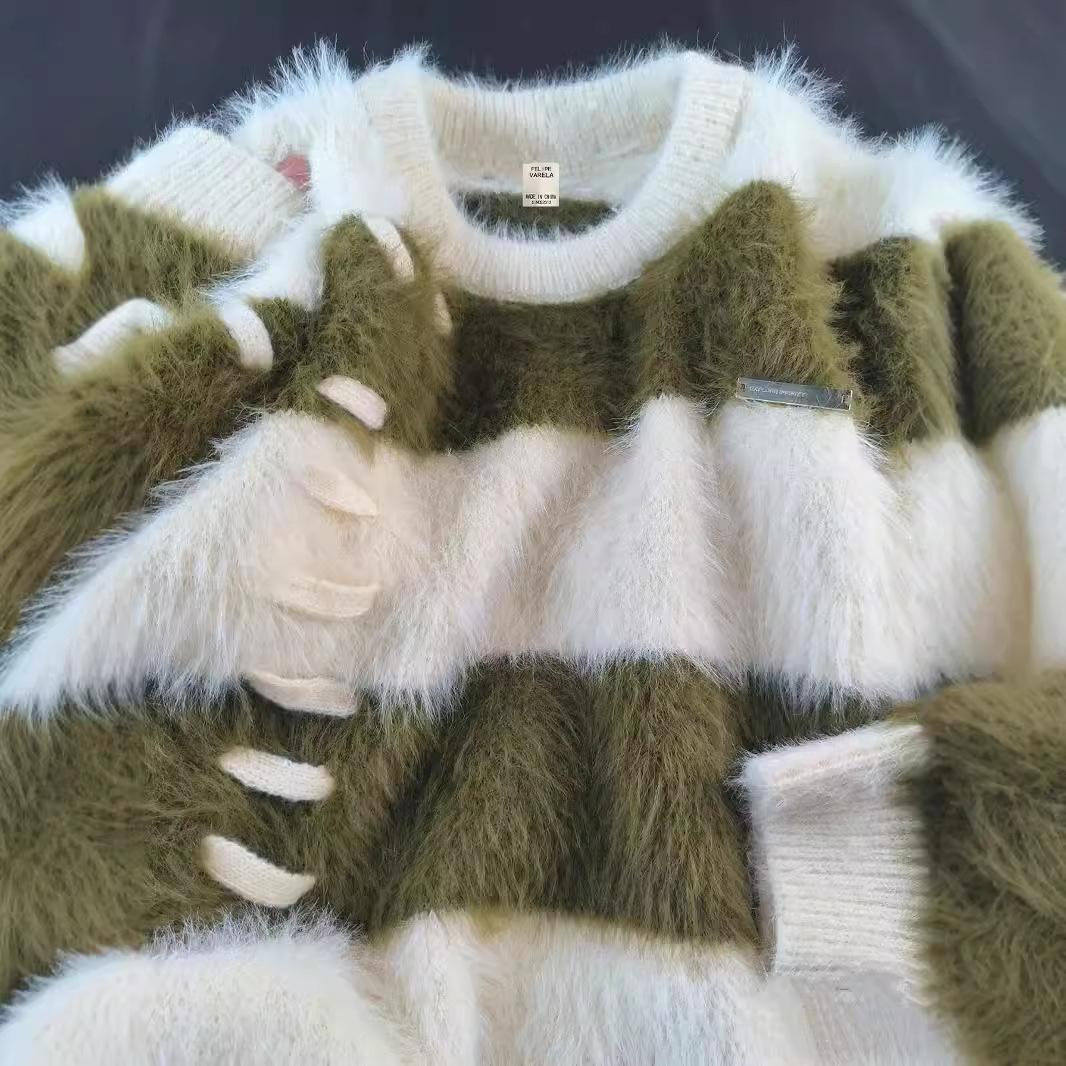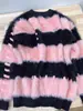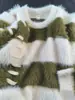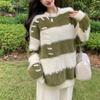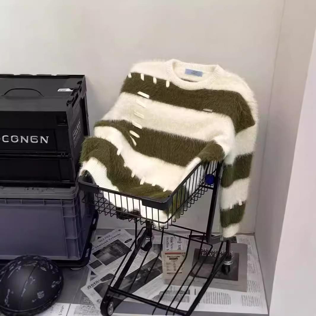Suéter Holgazán de Visón de Alta Calidad Estilo Japonés, Cuello Redondo, Tejido Holgado, Otoño e Invierno Tejido de Punto Nicho a Rayas Estilo Coreano para Parejas