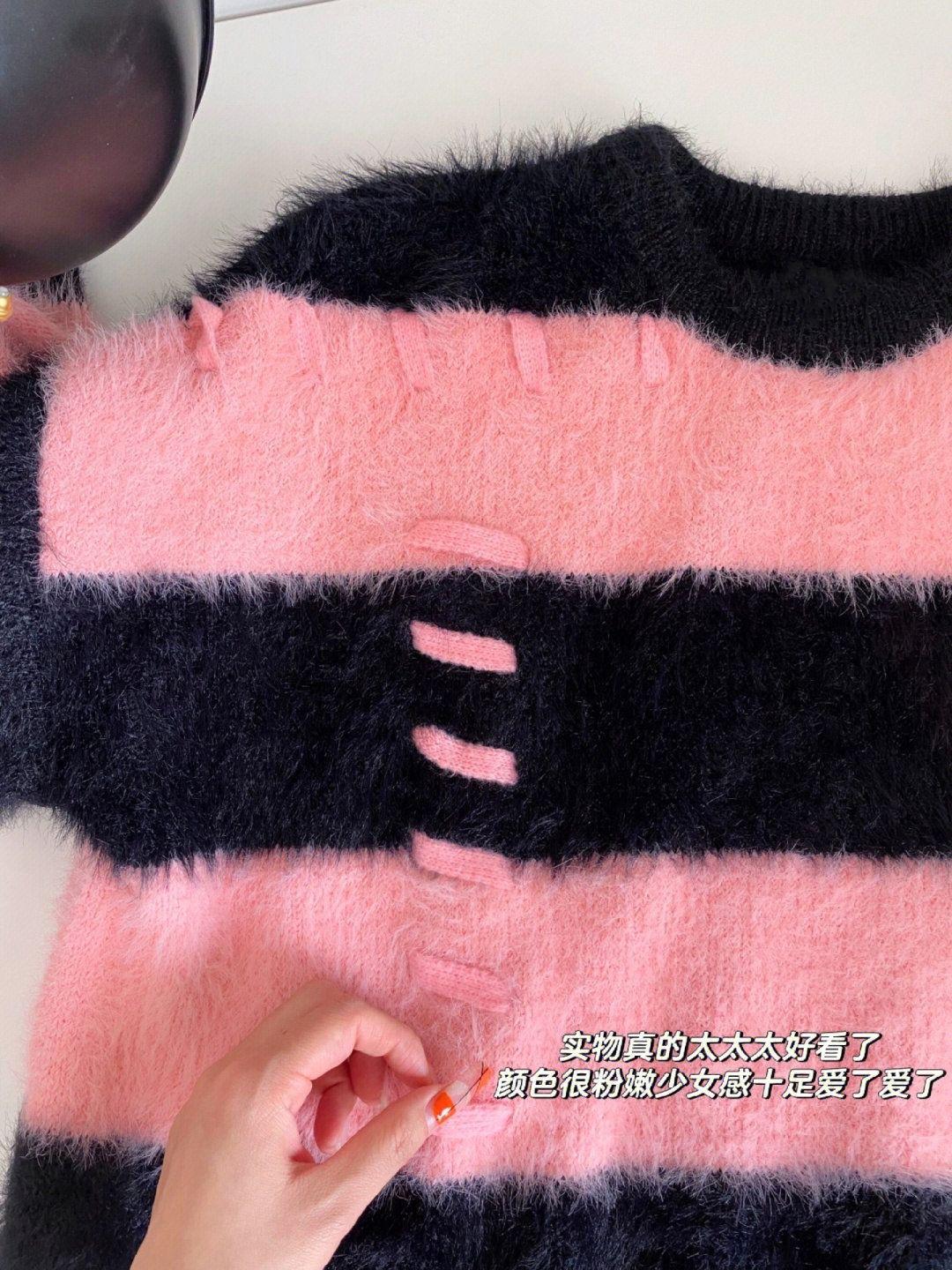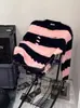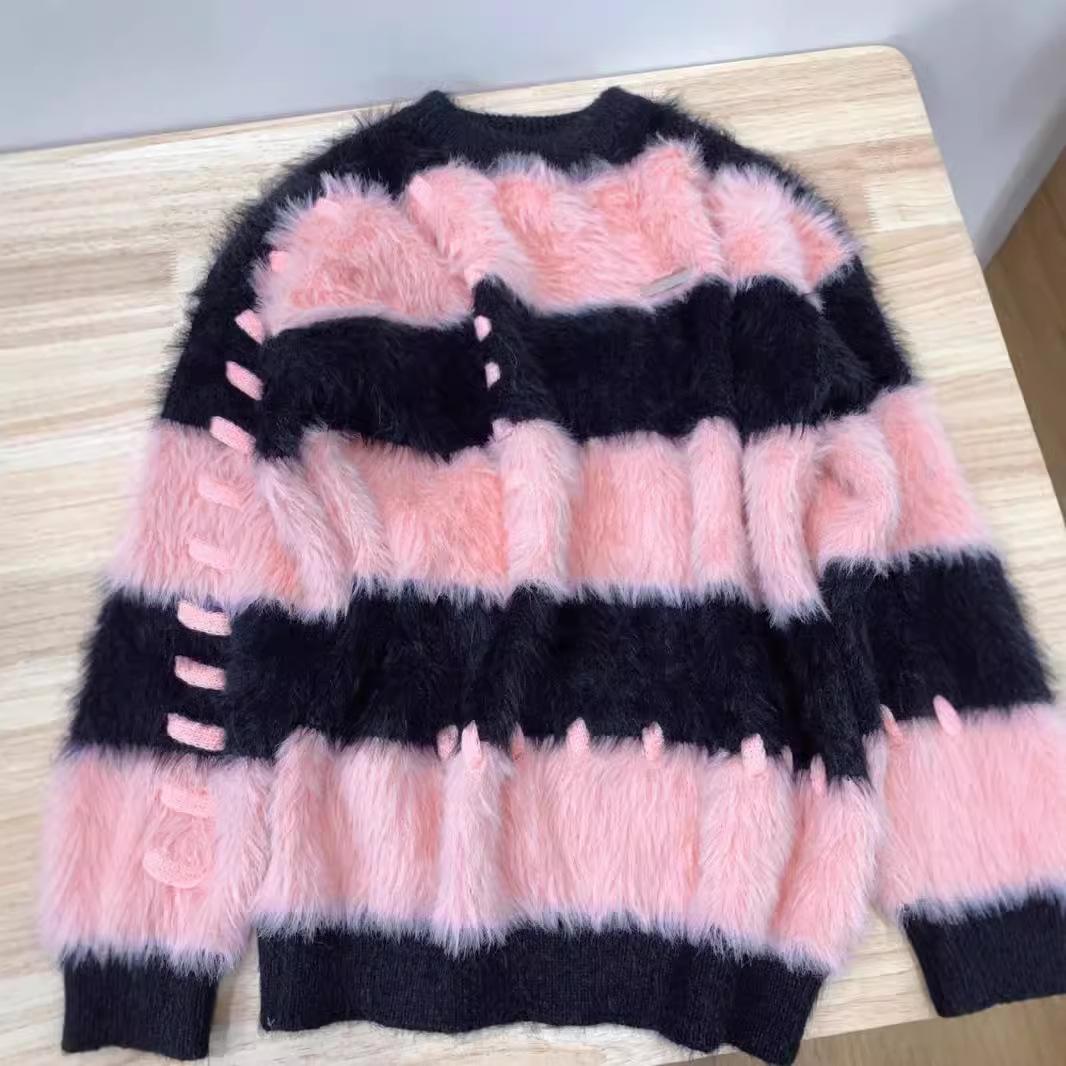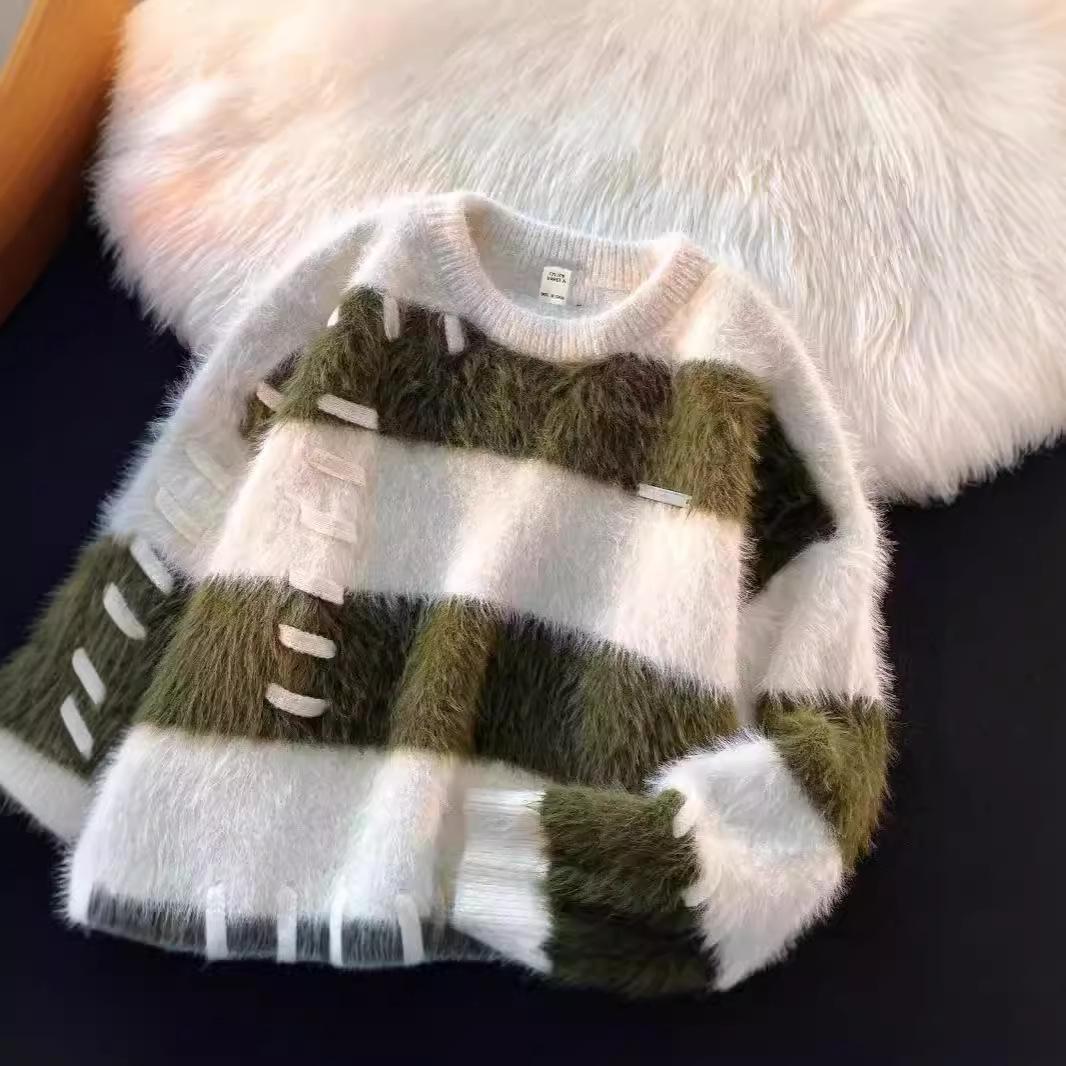 Suéter Holgazán de Visón de Alta Calidad Estilo Japonés, Cuello Redondo, Tejido Holgado, Otoño e Invierno Tejido de Punto Nicho a Rayas Estilo Coreano para Parejas
