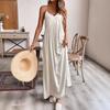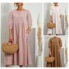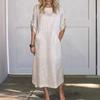 Vestido de algodón y lino de color liso para mujer, estilo informal, holgado, estilo A, estilo europeo y americano.
