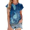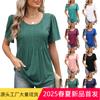 Amazon Europa y Estados Unidos comercio exterior transfronterizo primavera y verano 2025 nueva camiseta top de manga corta suelta con cuello redondo estampado para mujer