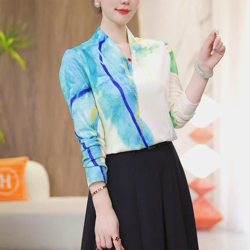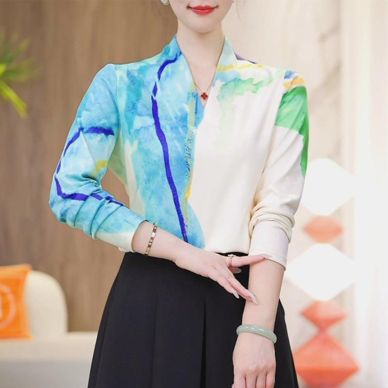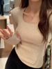 2025 Primavera Nuevo Estilo Terciopelo Alemán Cálido, Estilo Occidental, Lujo Accesible, Camiseta Básica Simple y Ajustada de Cuello en V de Manga Larga