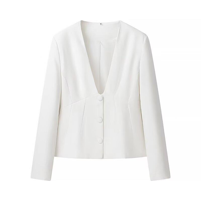 Chaqueta de traje con cuello en V y pantalones largos informales de moda transfronteriza europea y americana, primavera 2025, C92376