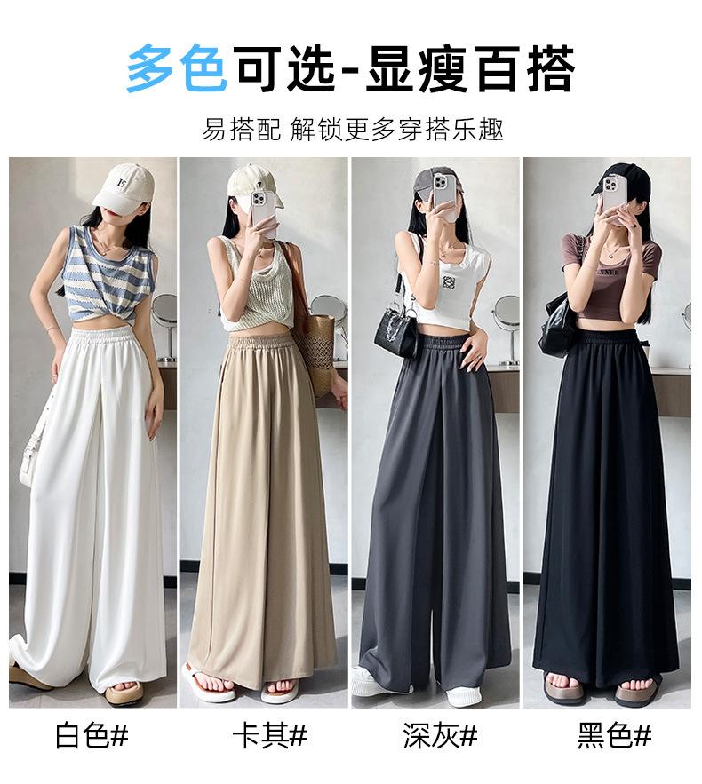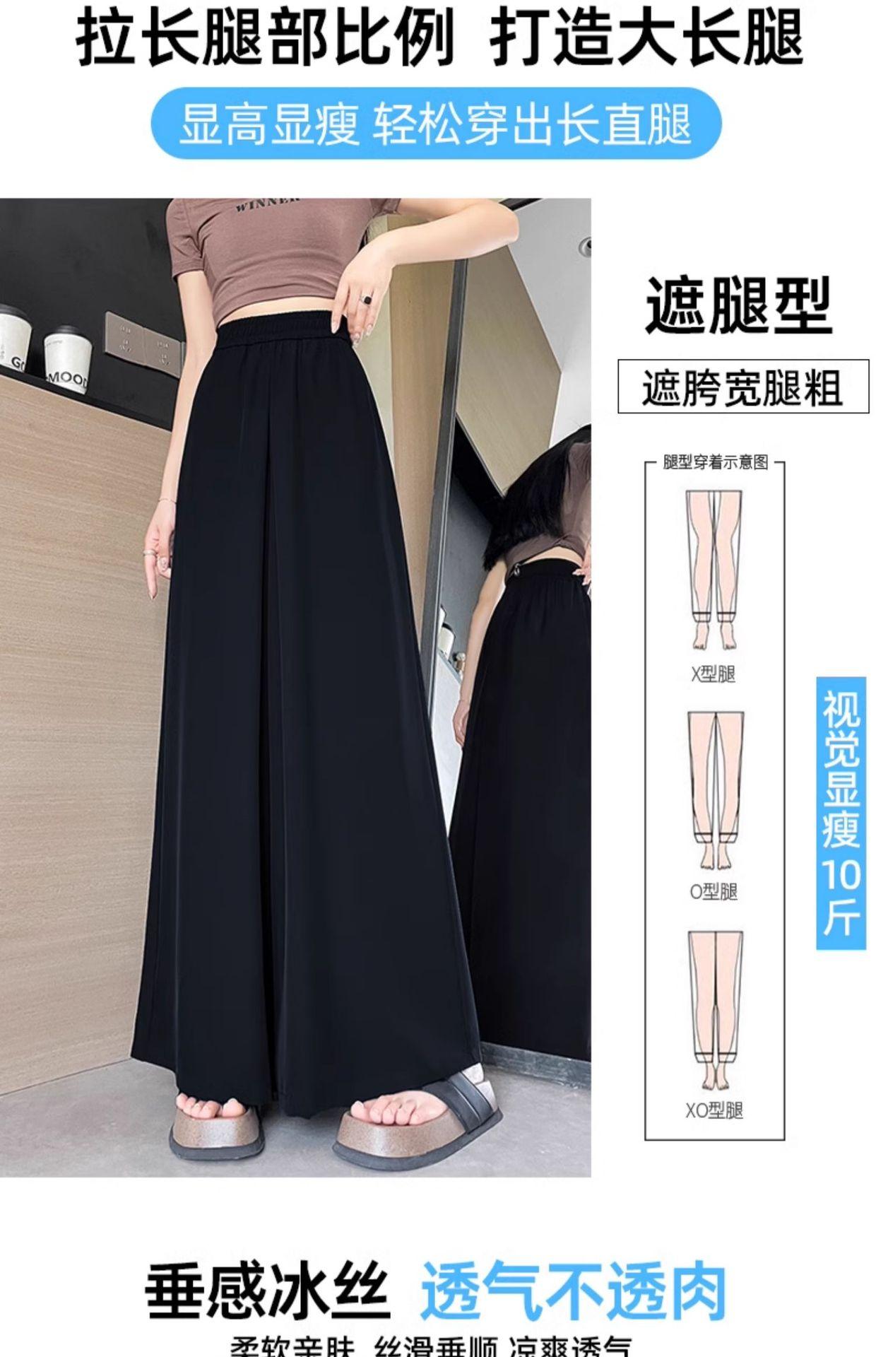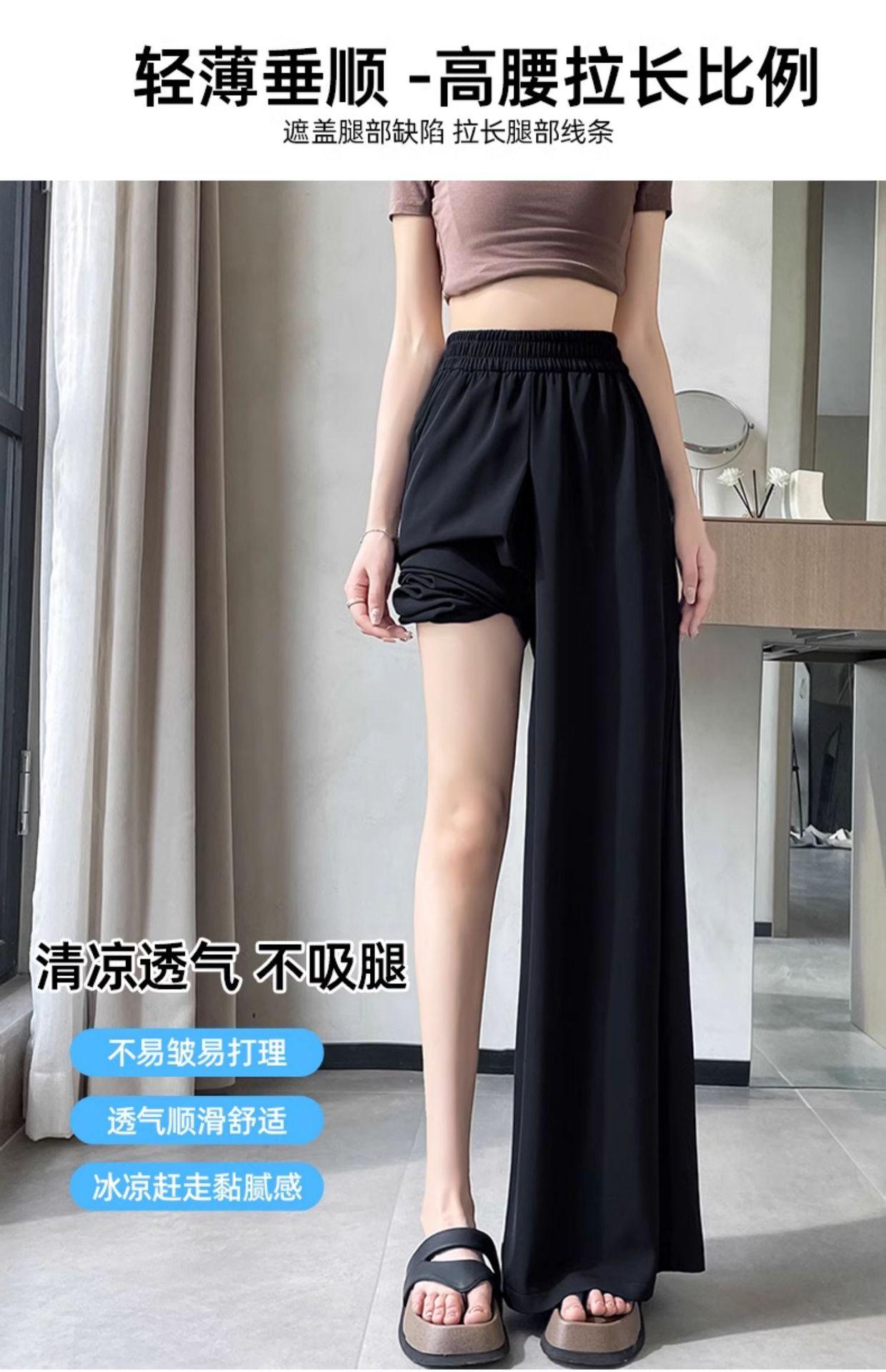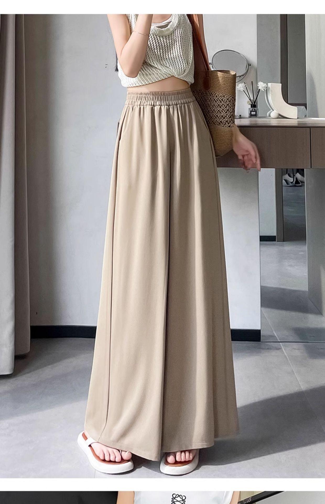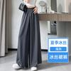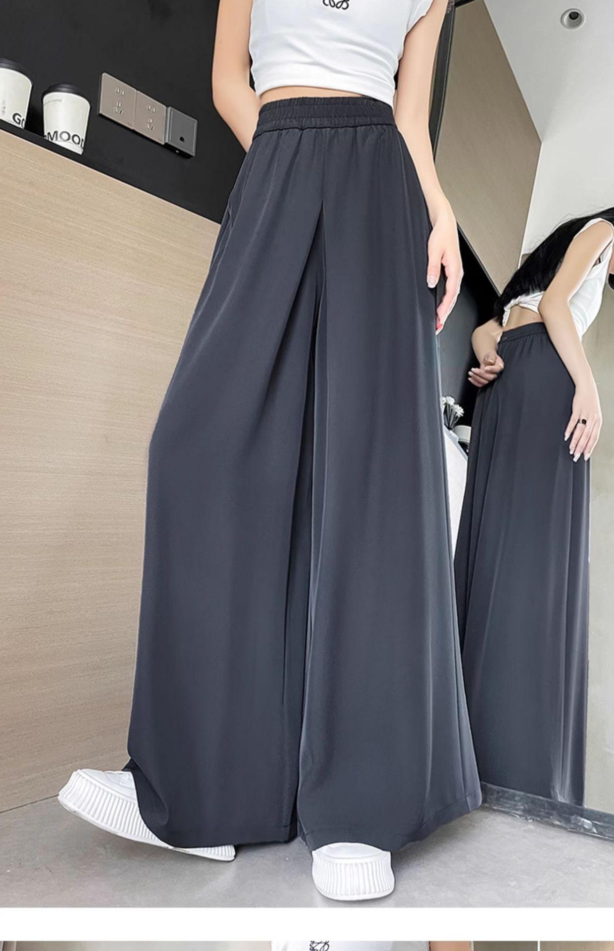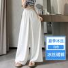 Pantalones culotte de seda helada de cintura alta y fina de verano para mujer, novedad de 2024, pantalones holgados informales de pierna ancha y corte entallado.
