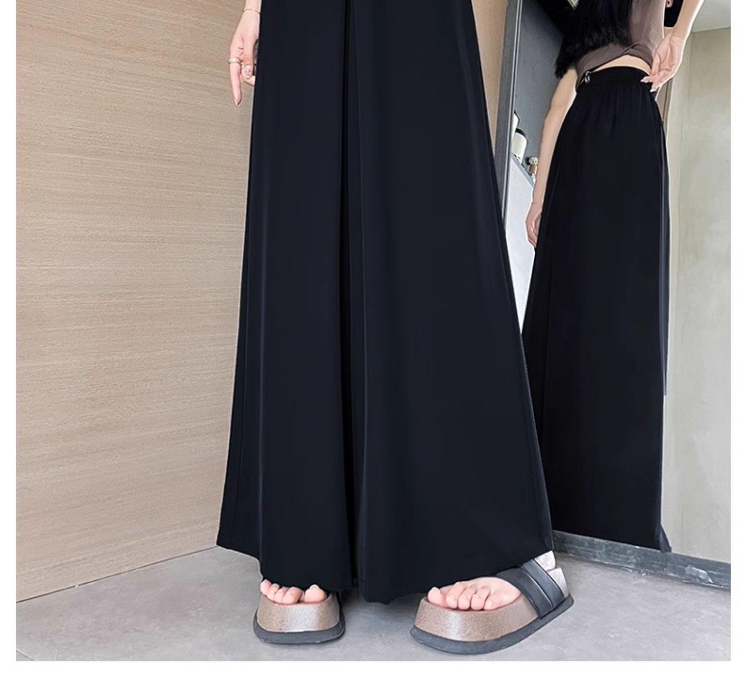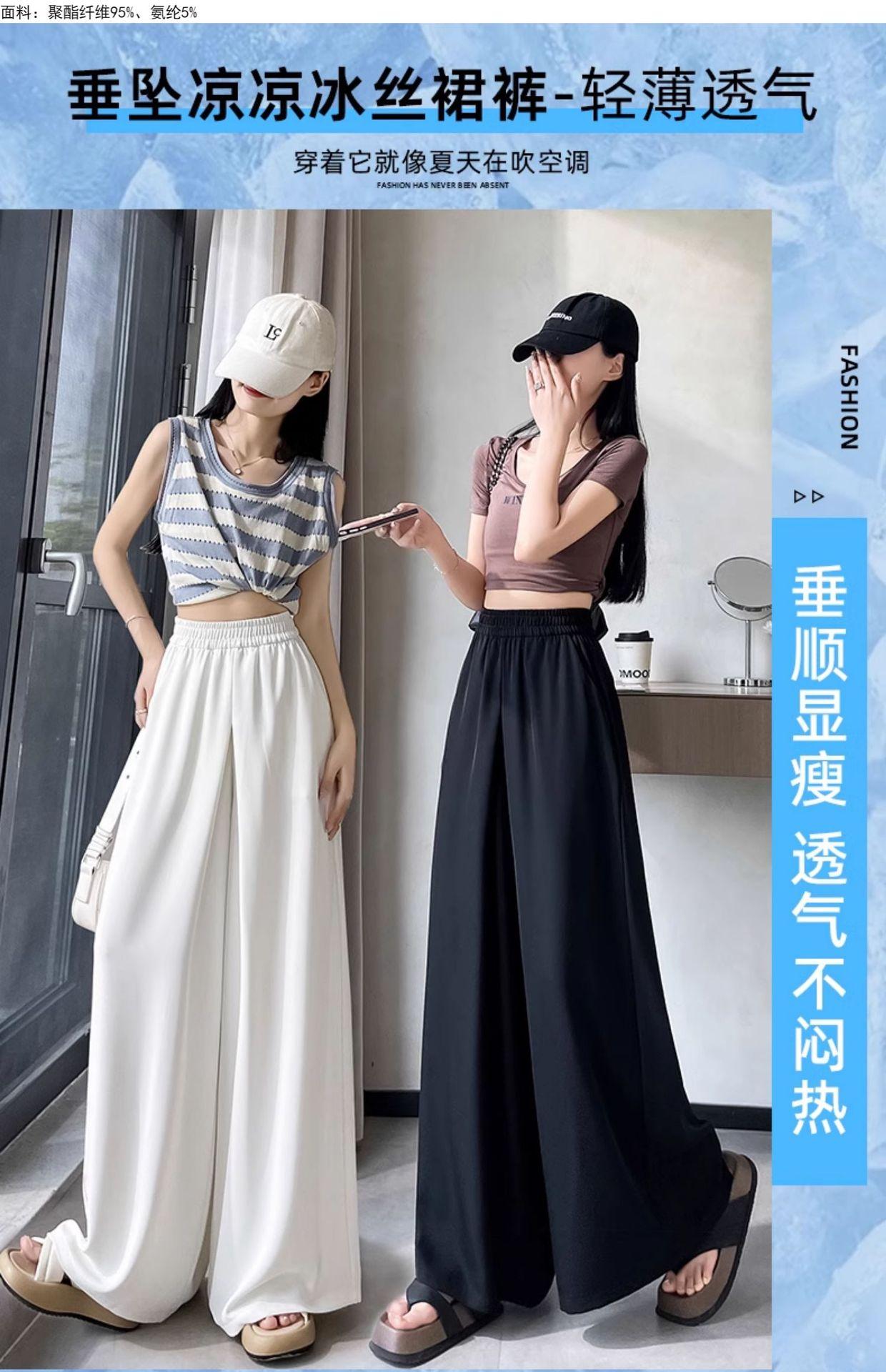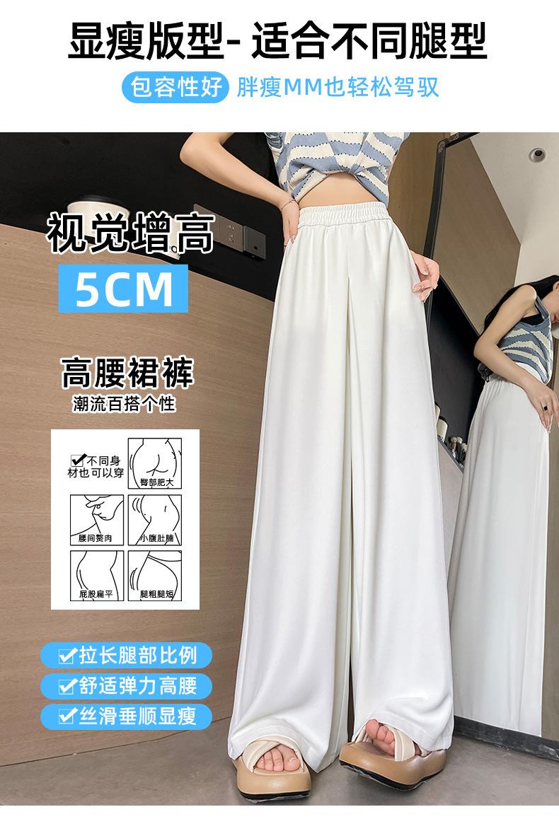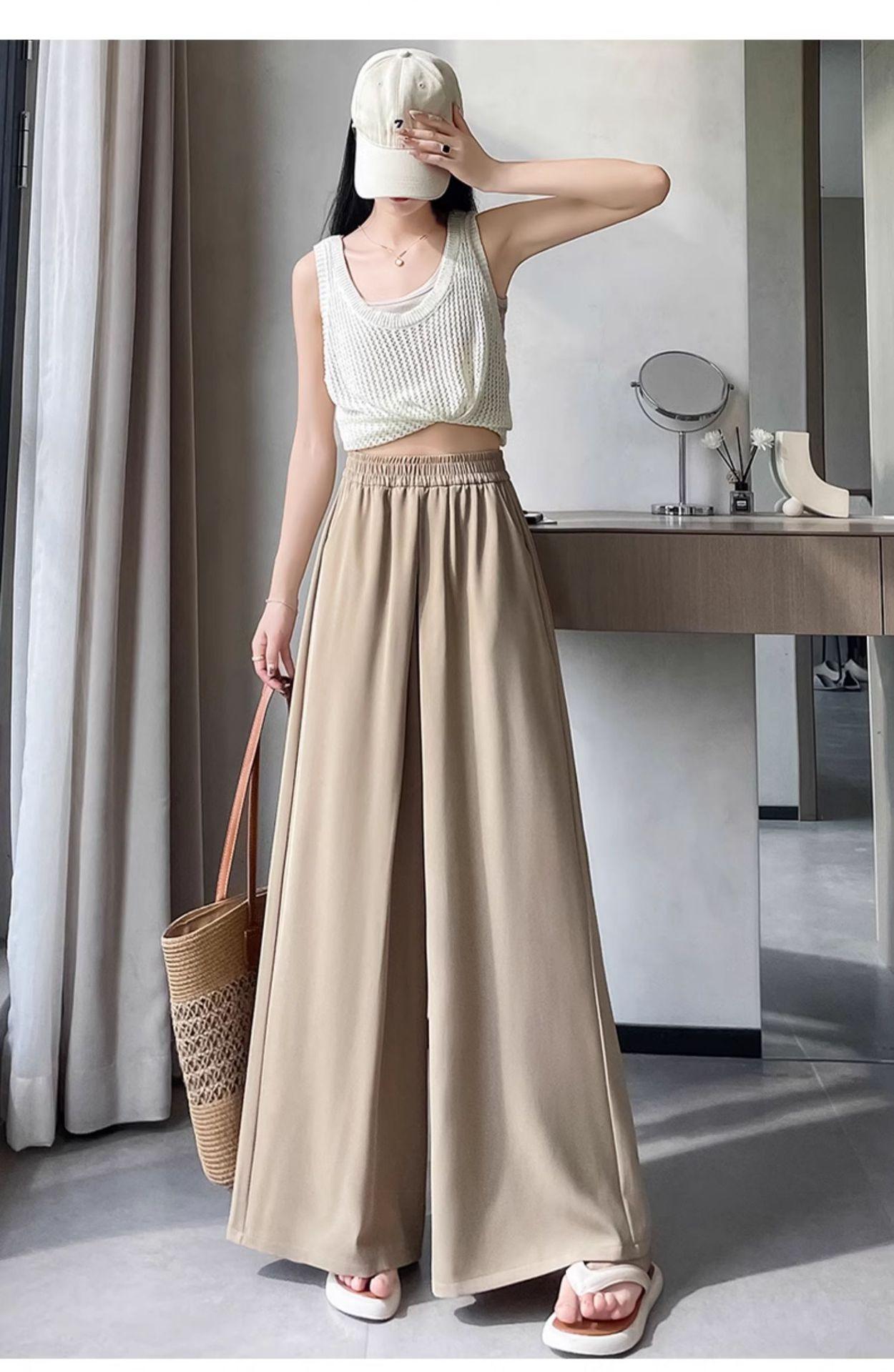 Pantalones culotte de seda helada de cintura alta y fina de verano para mujer, novedad de 2024, pantalones holgados informales de pierna ancha y corte entallado.