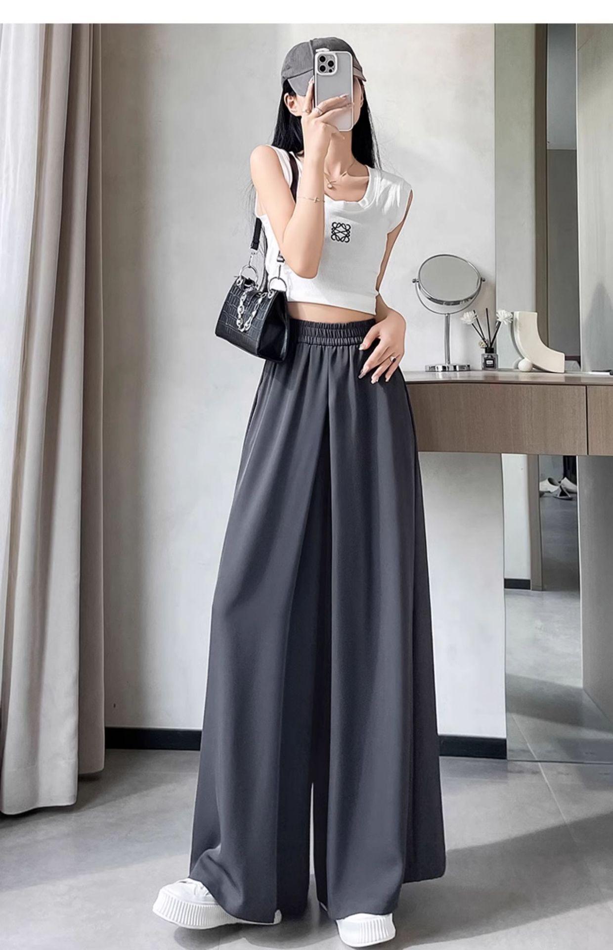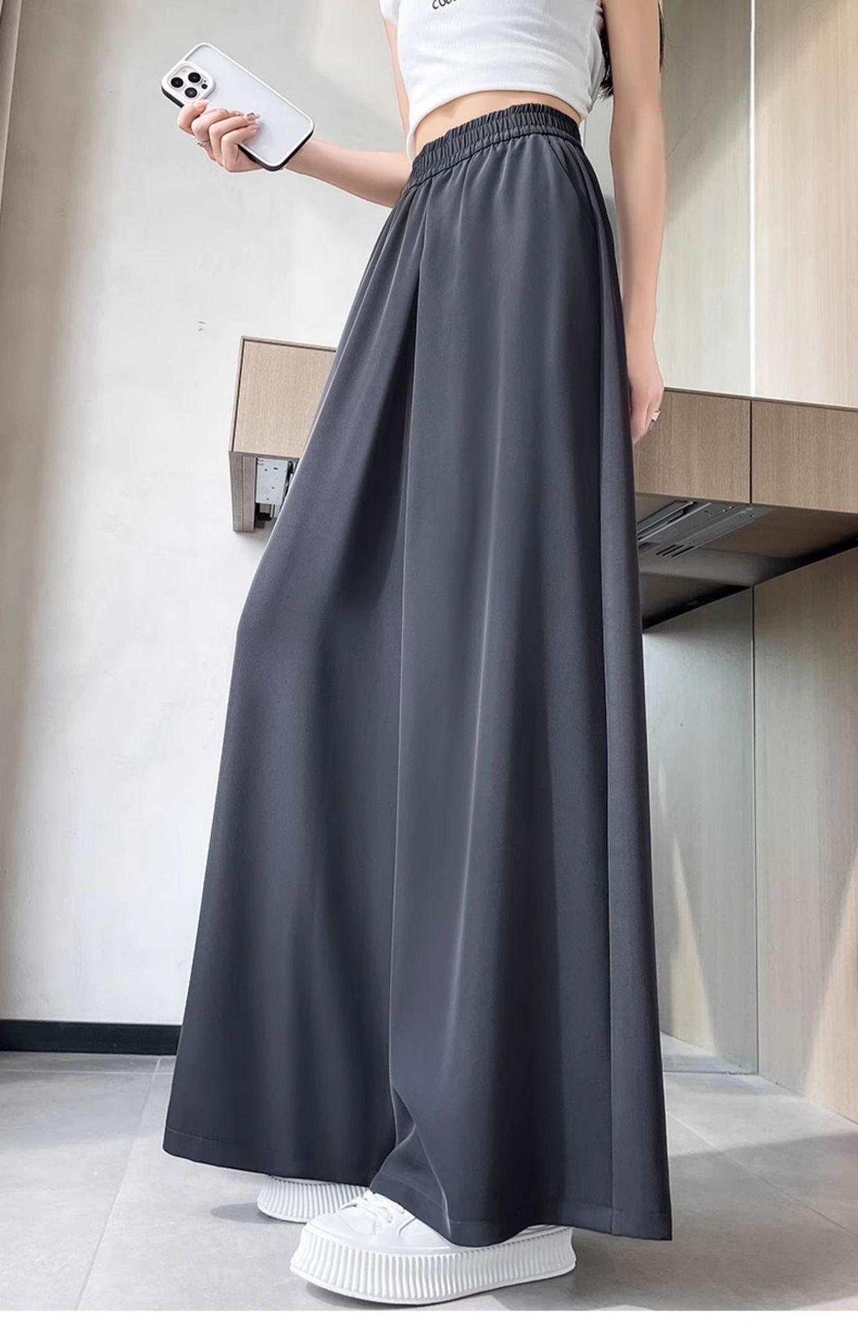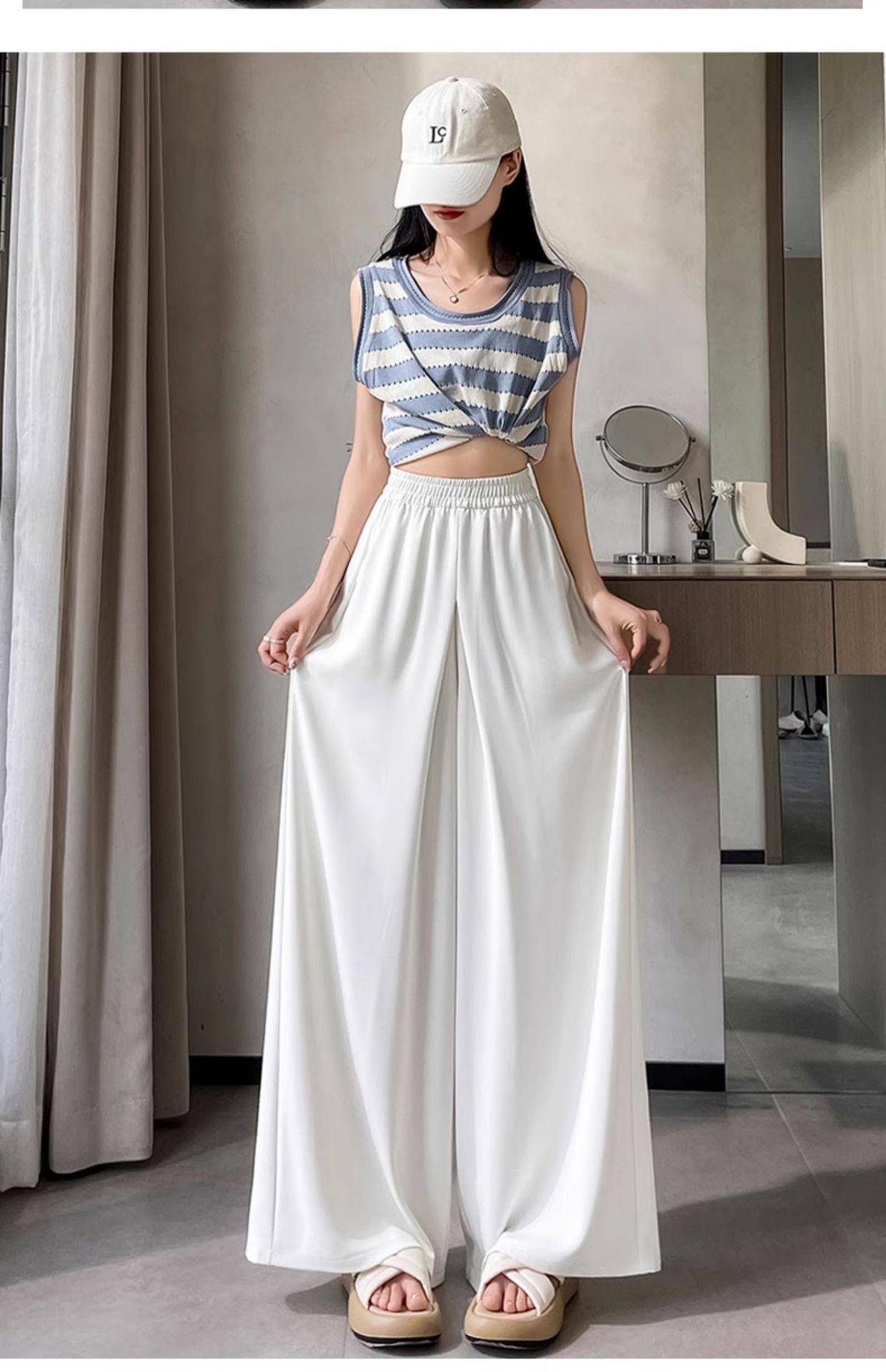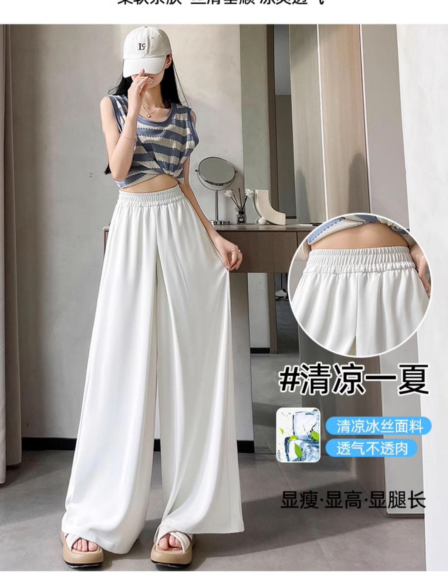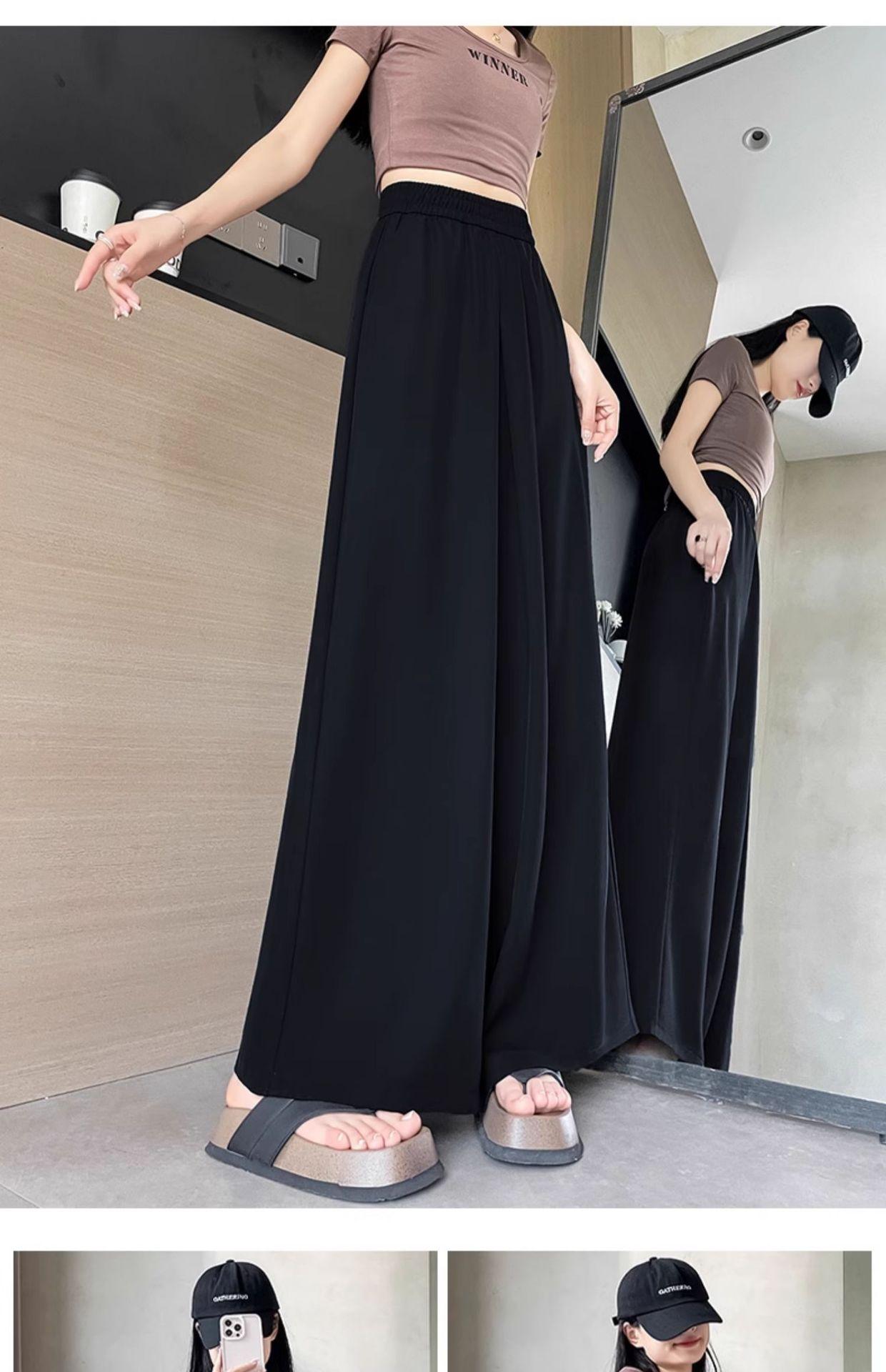 Pantalones culotte de seda helada de cintura alta y fina de verano para mujer, novedad de 2024, pantalones holgados informales de pierna ancha y corte entallado.