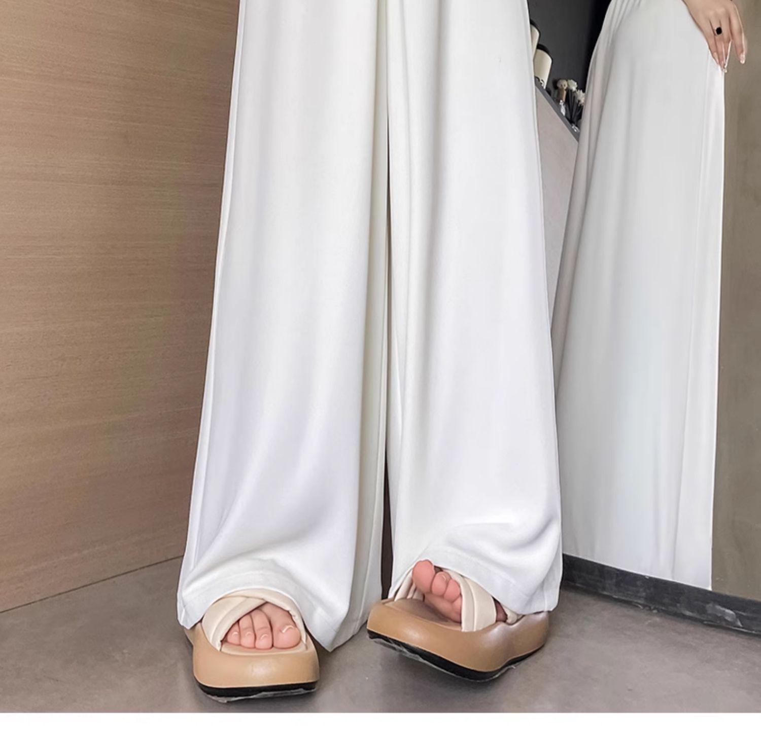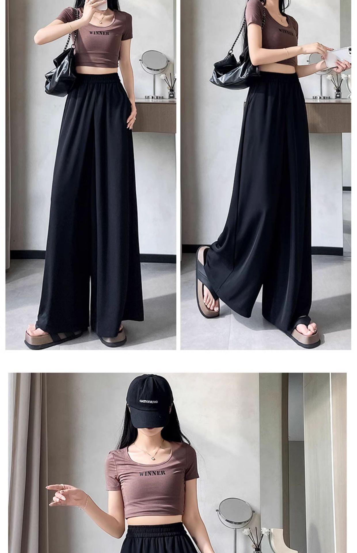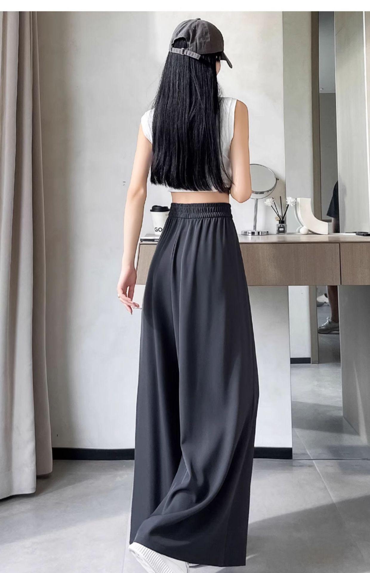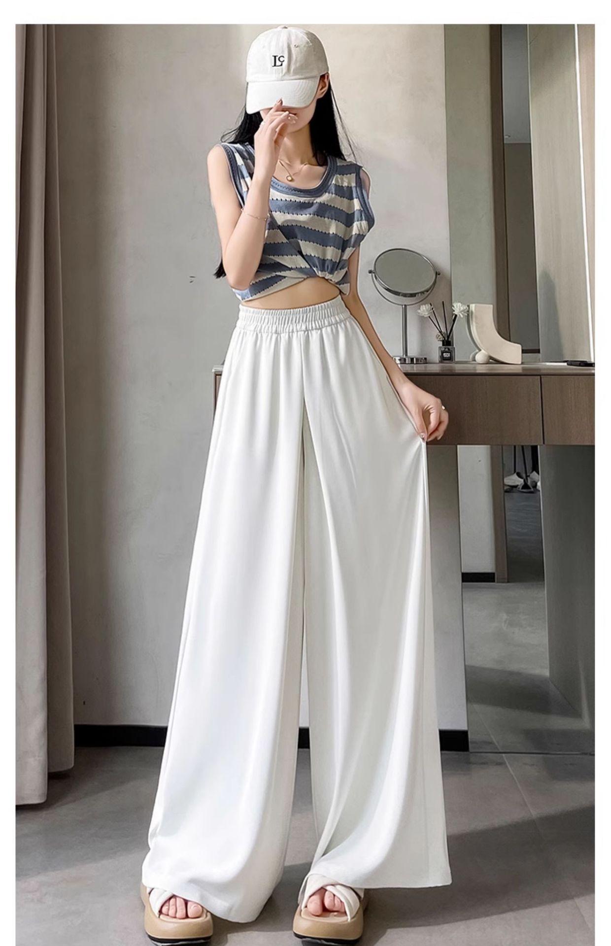 Pantalones culotte de seda helada de cintura alta y fina de verano para mujer, novedad de 2024, pantalones holgados informales de pierna ancha y corte entallado.