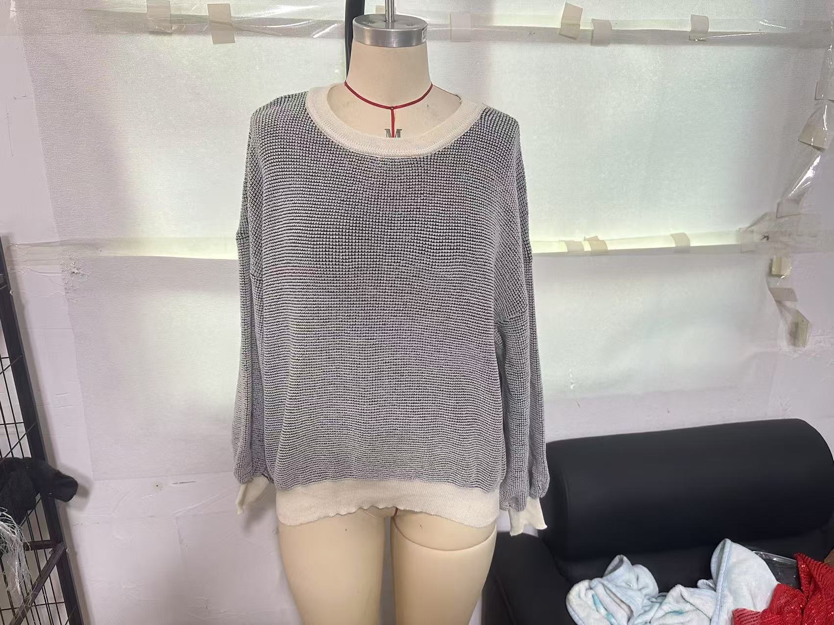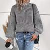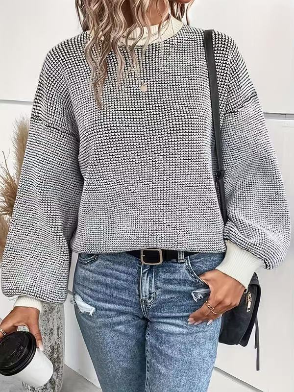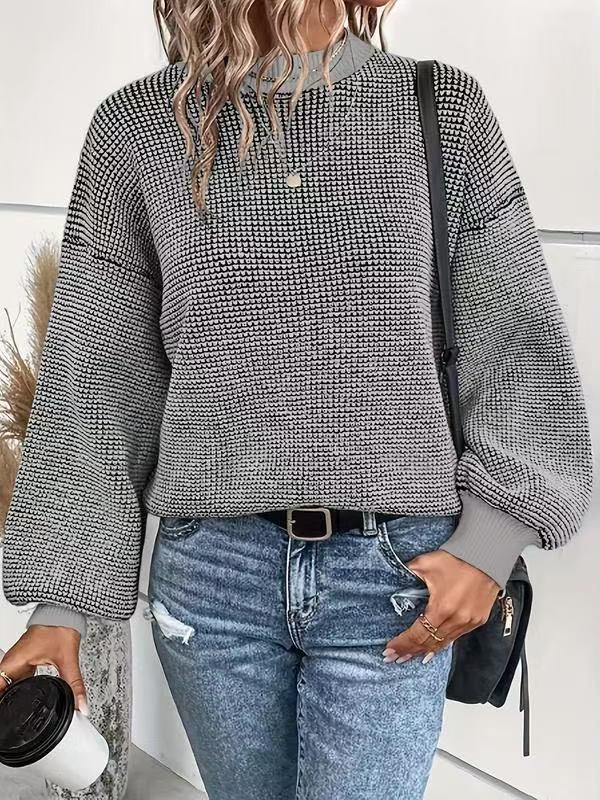Suéter de cuello redondo de punto para mujer, nuevo jersey de manga farol, informal, holgado, de color liso, para otoño e invierno, 25 unidades