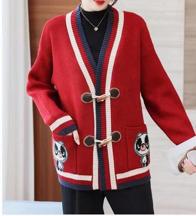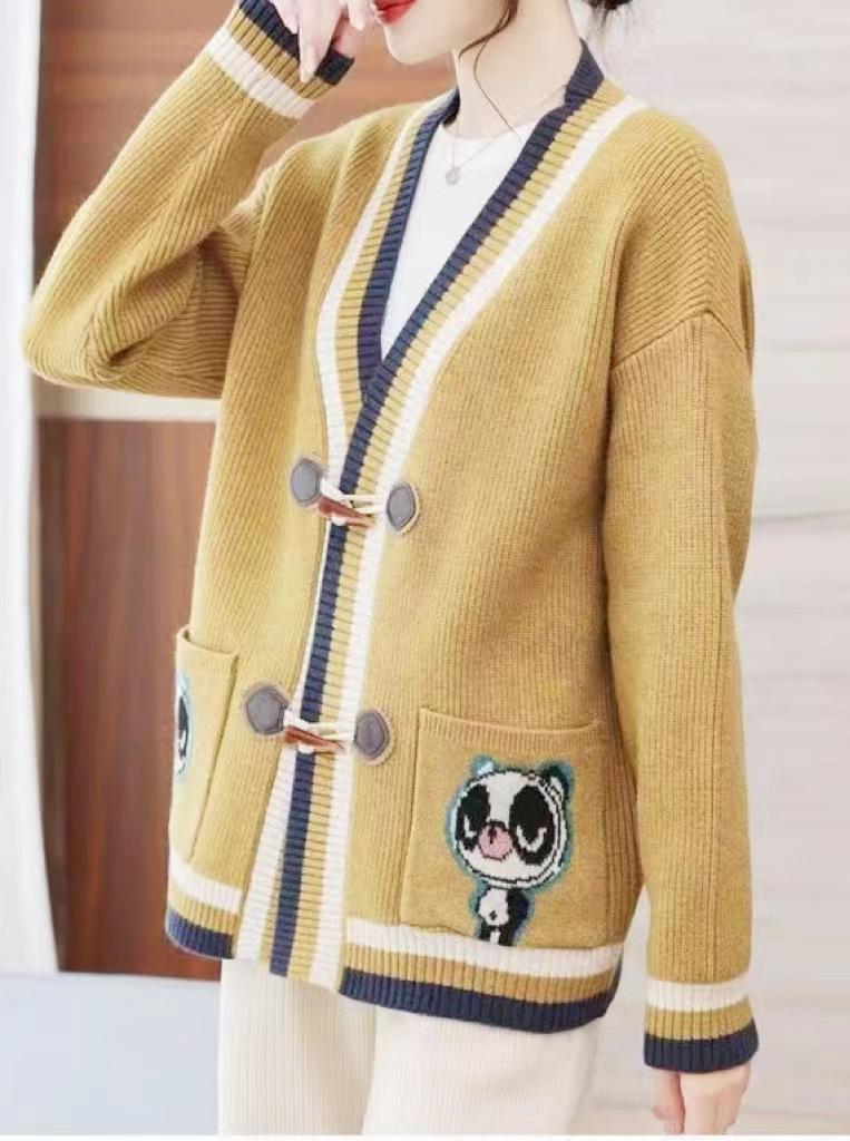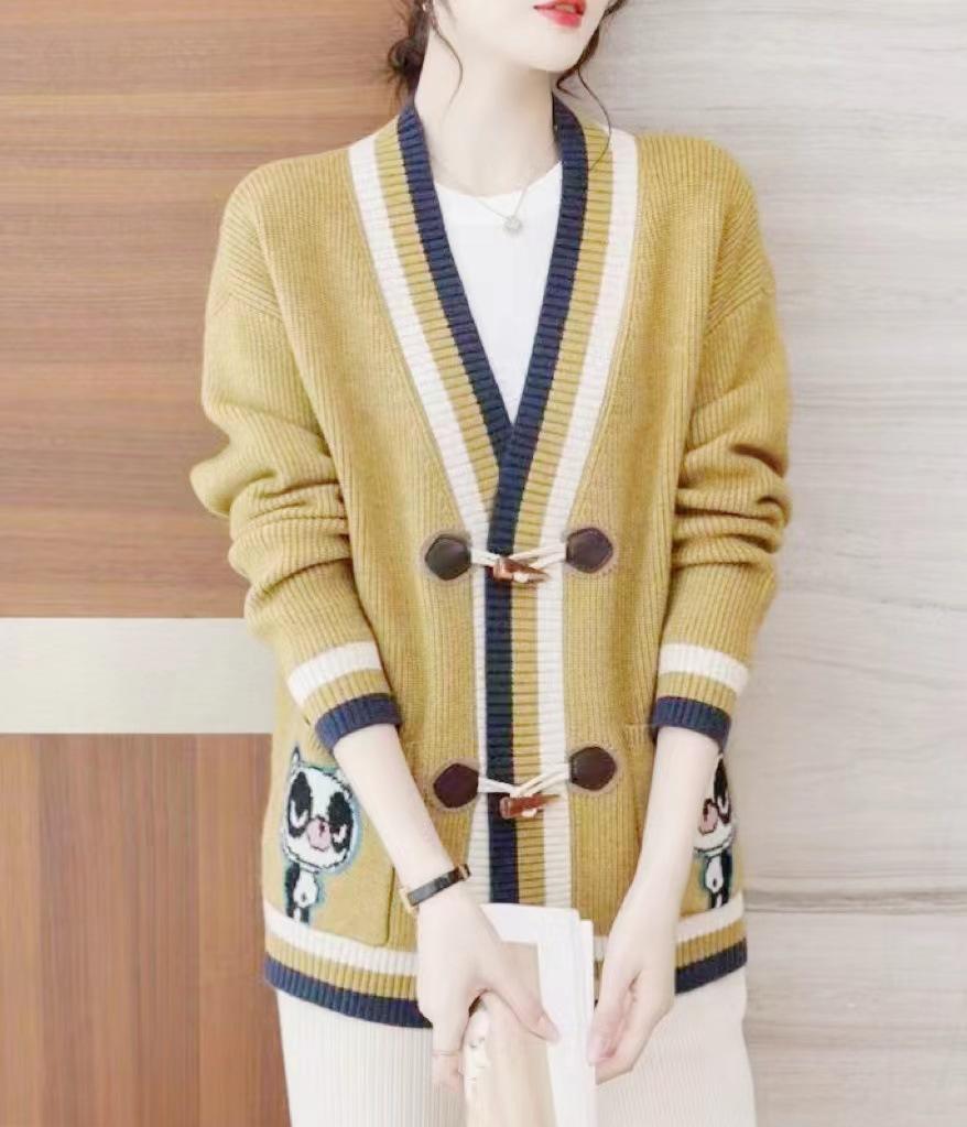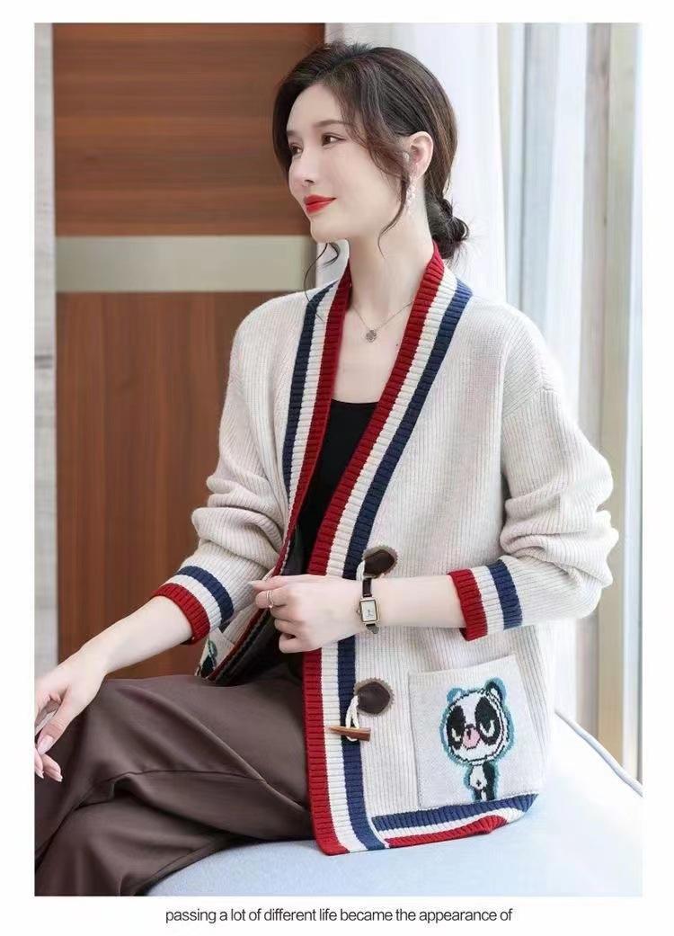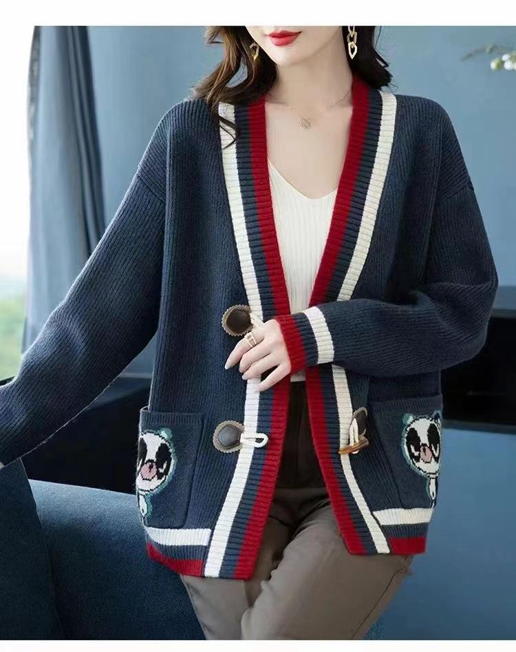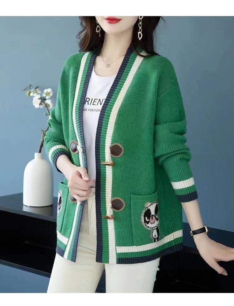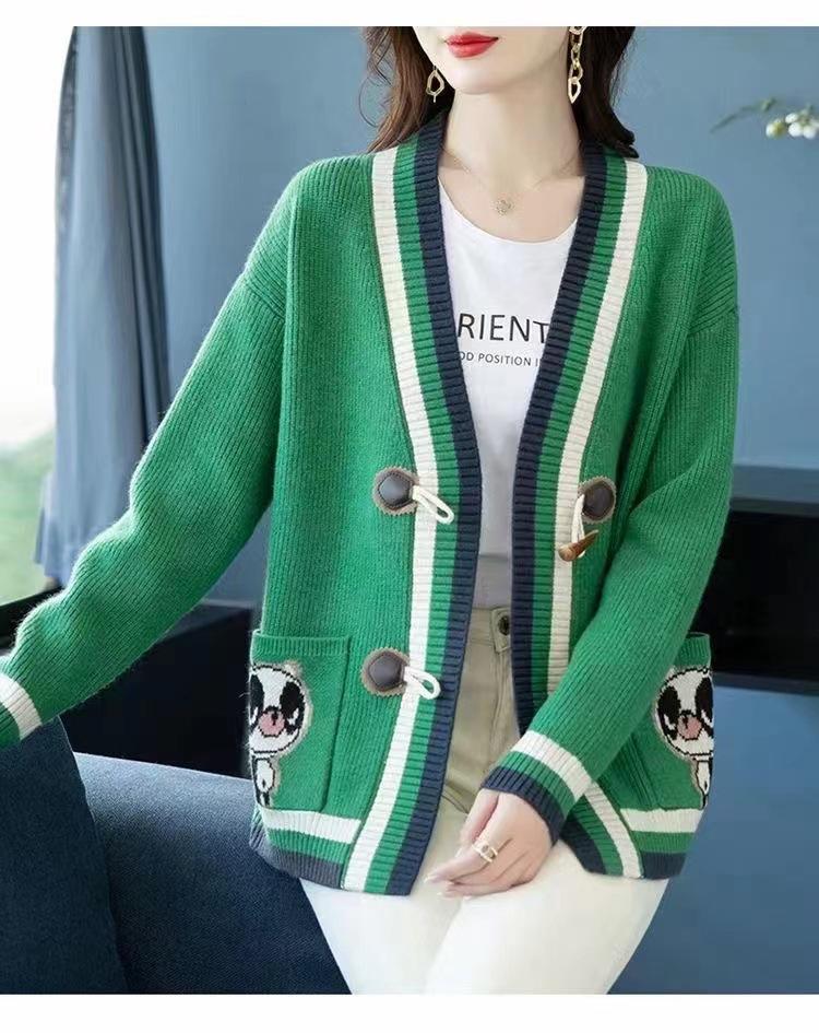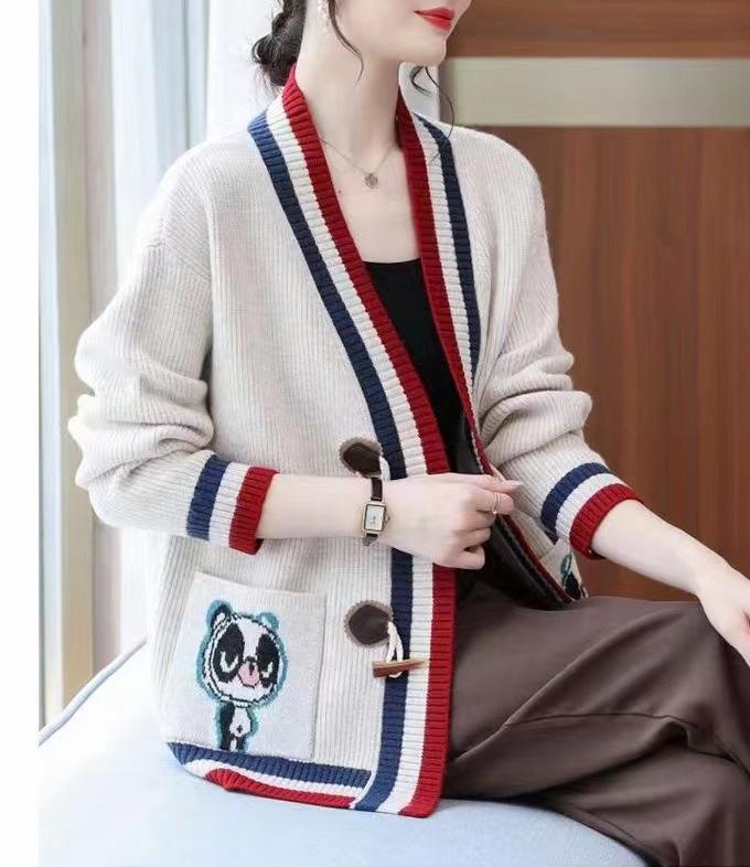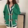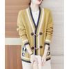 Cárdigan de Punto Casual Holgado con Cuello en V Nuevo de Otoño e Invierno Estilo Coreano para Mujer Chaqueta Suéter de Manga Larga Top Jacquard