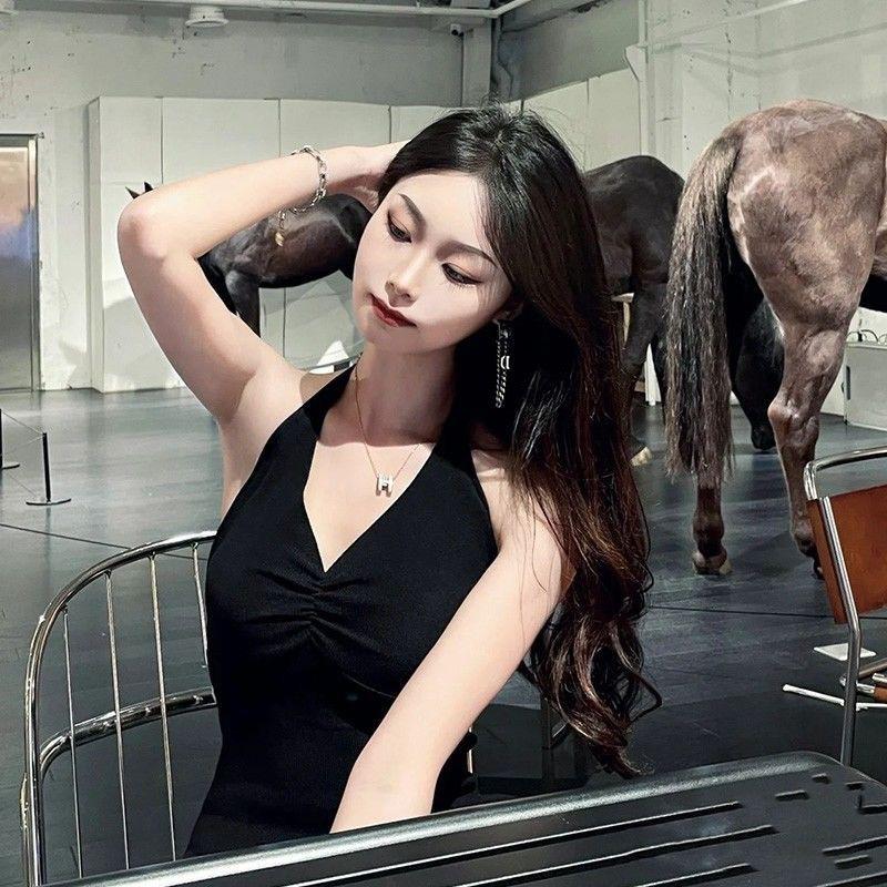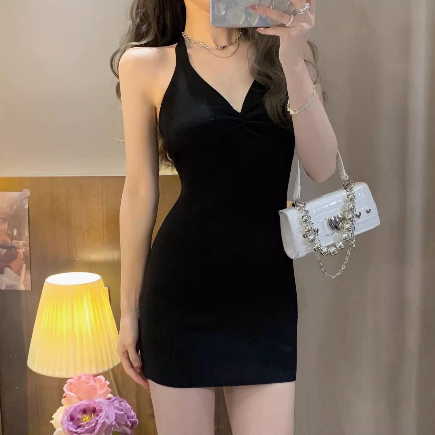 Vestido de verano 2025 para mujer, estilo francés, con cuello en V, adelgazante, estilo Spice Girls, falda con tirantes sin espalda