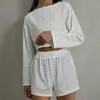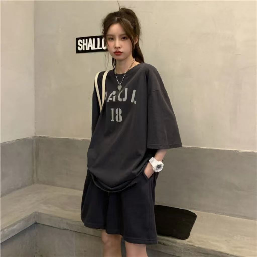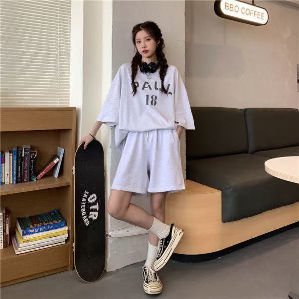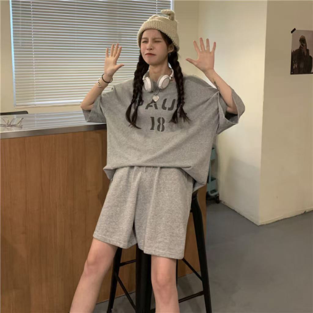Traje de primavera y verano 2025 para mujer, estilo europeo y americano, sencillo, ajustado, holgado, jersey, top y pantalones cortos.