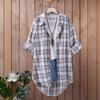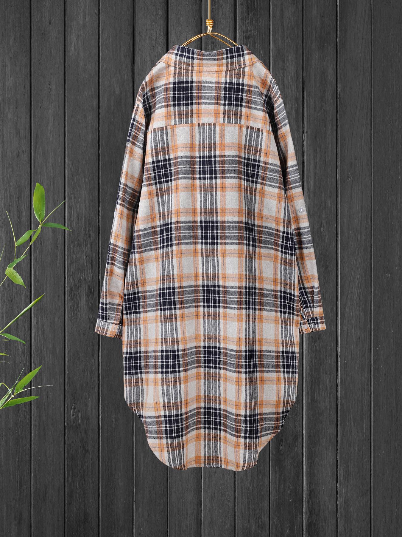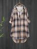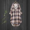 Camisa a cuadros informal retro artística de manga larga para mujer, talla grande europea y americana, primavera 2025