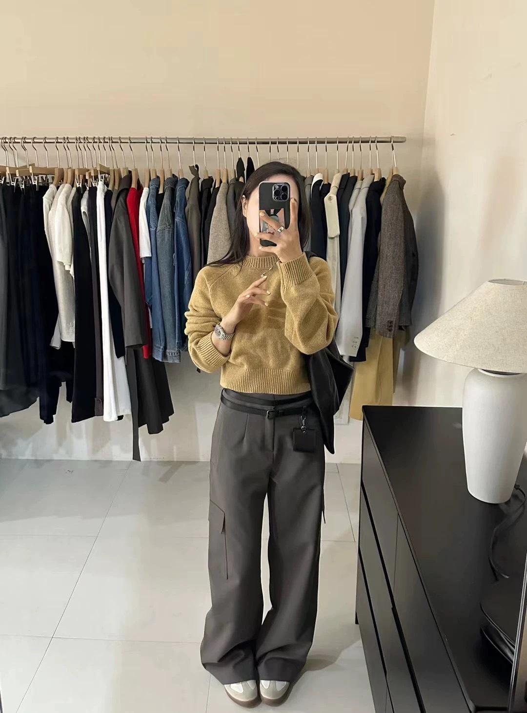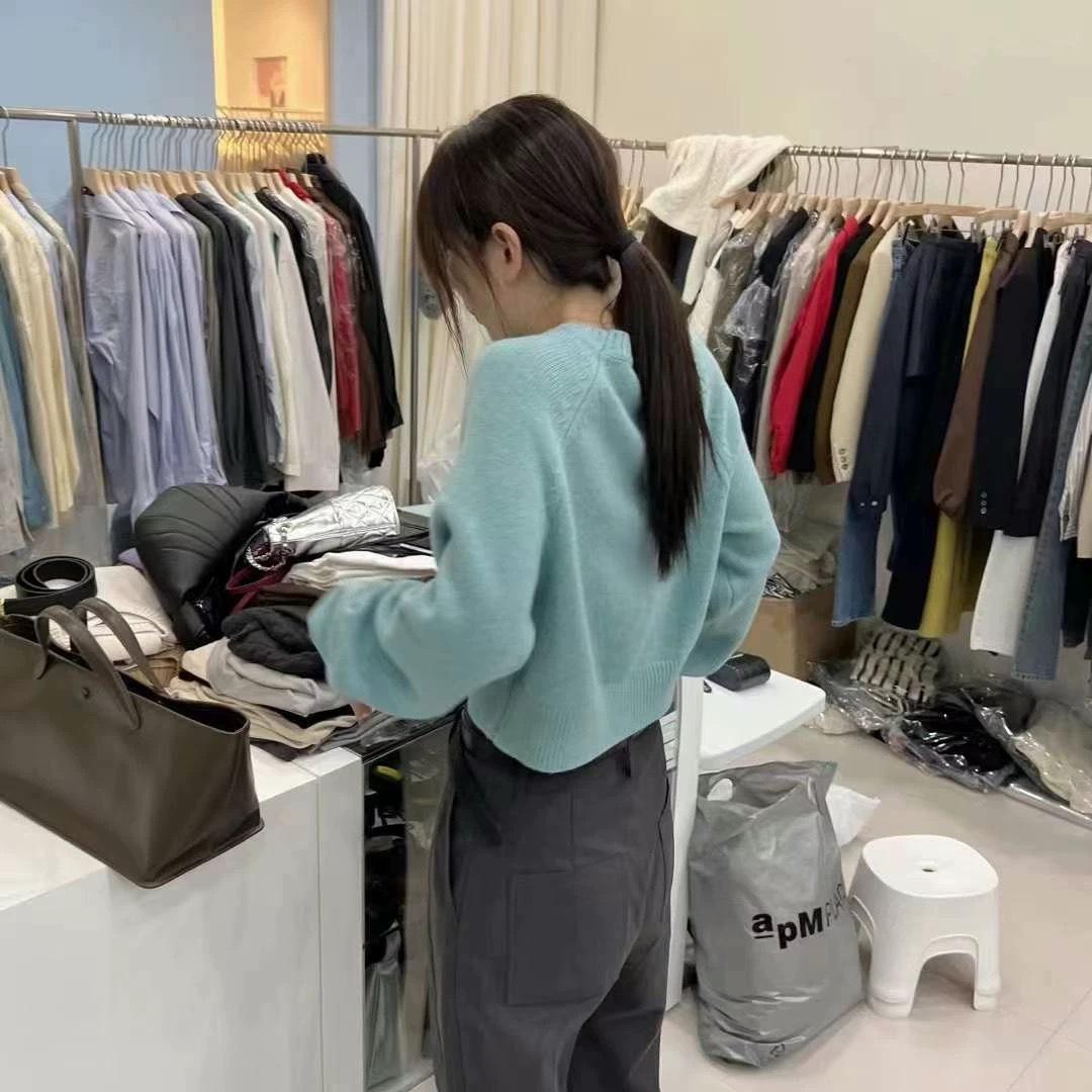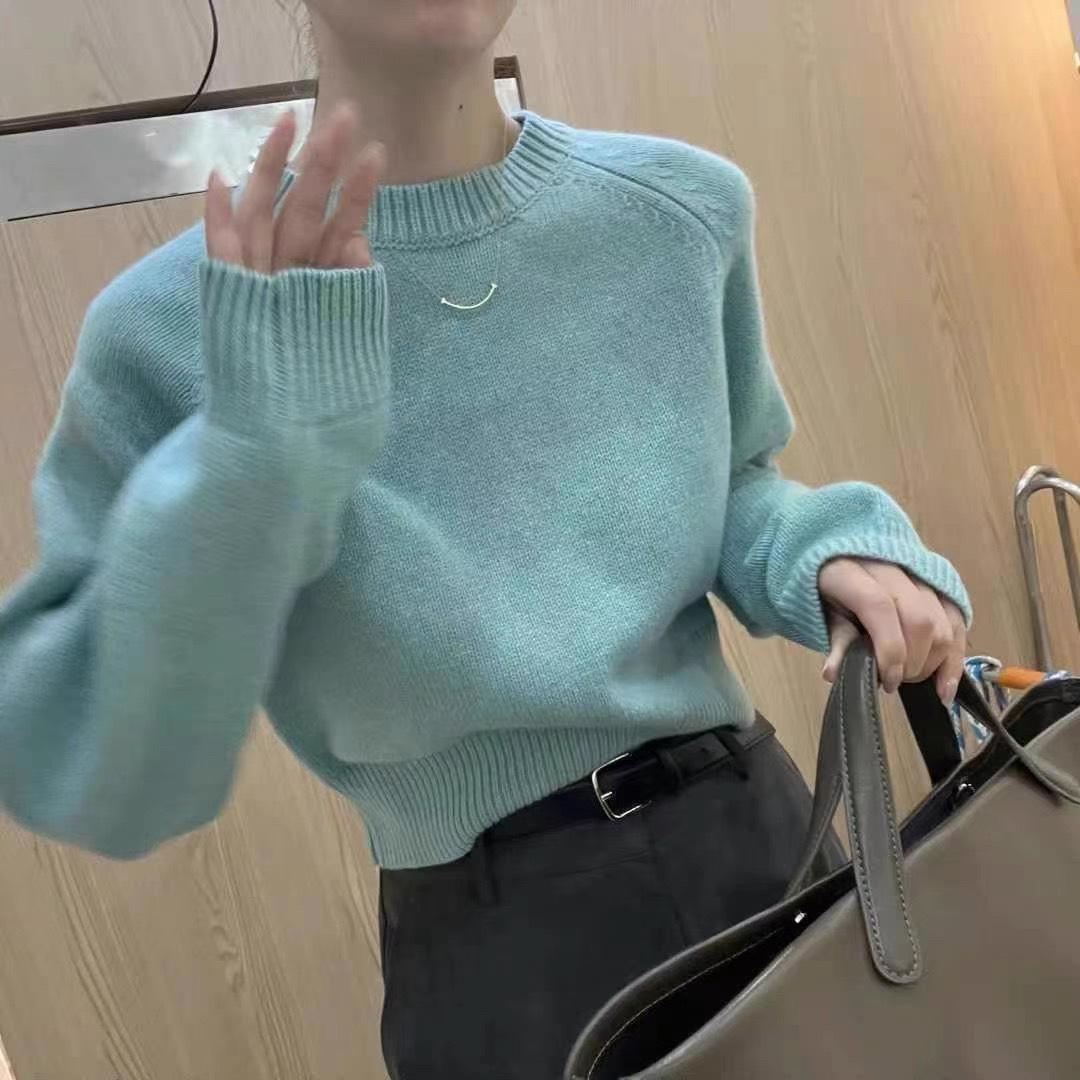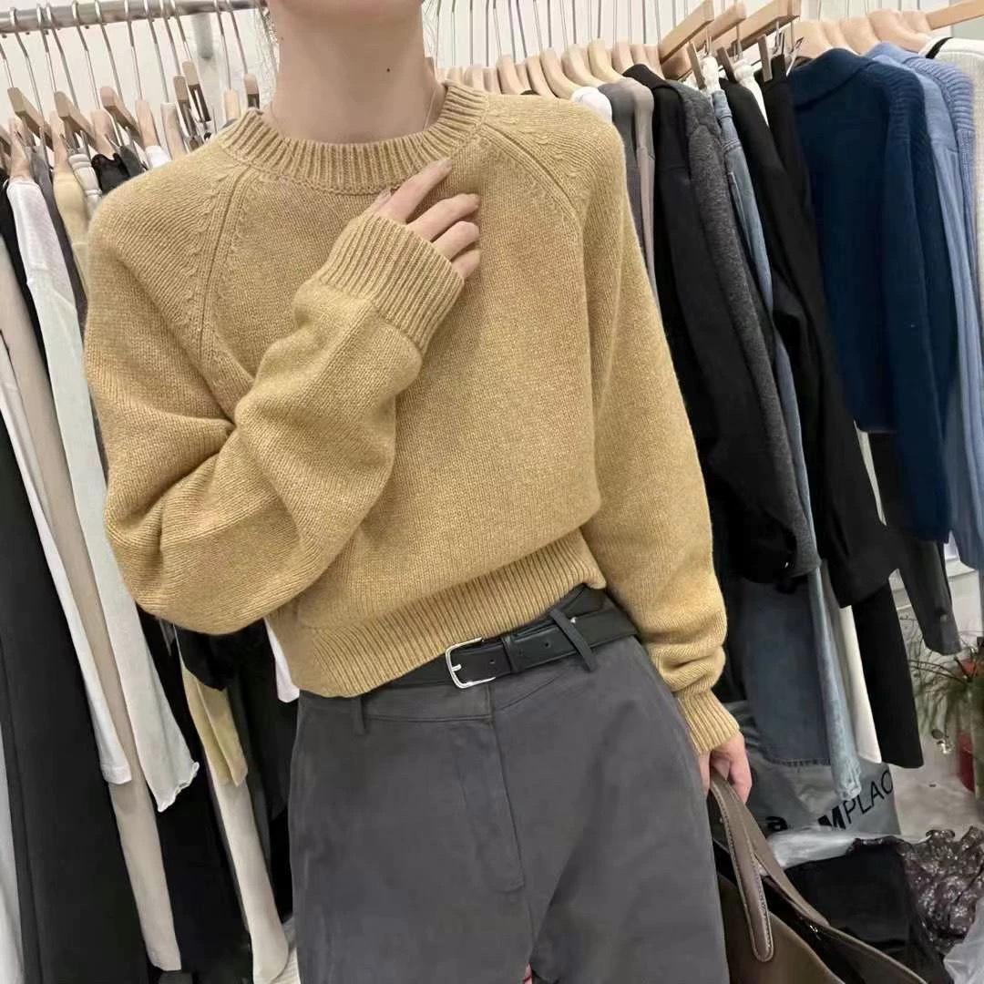 Suéter de Lana Pura para Mujer Nuevo Estilo Base Perezoso Suéter Holgado Grueso Cuello Redondo Corto Cashmere Tejido Top