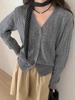 Suéter de cuello en V de lana 100% para mujer, abrigo de otoño e invierno, estilo holgado, vintage, de punto retorcido.