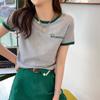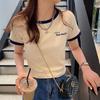 Camiseta corta de verano para mujer, estilo occidental de alta gama, de algodón con hombros descubiertos y manga corta, tendencia 2025