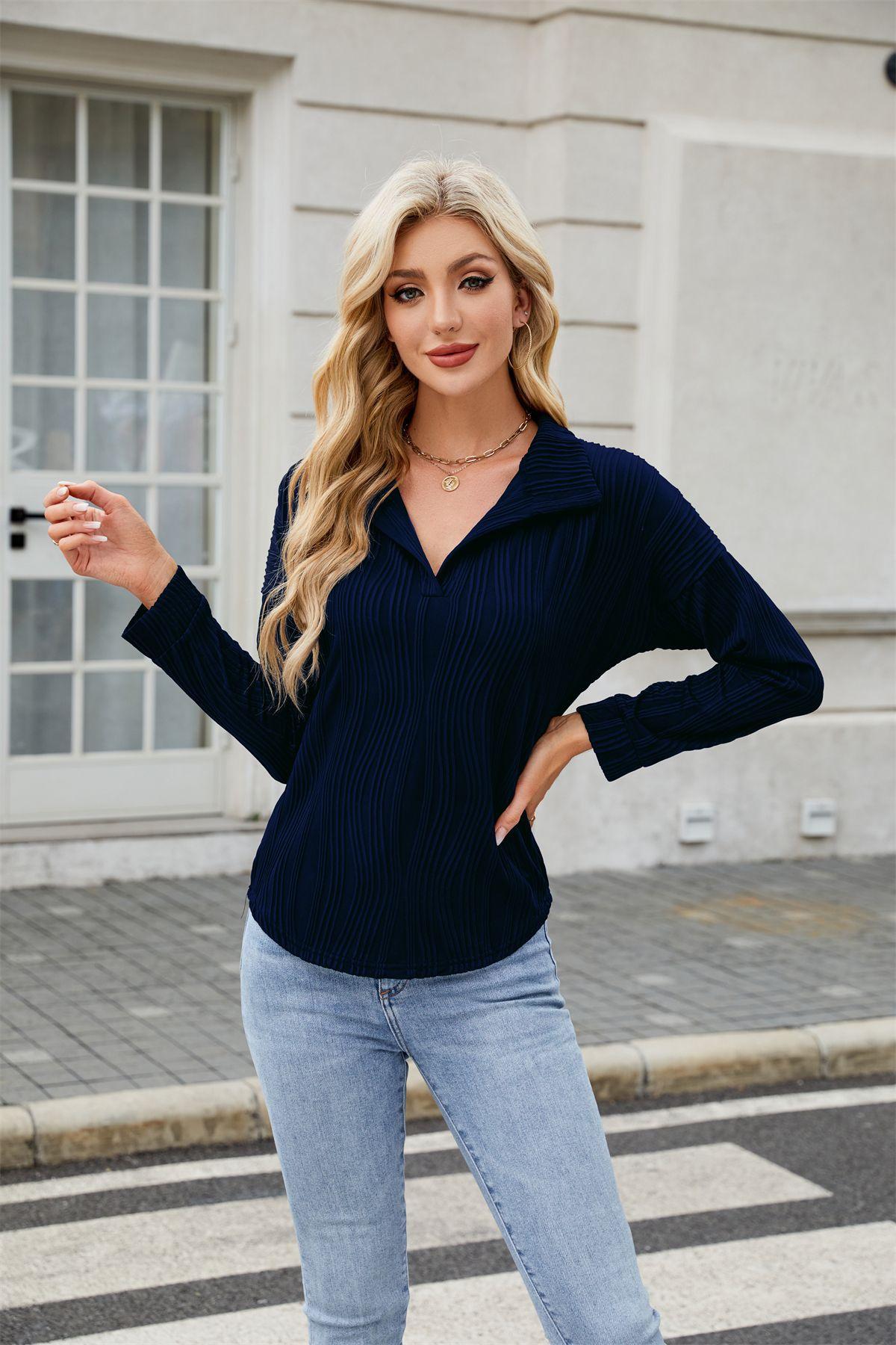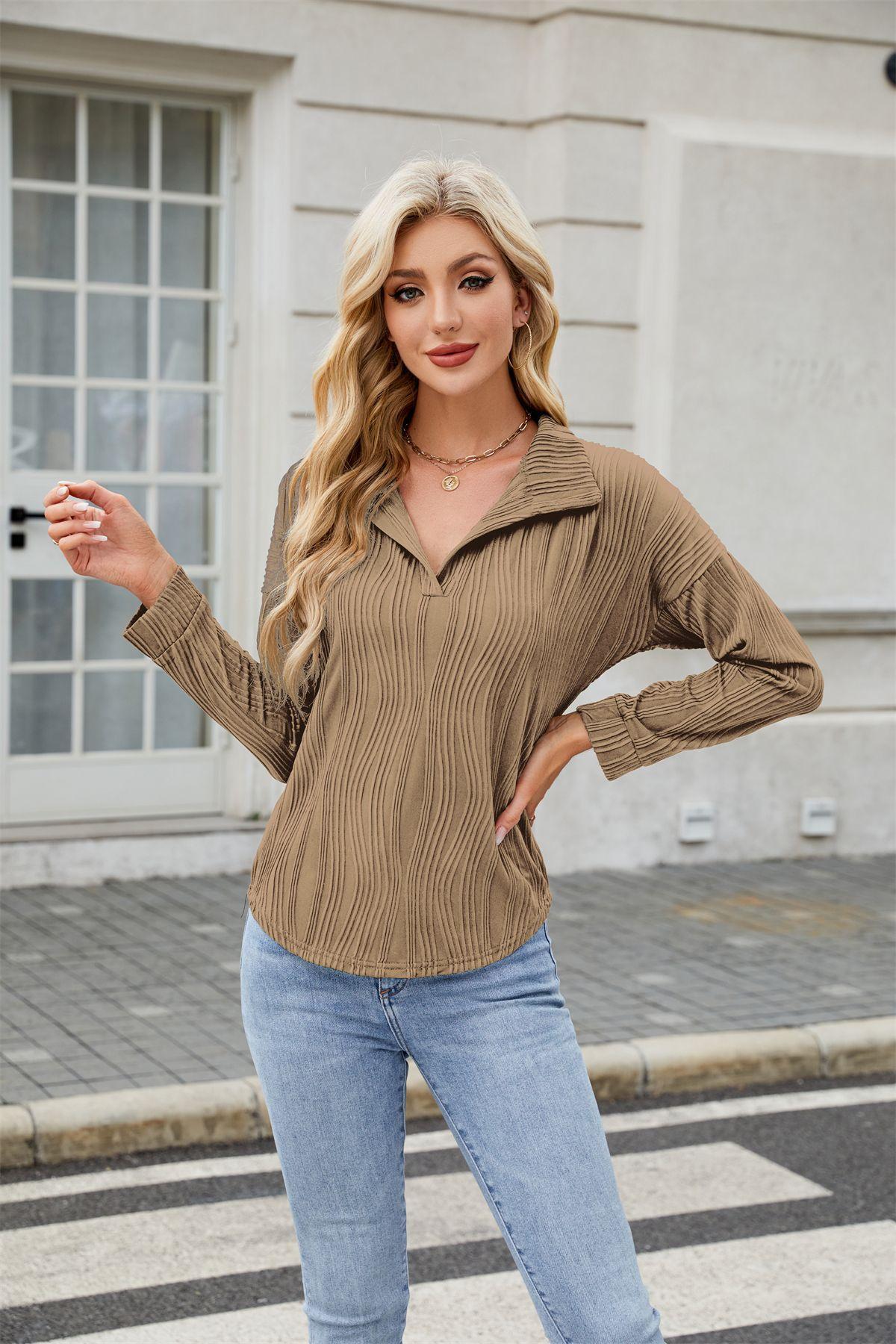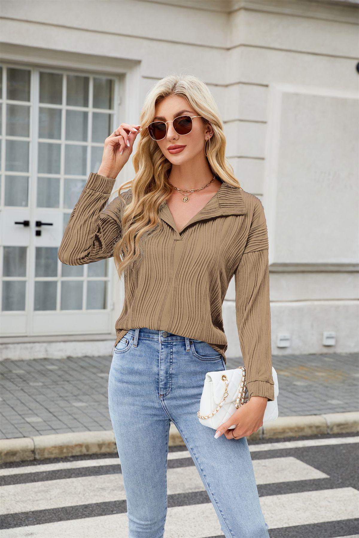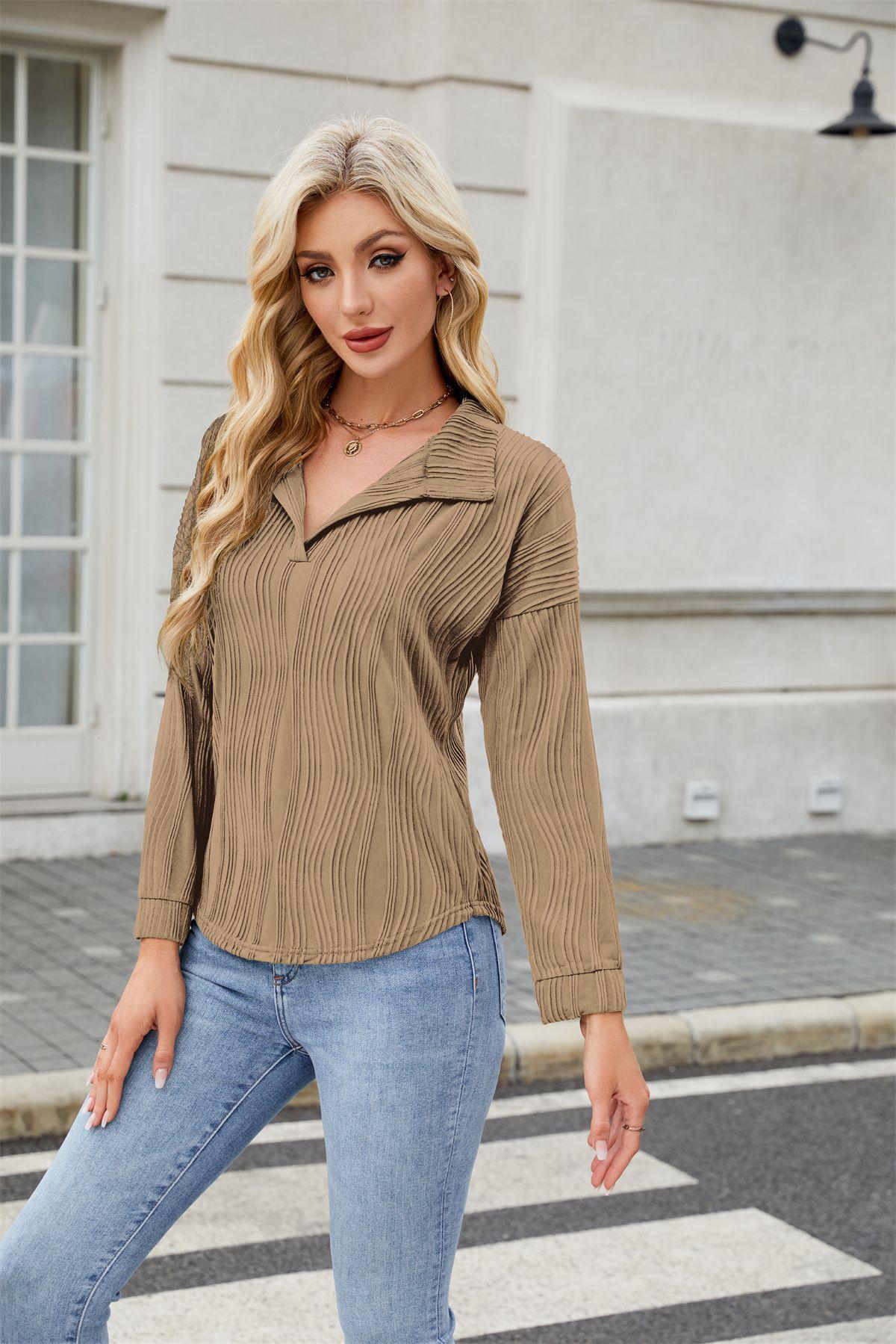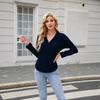 Amazon comercio exterior transfronterizo europeo y americano 2025 primavera y verano nuevo top de solapa de moda independiente para mujer de manga larga ajustado para mujer