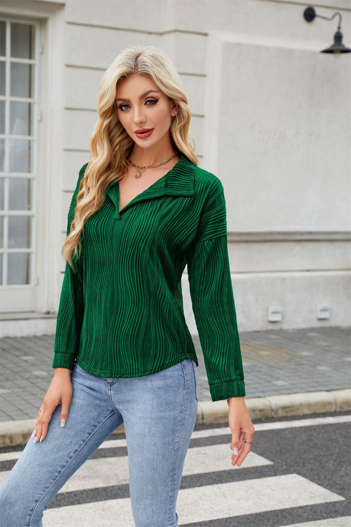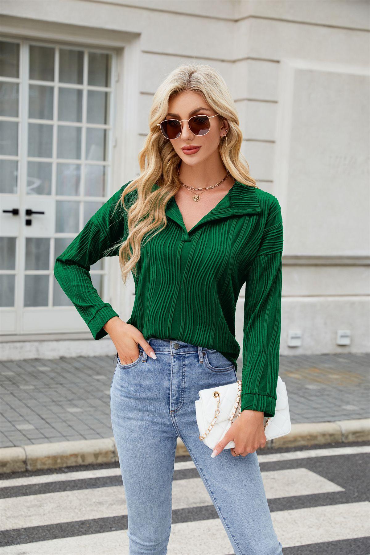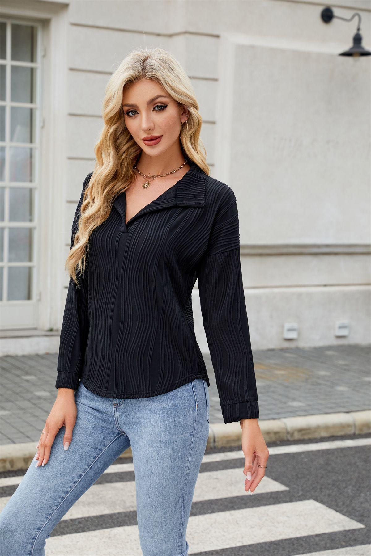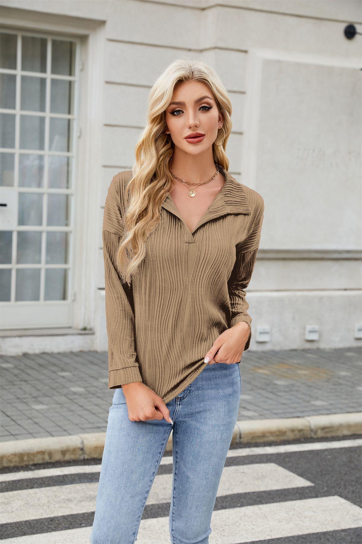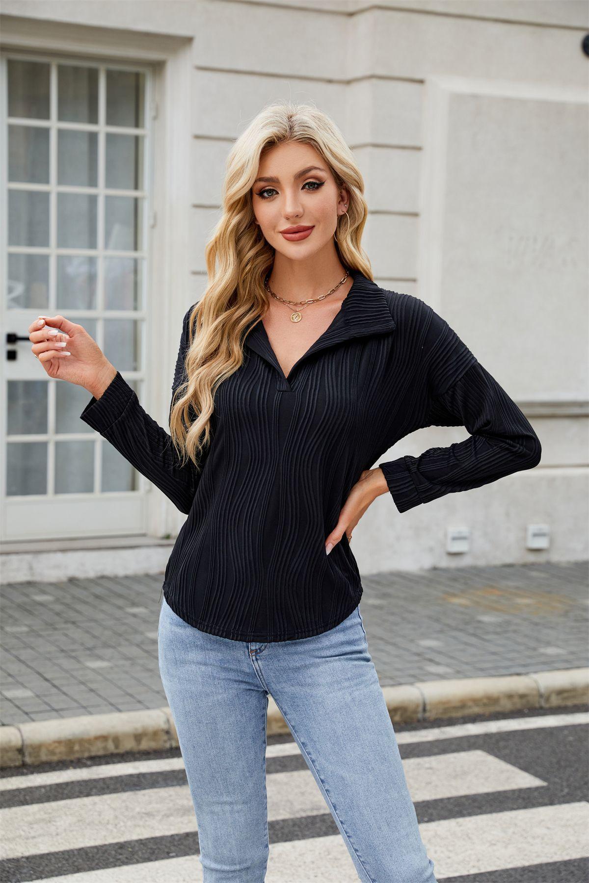 Amazon comercio exterior transfronterizo europeo y americano 2025 primavera y verano nuevo top de solapa de moda independiente para mujer de manga larga ajustado para mujer