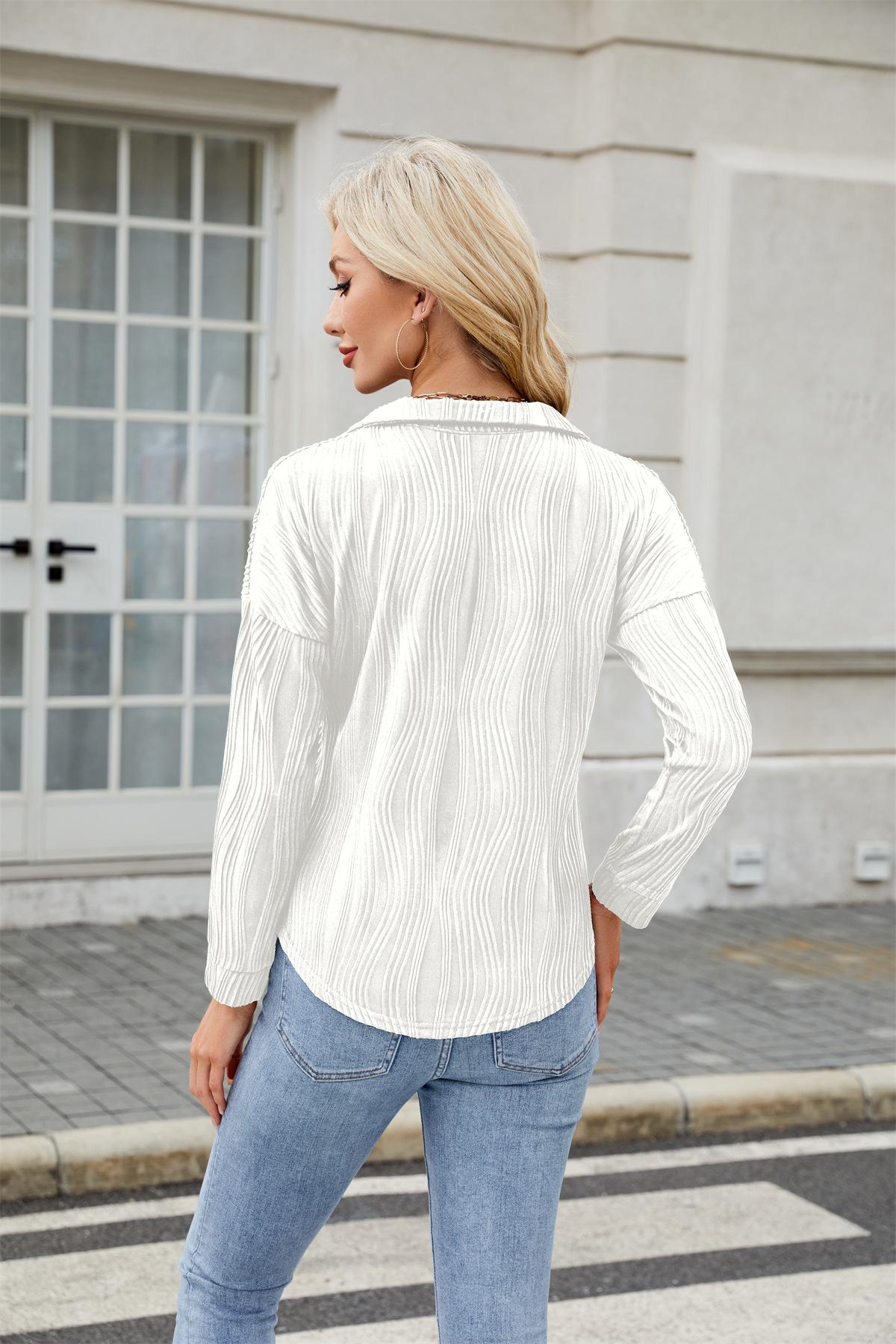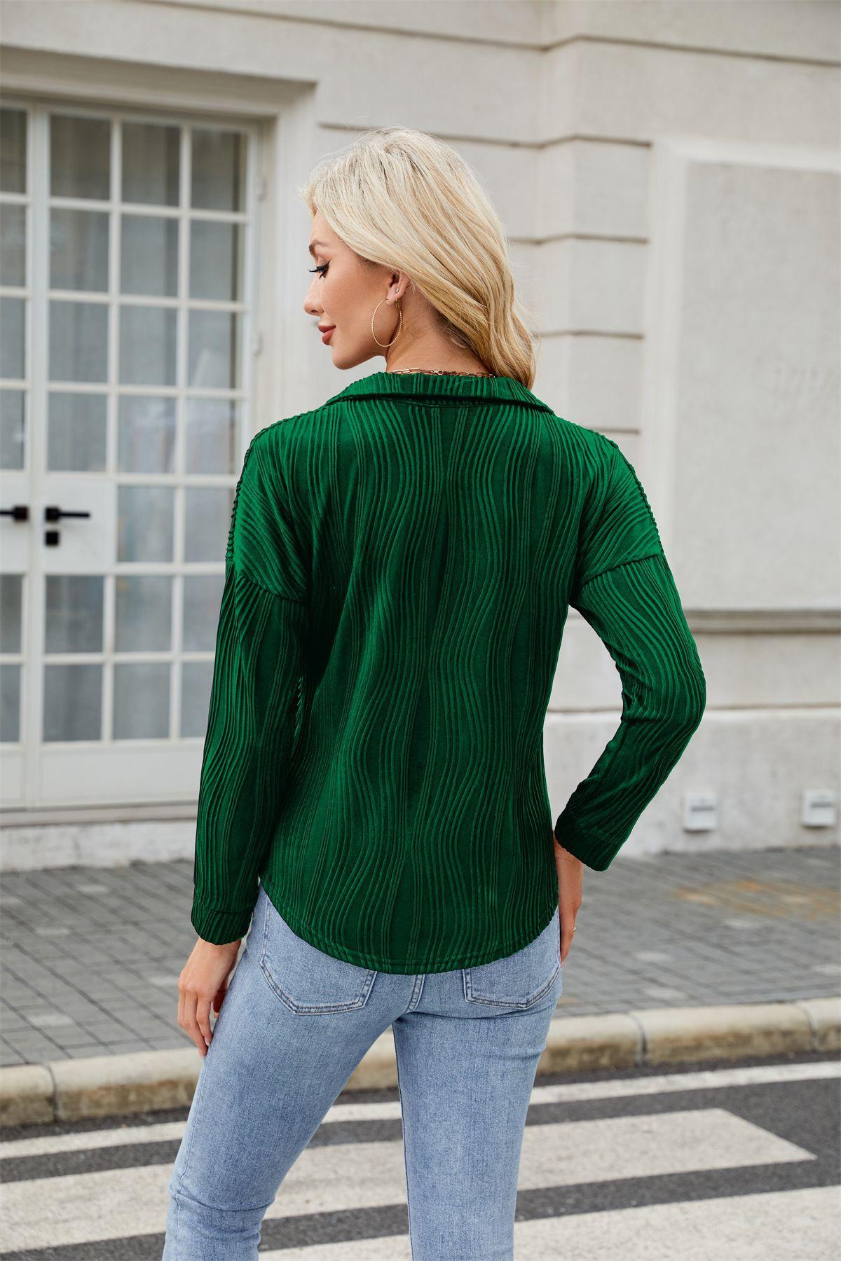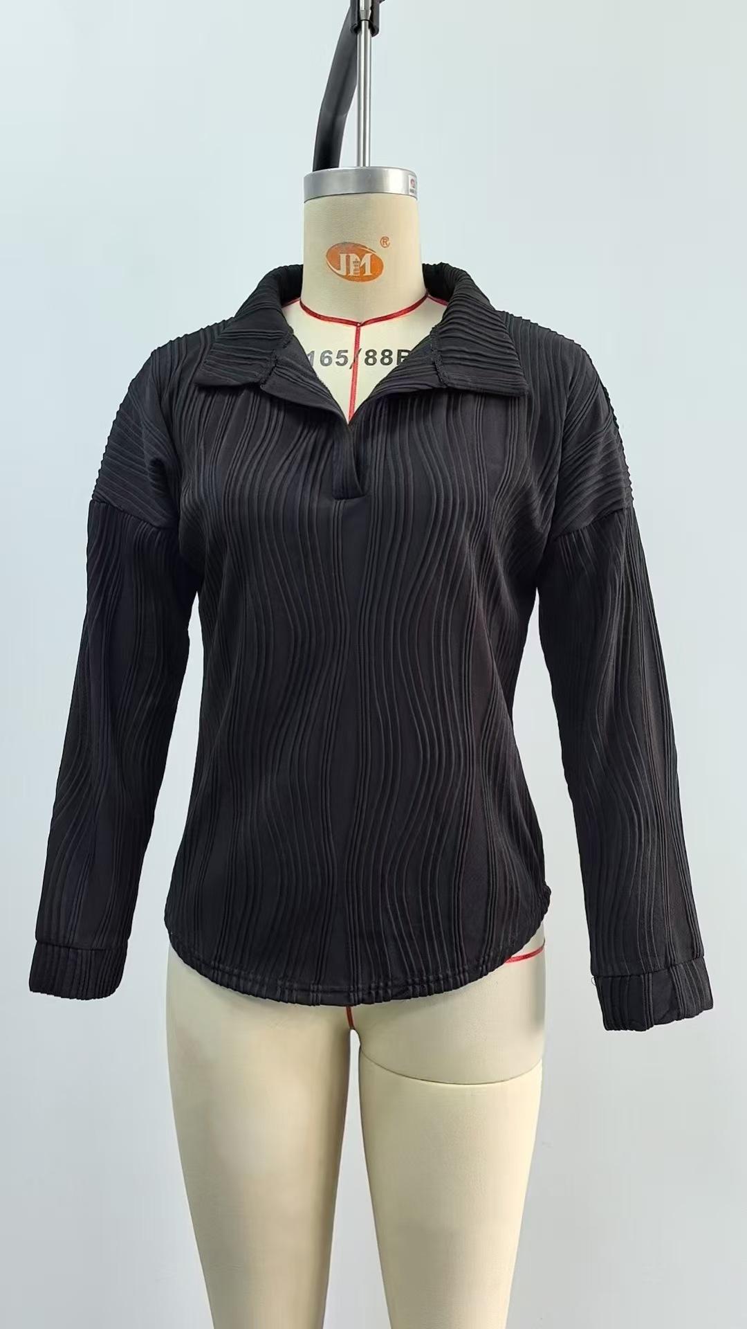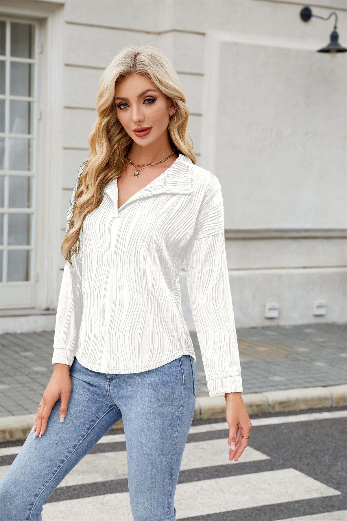 Amazon comercio exterior transfronterizo europeo y americano 2025 primavera y verano nuevo top de solapa de moda independiente para mujer de manga larga ajustado para mujer
