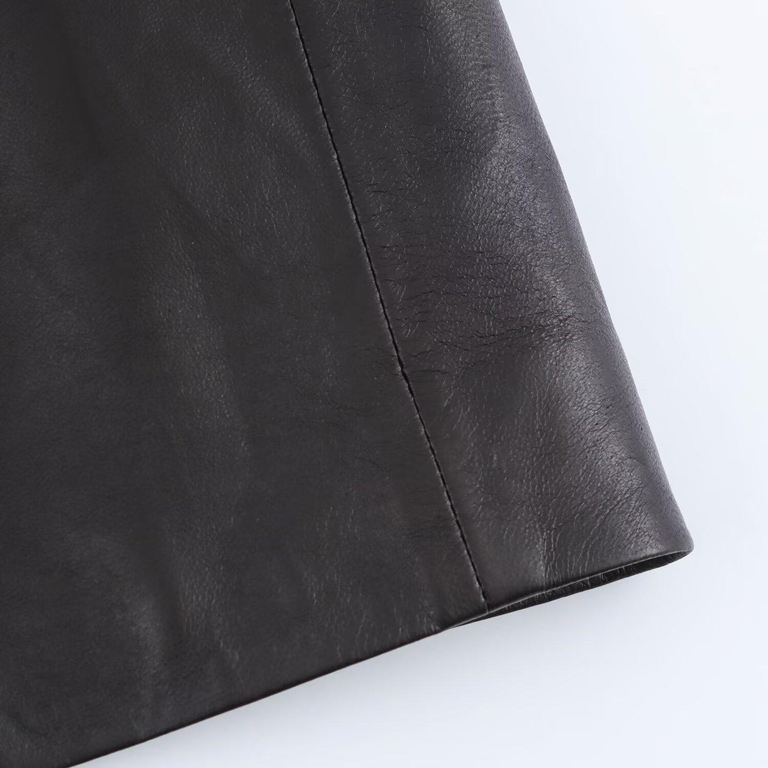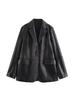 Ropa de mujer europea y americana transfronteriza 2025 primavera nueva color sólido PU botonadura sencilla bolsillo imitación cuero chaqueta de traje 3322040