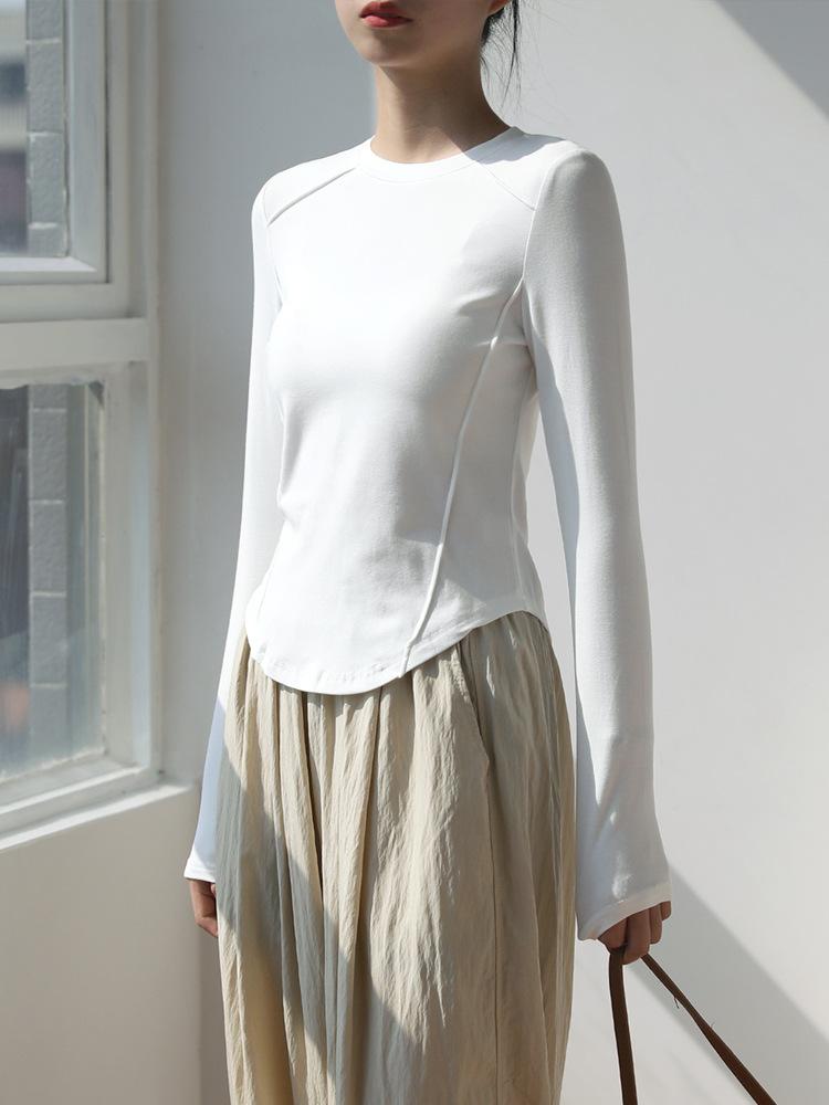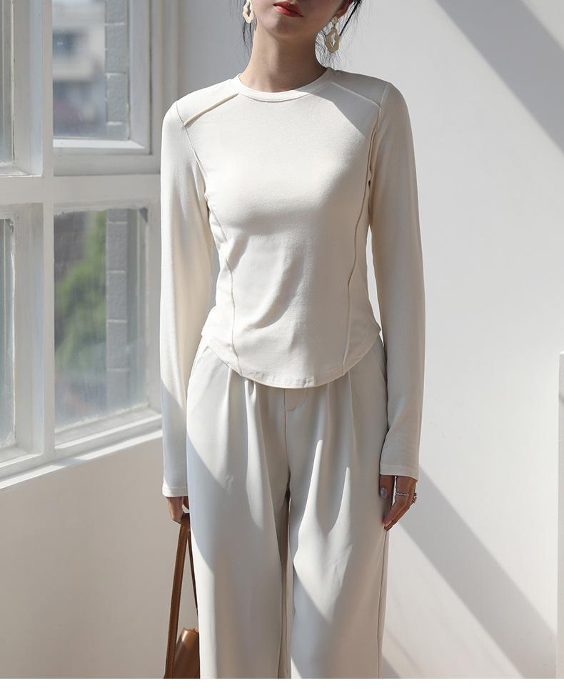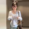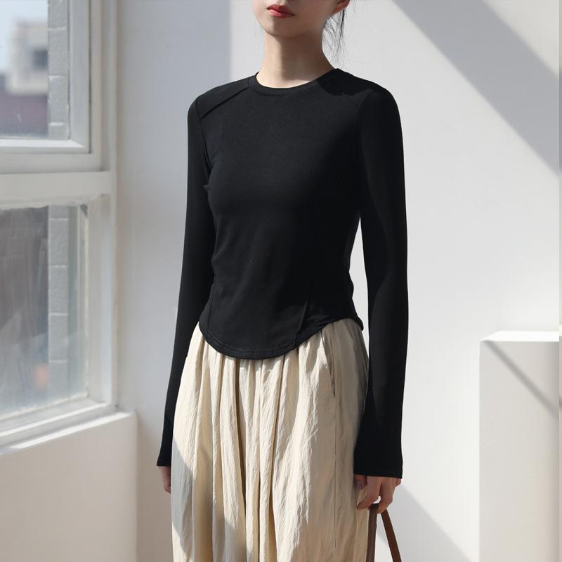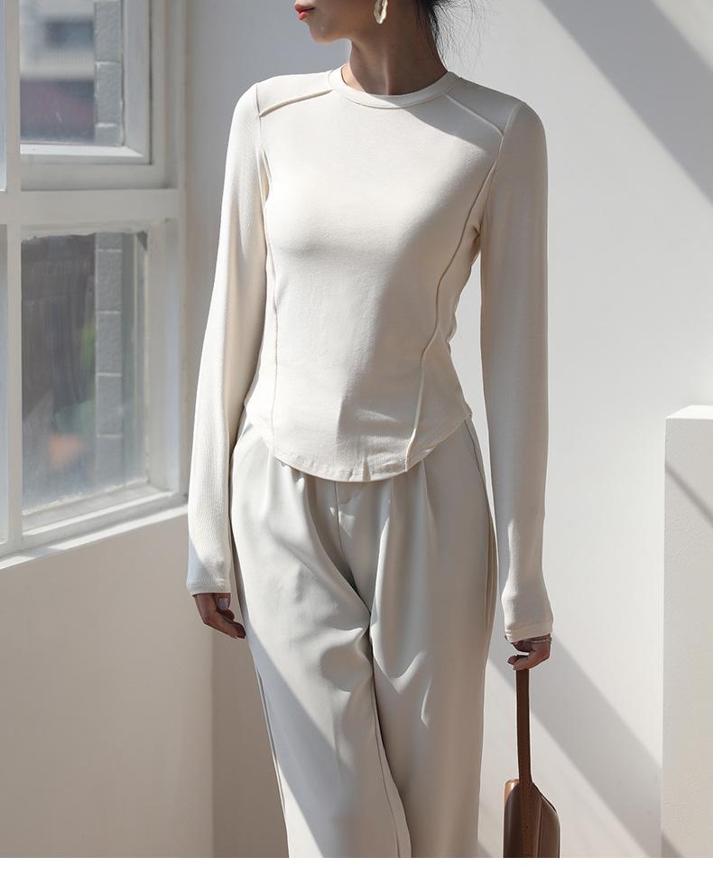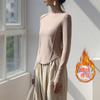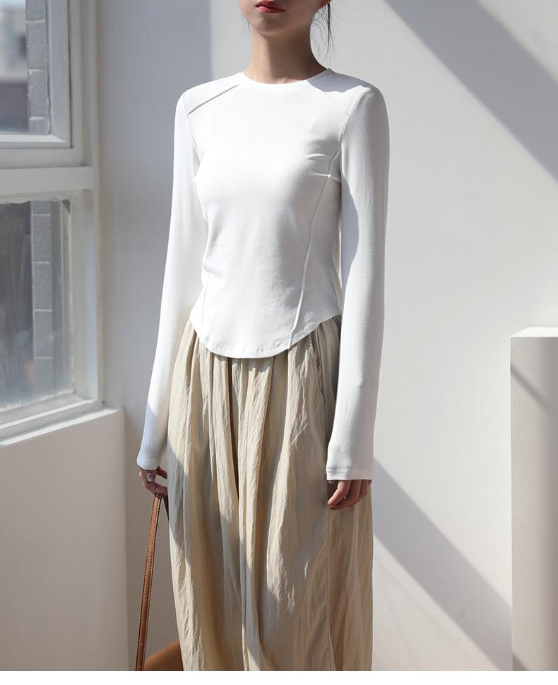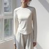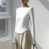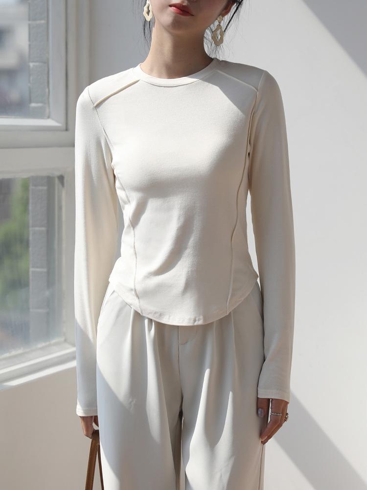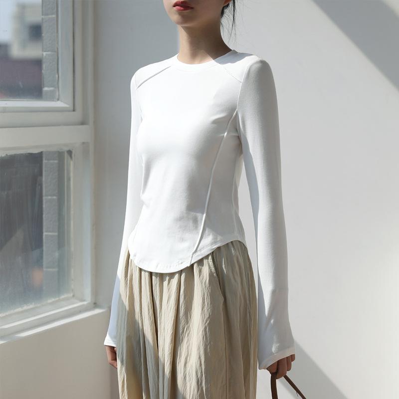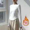 Camiseta básica de manga larga blanca para mujer, diseño de top de terciopelo con hombros descubiertos y diseño de espiga interior, para primavera, otoño e invierno.