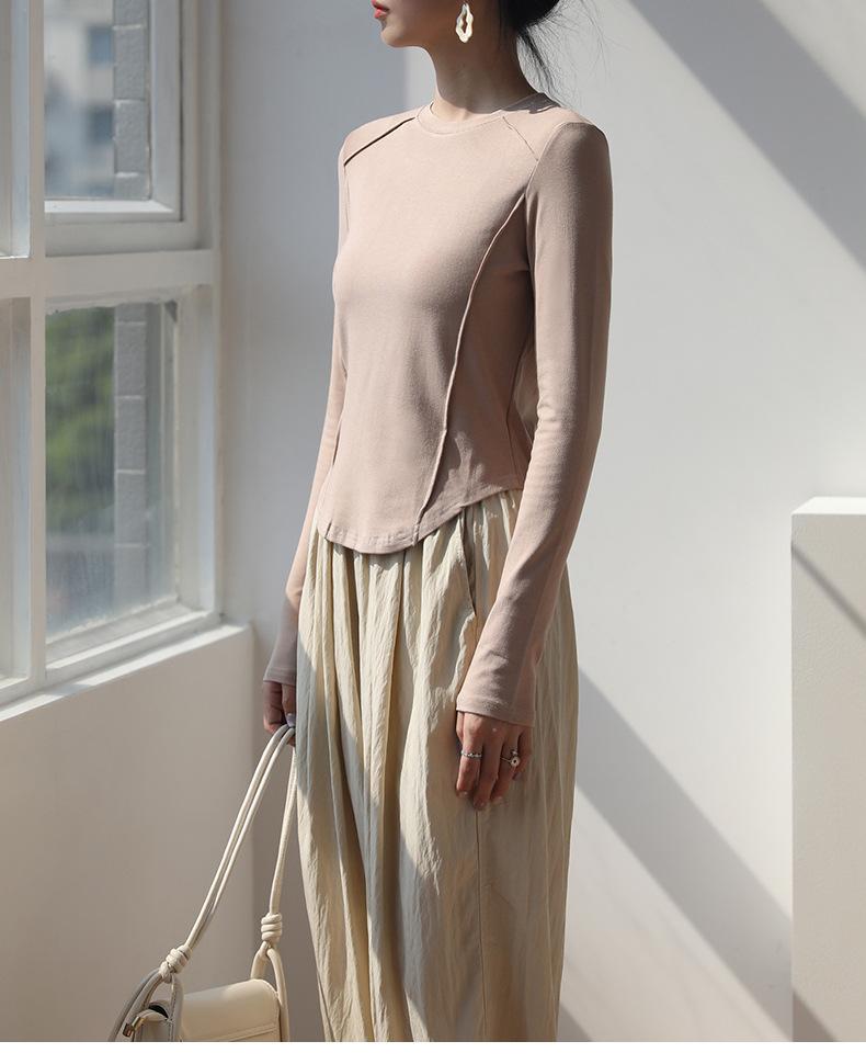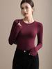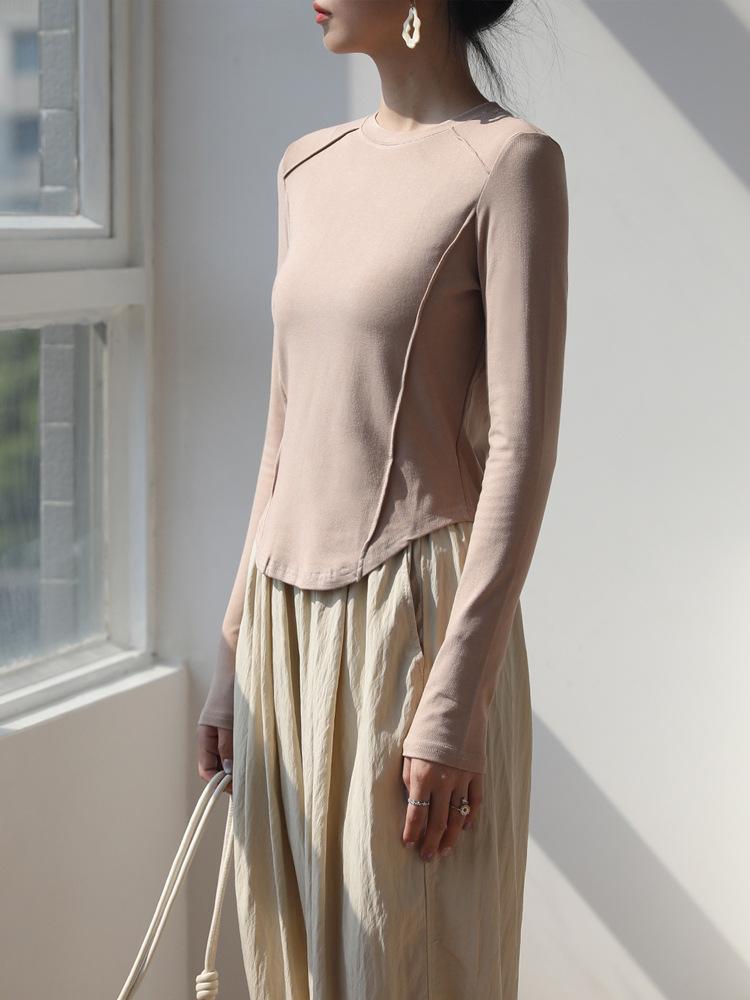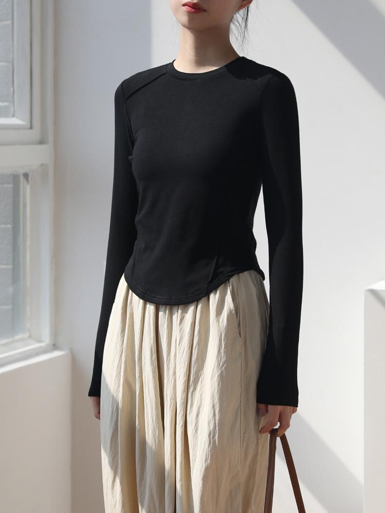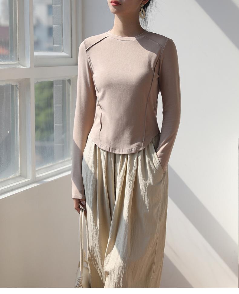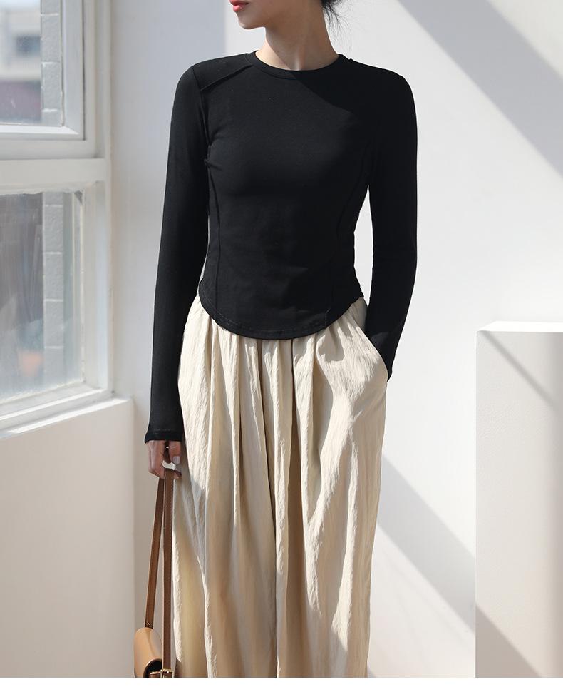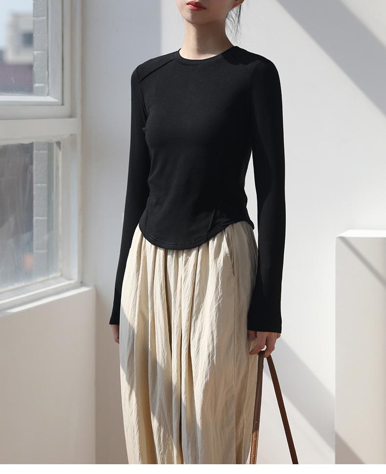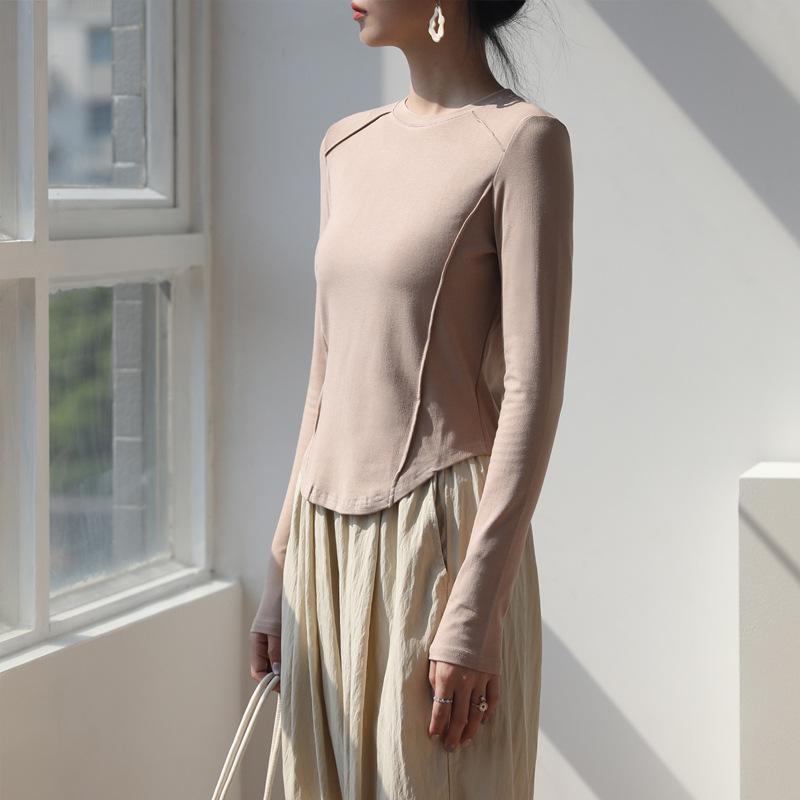 Camiseta básica de manga larga blanca para mujer, diseño de top de terciopelo con hombros descubiertos y diseño de espiga interior, para primavera, otoño e invierno.