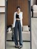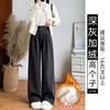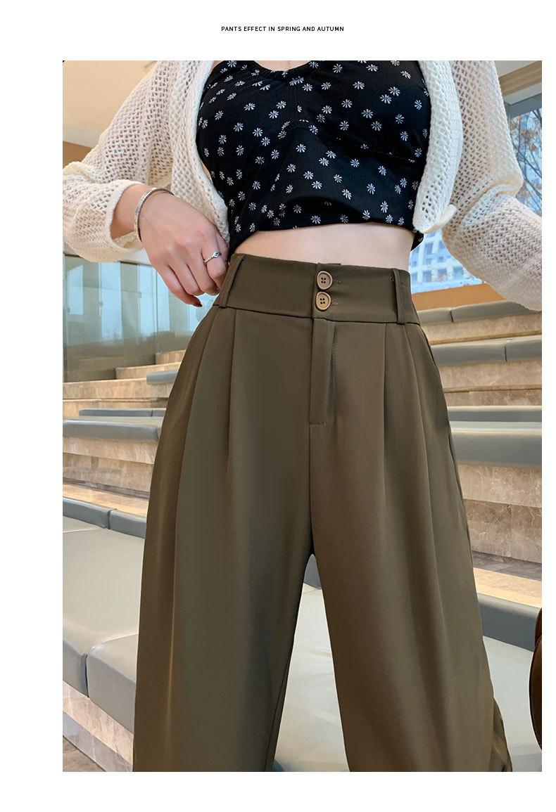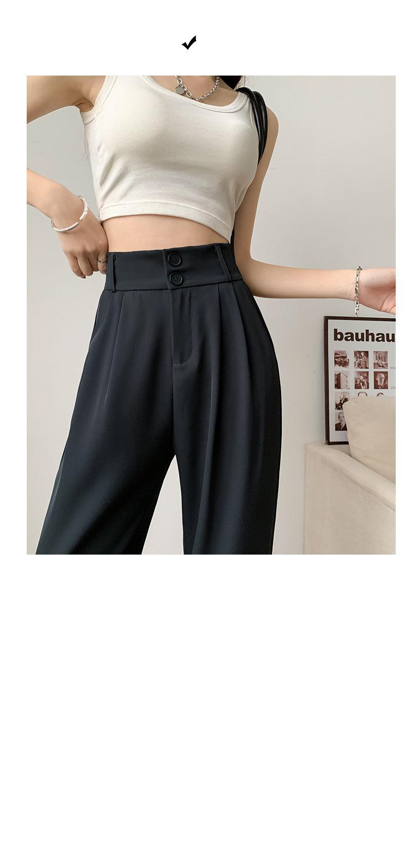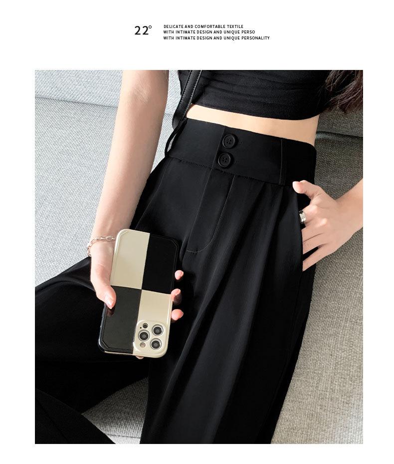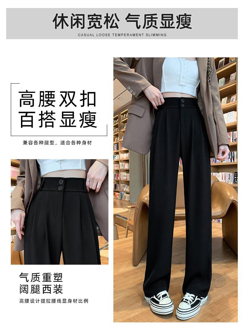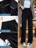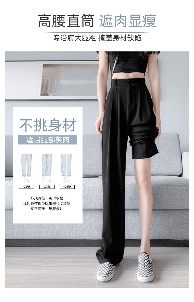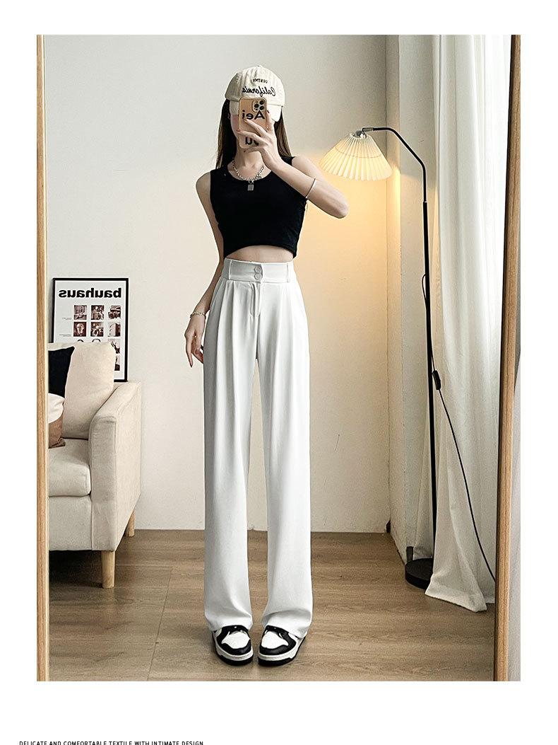 Pantalones de Traje Negros para Mujer 2025 Nuevo Primavera y Otoño Pantalones Rectos Drapeados de Alta Gama para Personas Pequeñas con Cuerpo en Forma de Pera Pantalones de Pierna Ancha