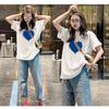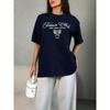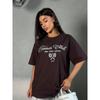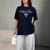 Moda Estilo Americano Chic Nicho Estampado Verano Nuevo Camiseta de Manga Corta 100% Algodón Estilo Hong Kong Combinable Top Casual
