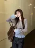 Camiseta de manga larga con empalme de cuadros de dos piezas falsas para mujer 2025 Otoño Nuevo diseño Aspecto adelgazante Camiseta básica de nicho