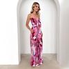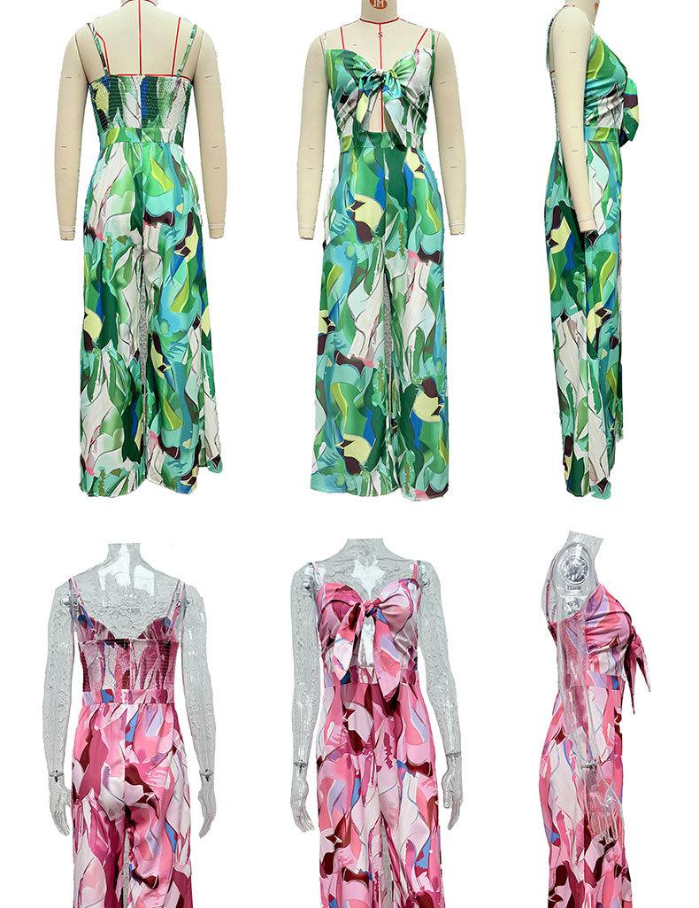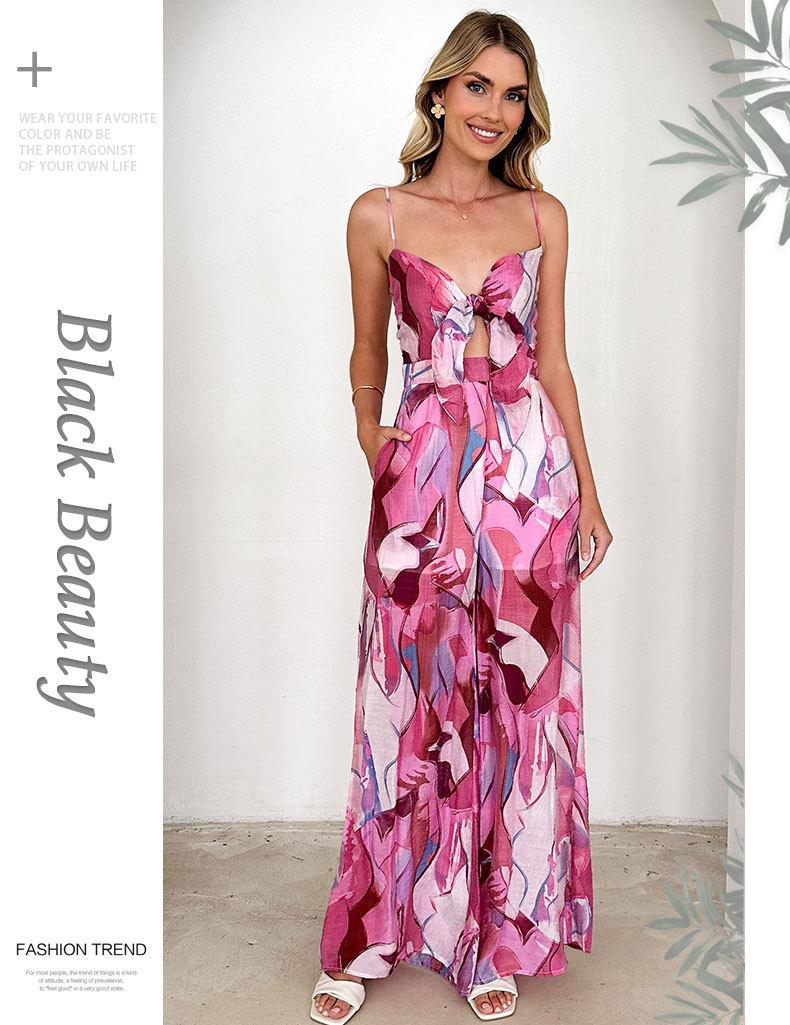 En stock Amazon Independent Station Venta caliente Nuevo mono casual estampado con tiras y lazo para mujer