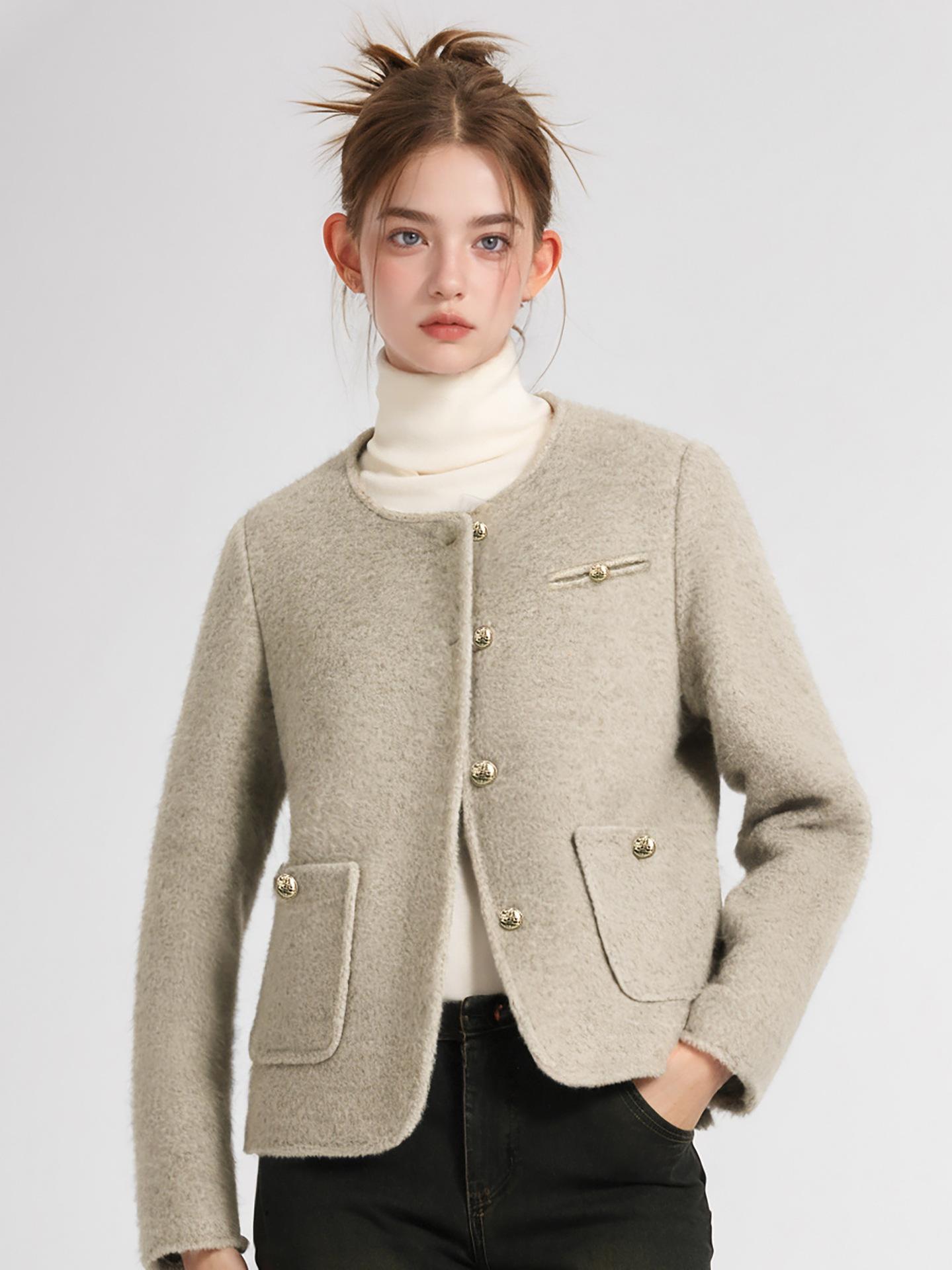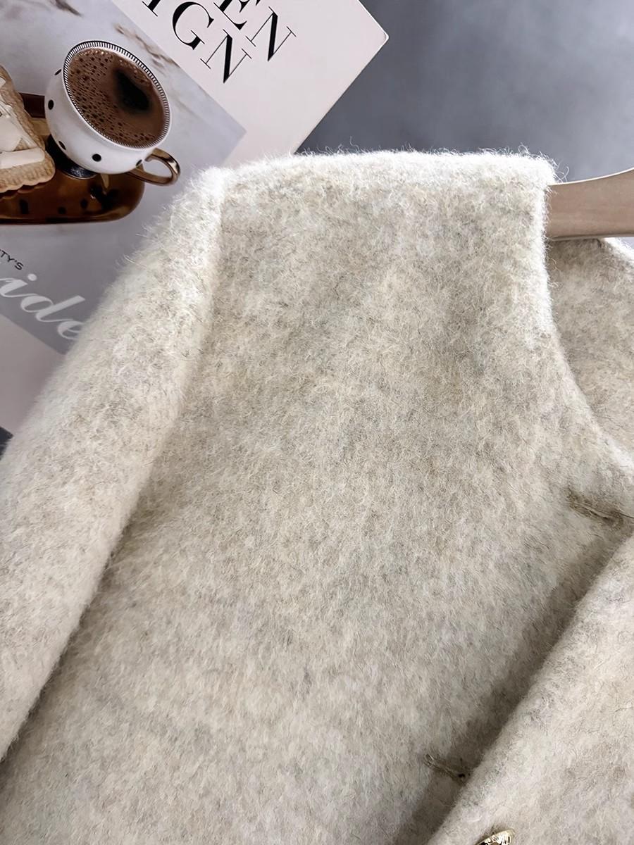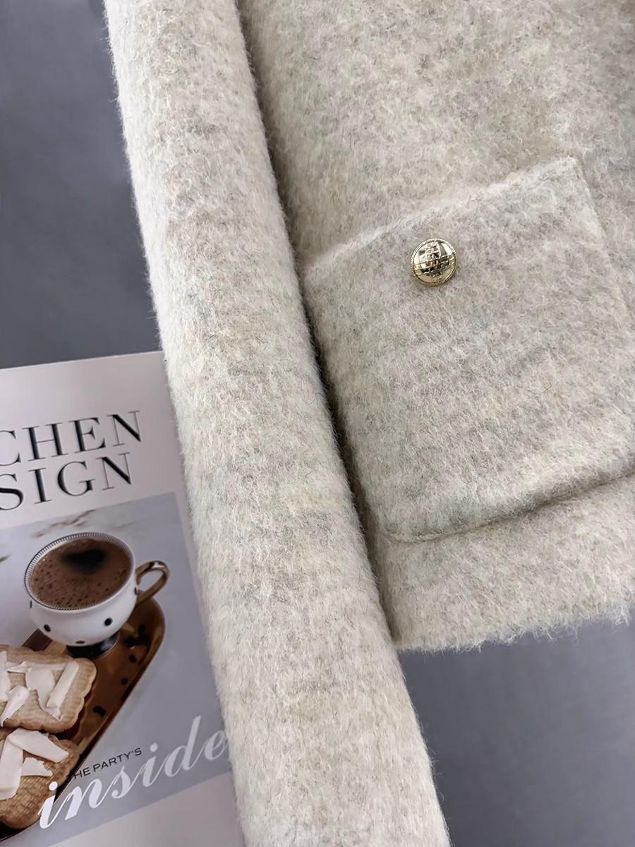 Chaqueta Corta Beige Forrada de Plumón Estilo Chanel para Mujer, Nueva para Invierno 2025, Top Súper Elegante, Cálido y Elegante