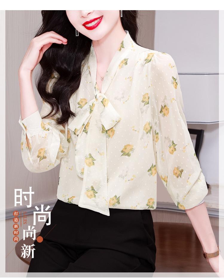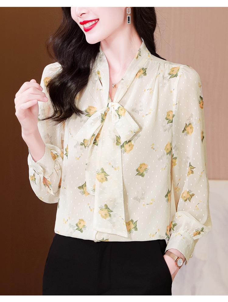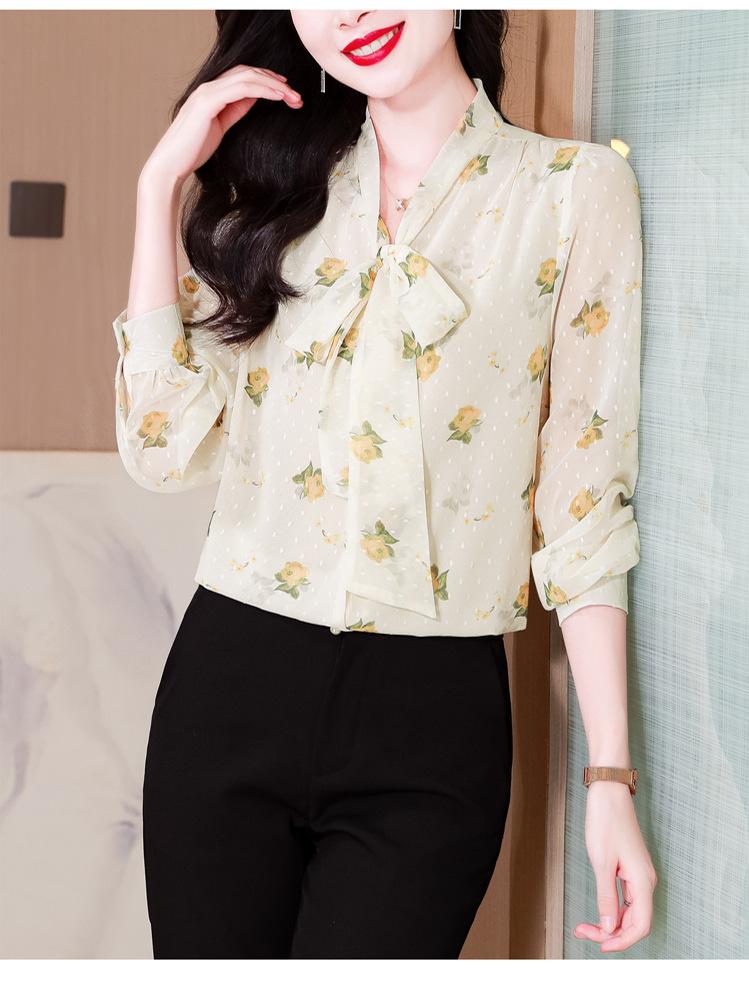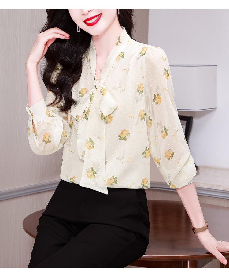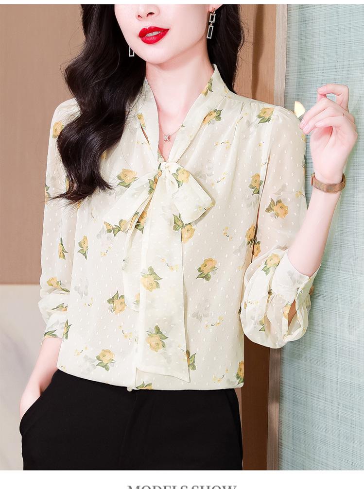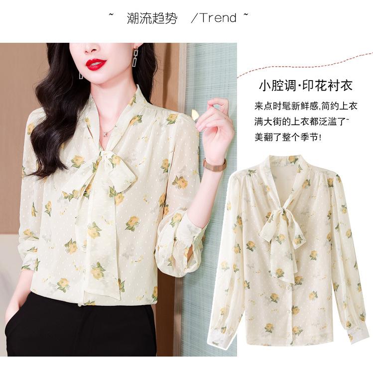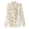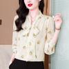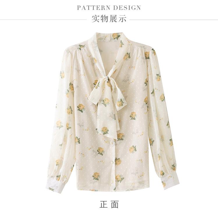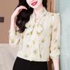 Ropa de Trabajo Intelectual Moderna y Elegante Estampado de Flores Encaje con Cordones Lazo Camisa de Chifón de Manga Larga Primavera 2025 Top Elegante