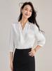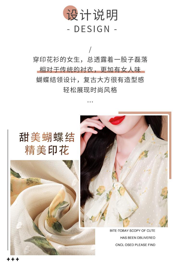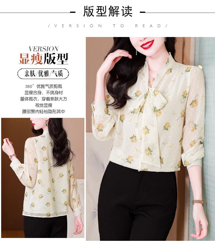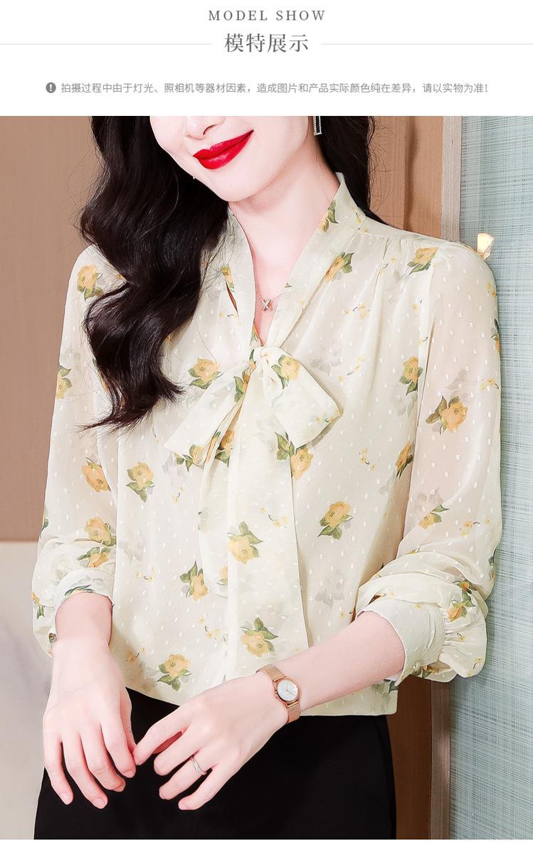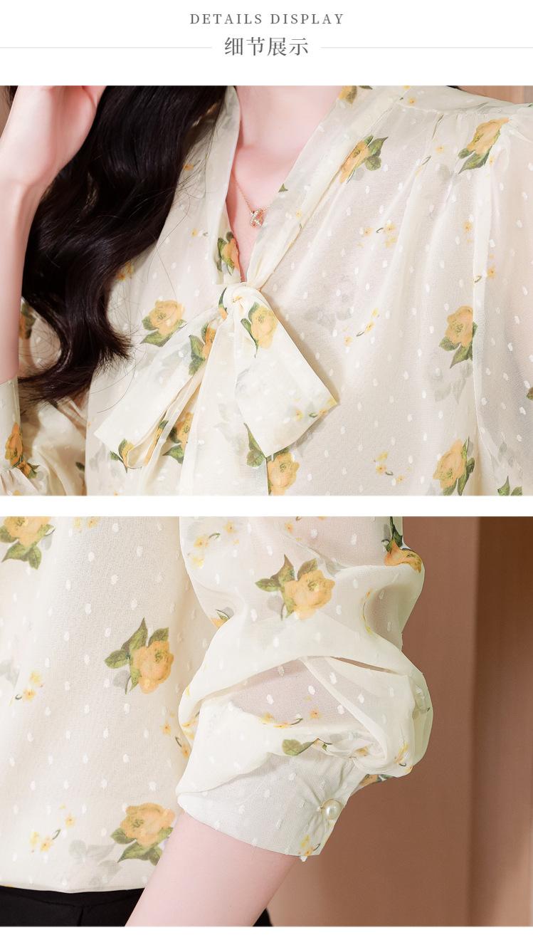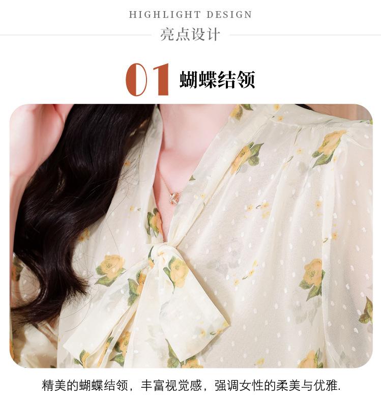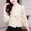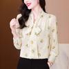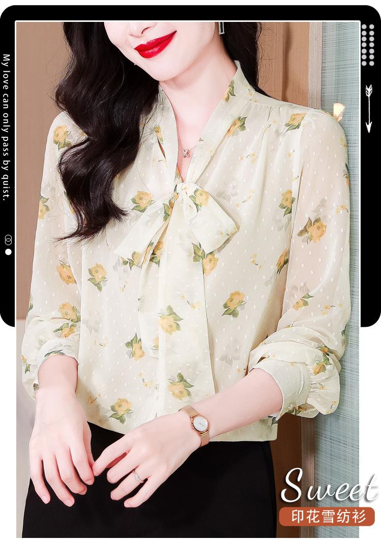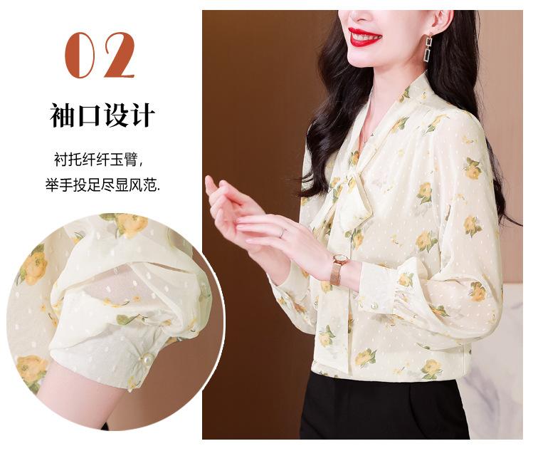 Ropa de Trabajo Intelectual Moderna y Elegante Estampado de Flores Encaje con Cordones Lazo Camisa de Chifón de Manga Larga Primavera 2025 Top Elegante