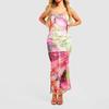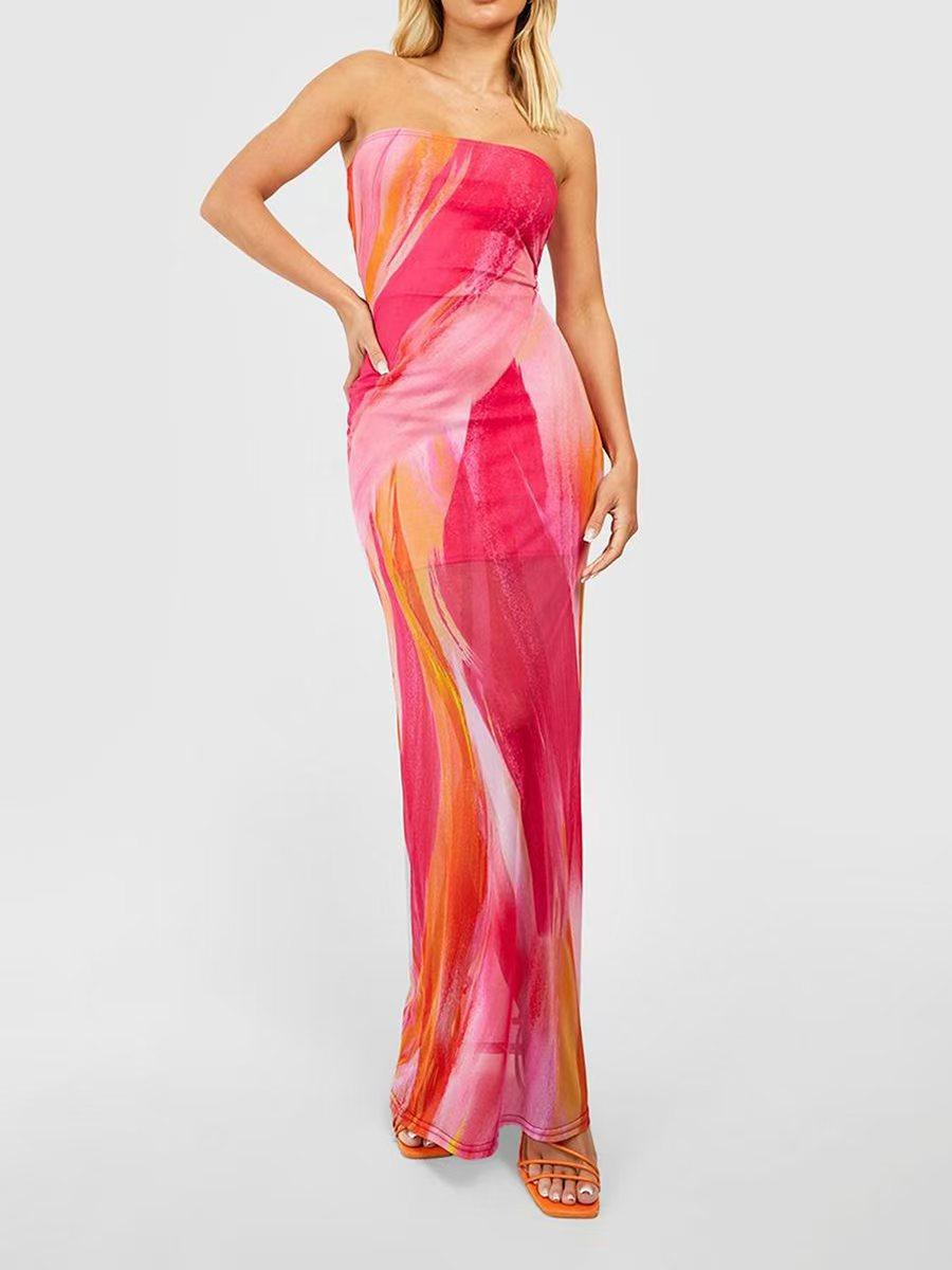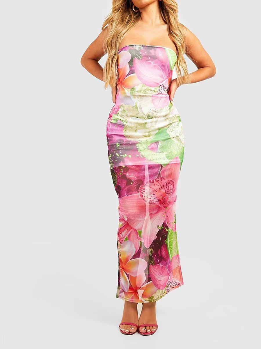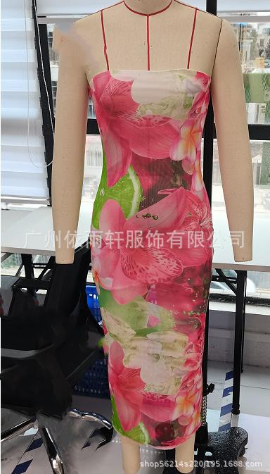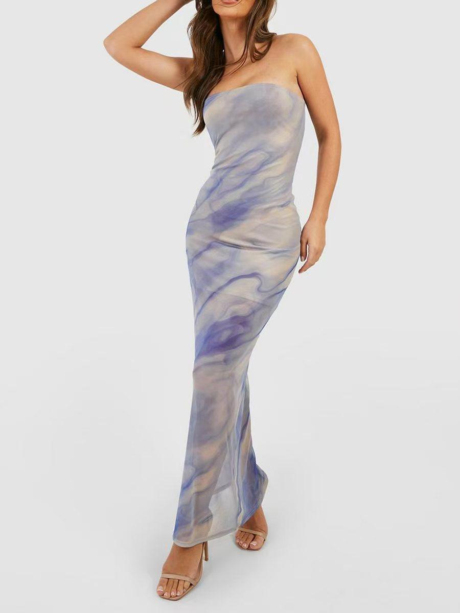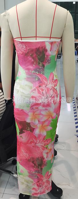 Fábrica de ropa de mujer transfronteriza, venta al por mayor, Europa y Estados Unidos, estilo sexy, ajustado, con estampado de tubo, pecho, espalda descubierta, cadera, vestido largo.