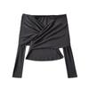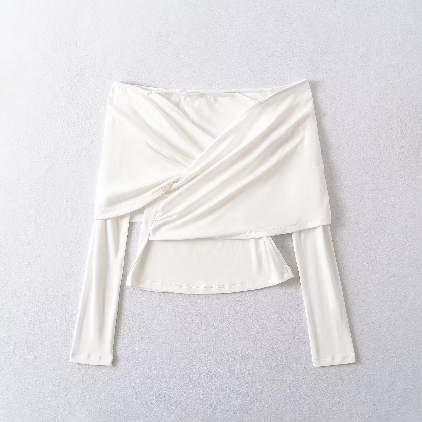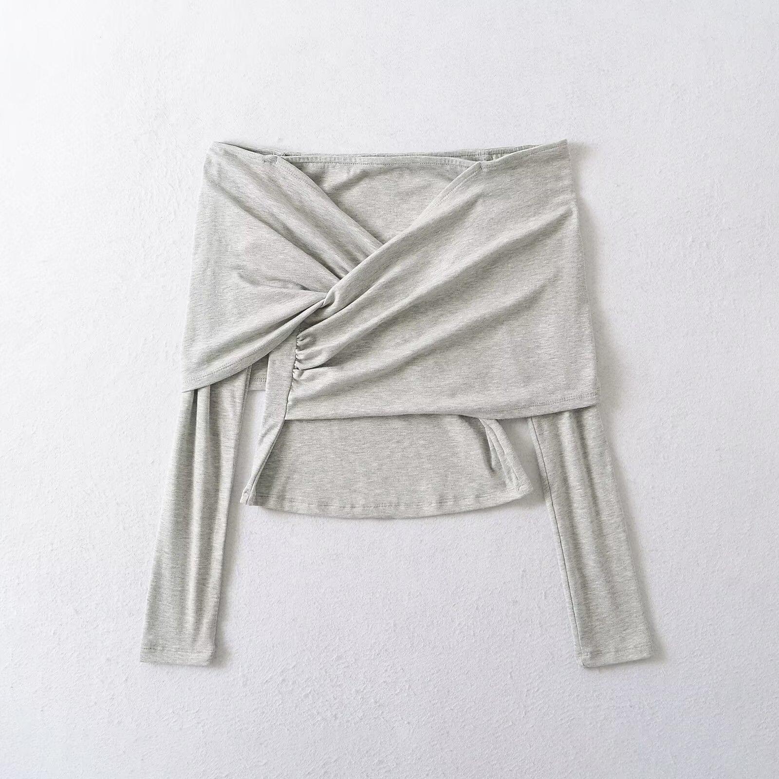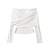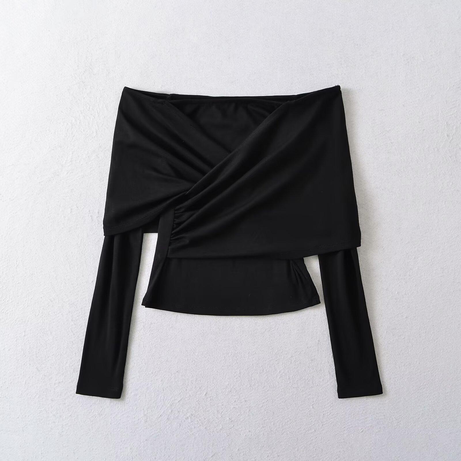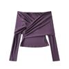 24382-Camiseta de Hombro Plisada de Manga Larga para Spice Girls Europeas y Americanas 2024 Nuevo Diseño con Sentido Slim Fit Top para Mujer