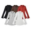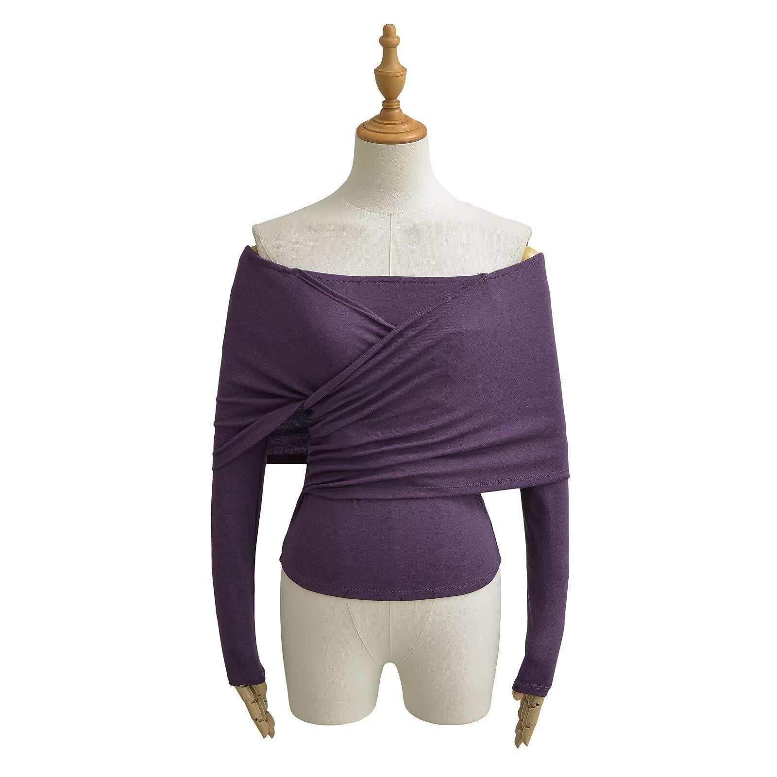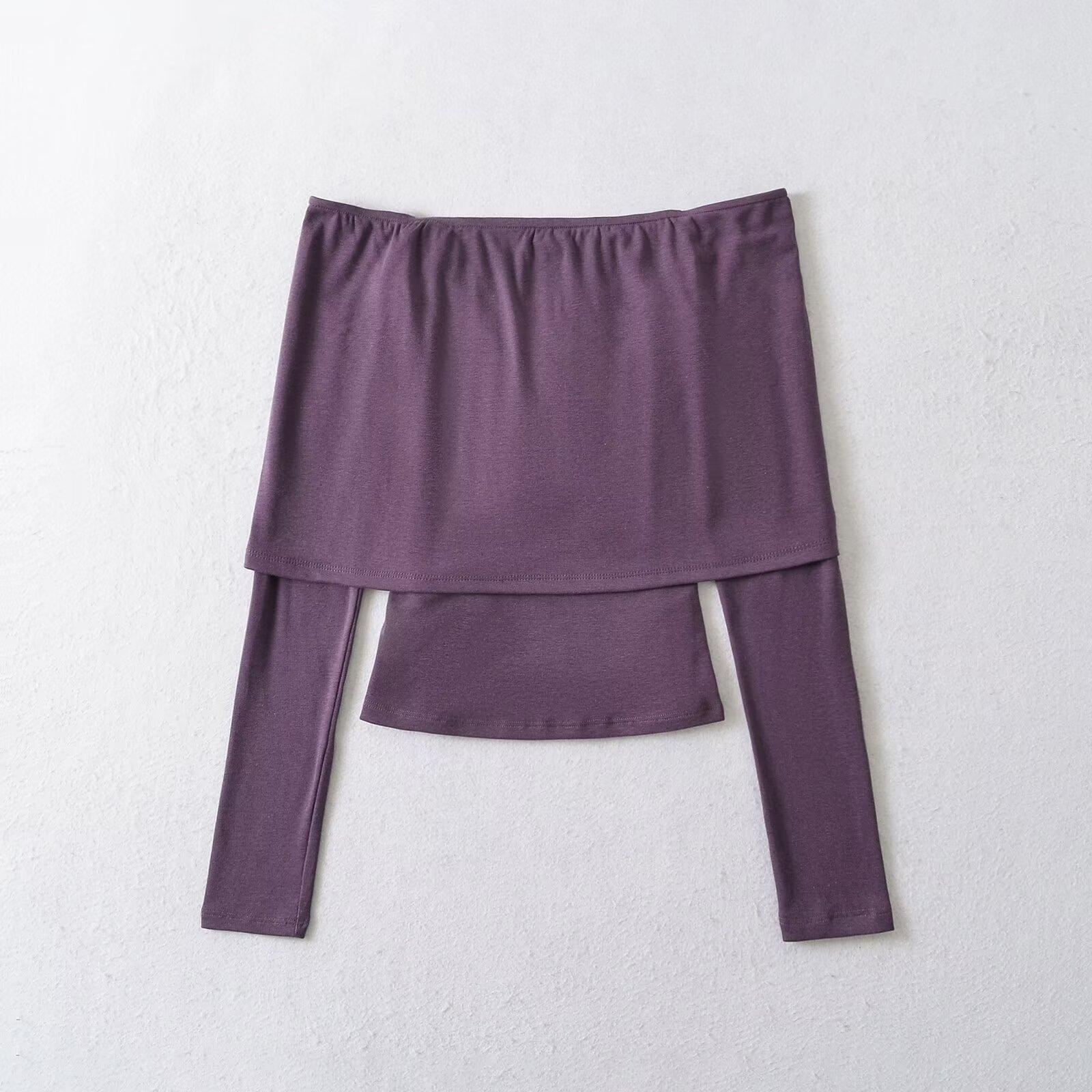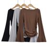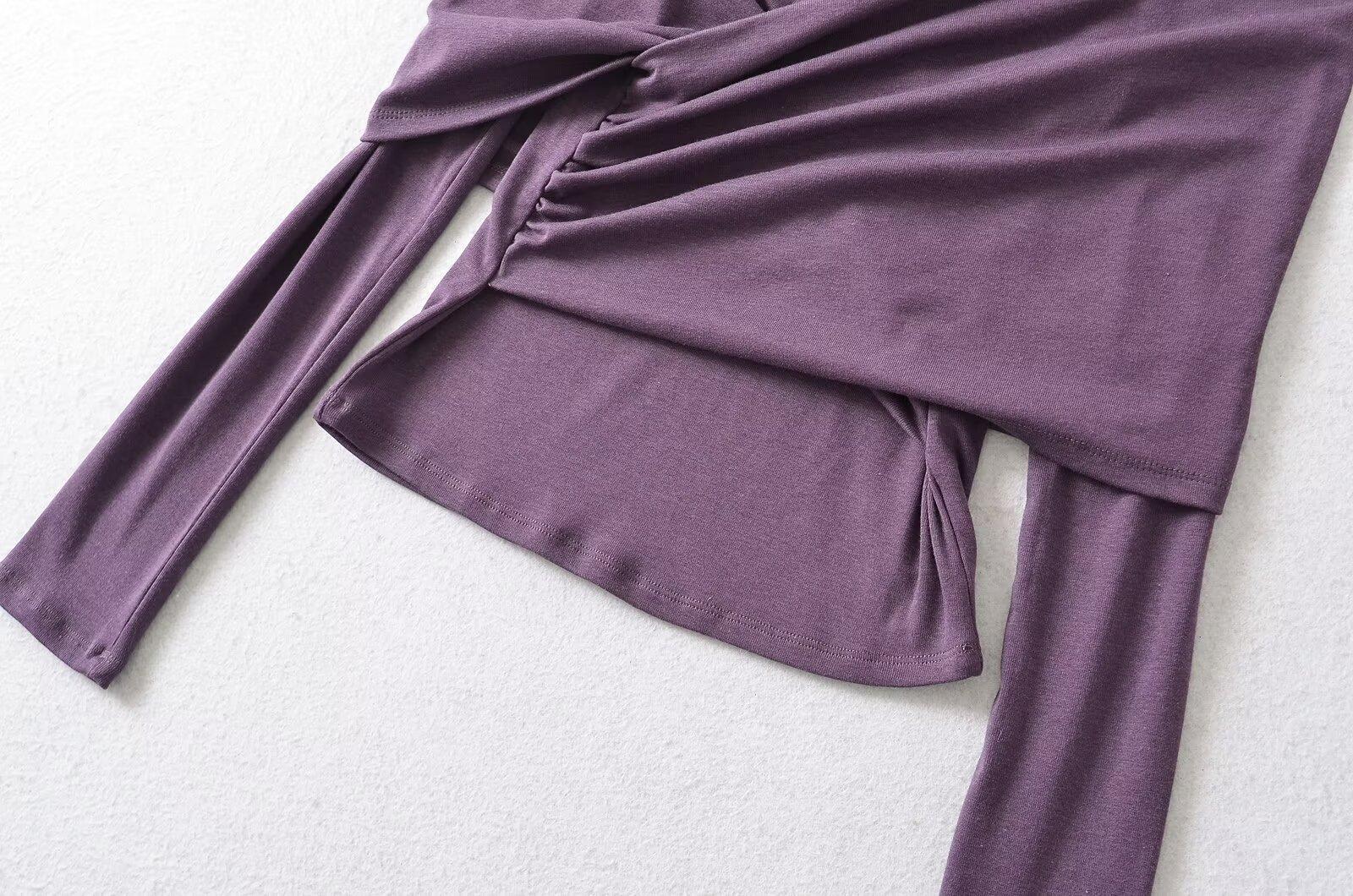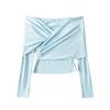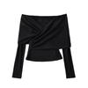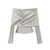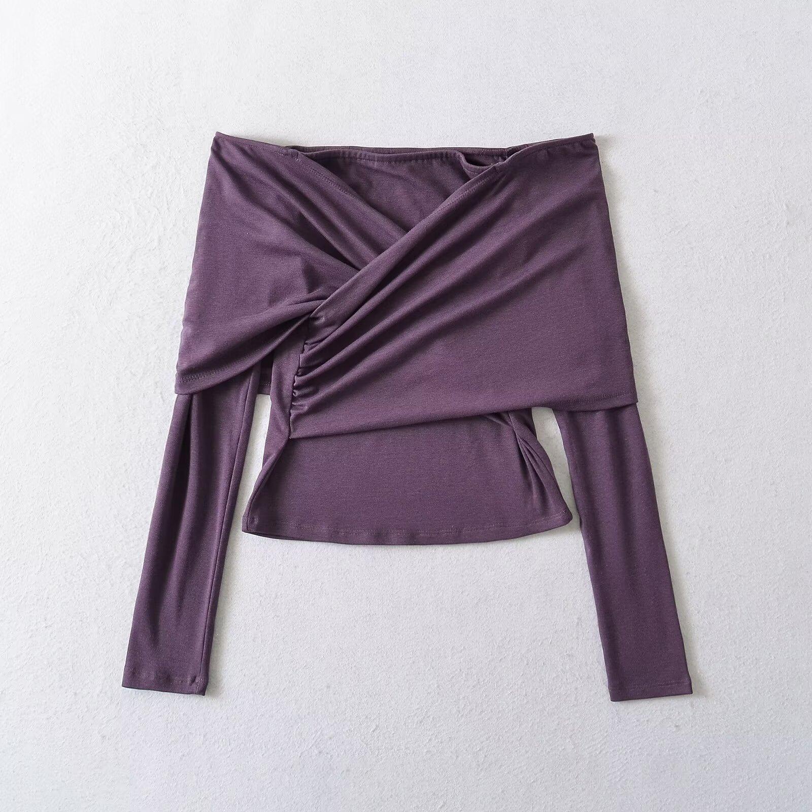 24382-Camiseta de Hombro Plisada de Manga Larga para Spice Girls Europeas y Americanas 2024 Nuevo Diseño con Sentido Slim Fit Top para Mujer