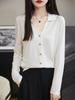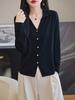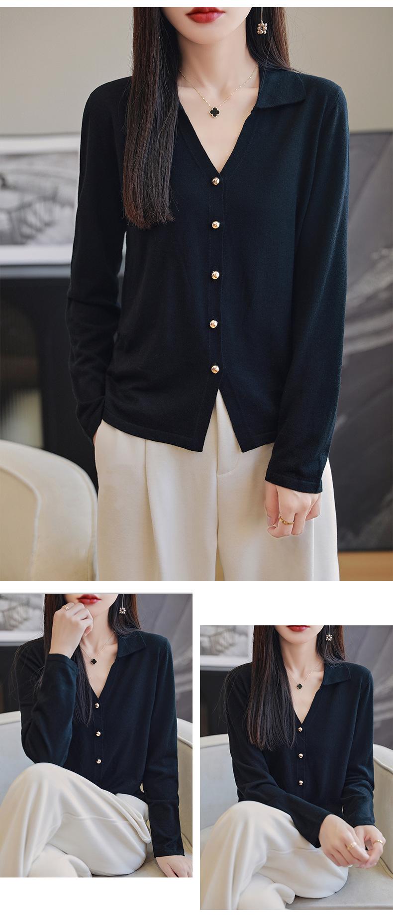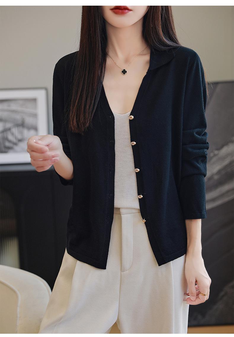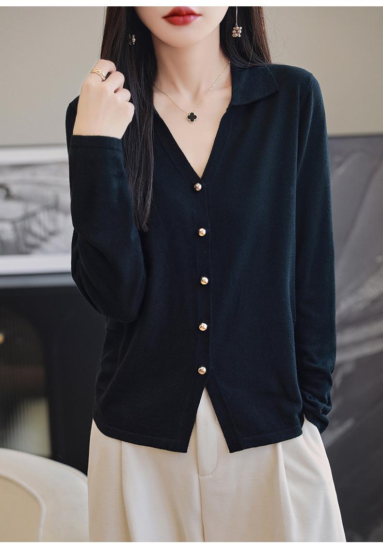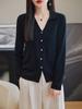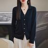 Cárdigan de punto de lana peinada con cuello en V para mujer, color liso, holgado, elegante, informal, sencillo, de moda, de manga larga, con hebilla