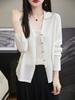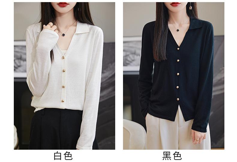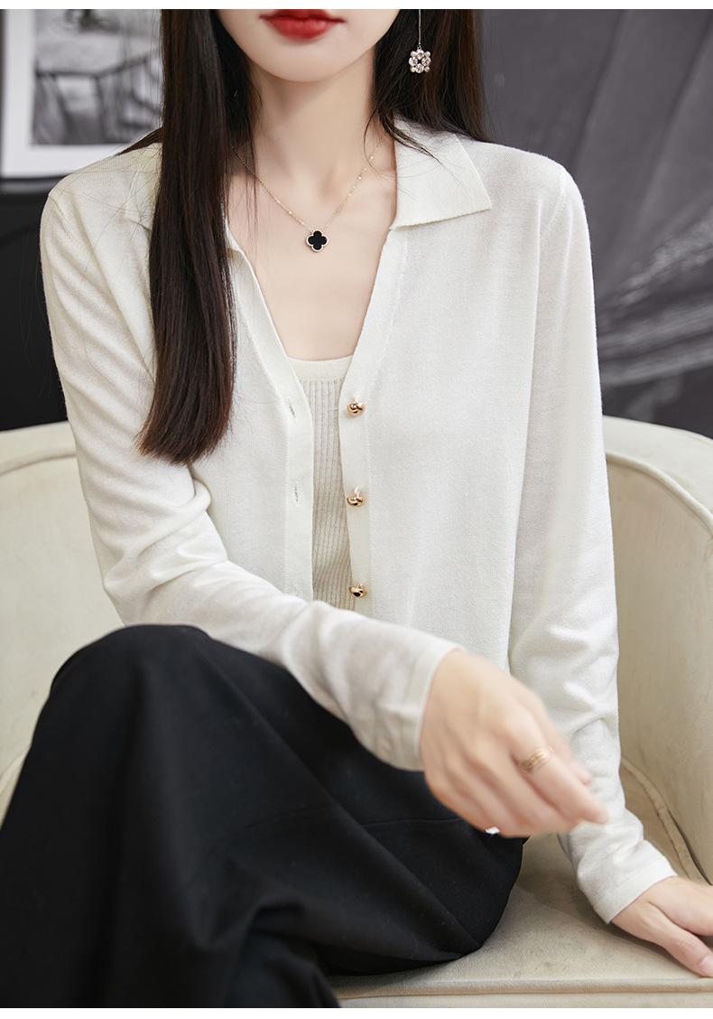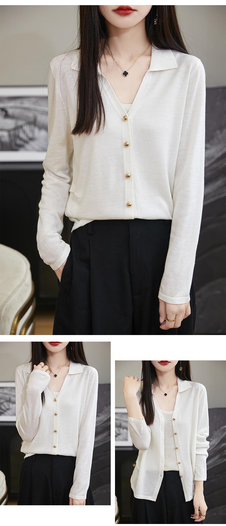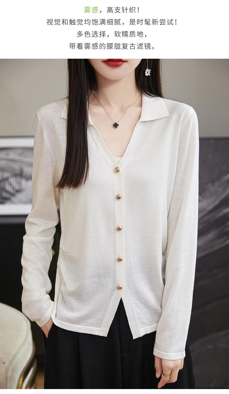 Cárdigan de punto de lana peinada con cuello en V para mujer, color liso, holgado, elegante, informal, sencillo, de moda, de manga larga, con hebilla