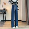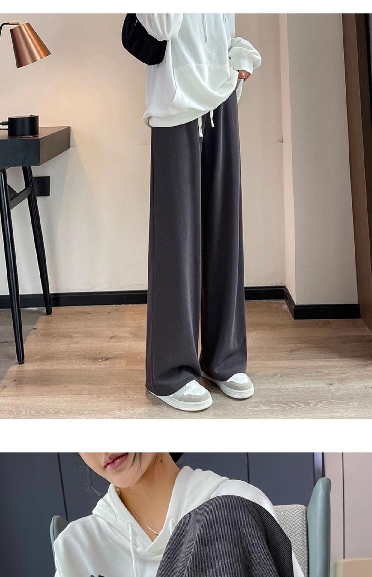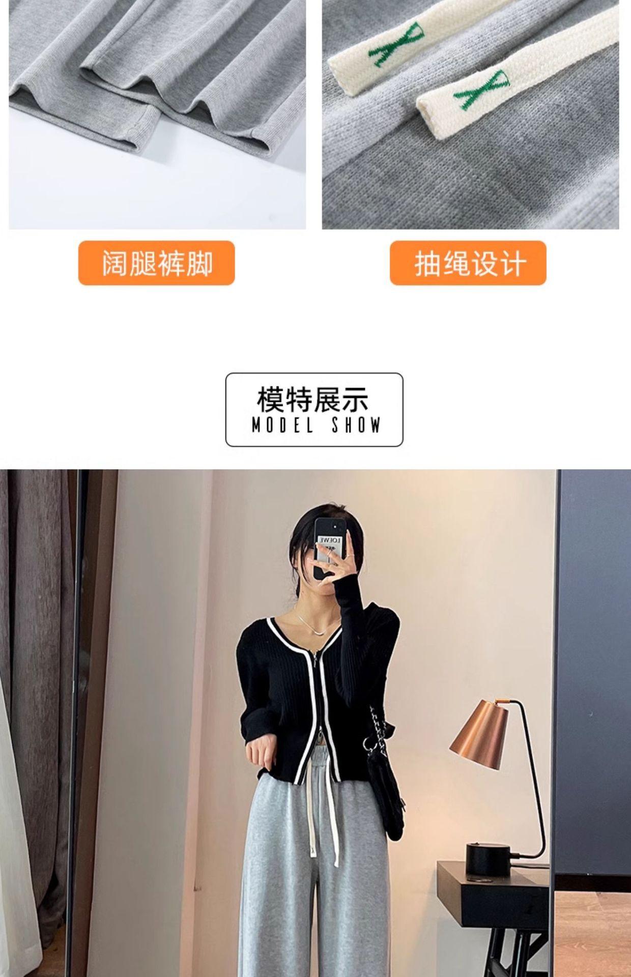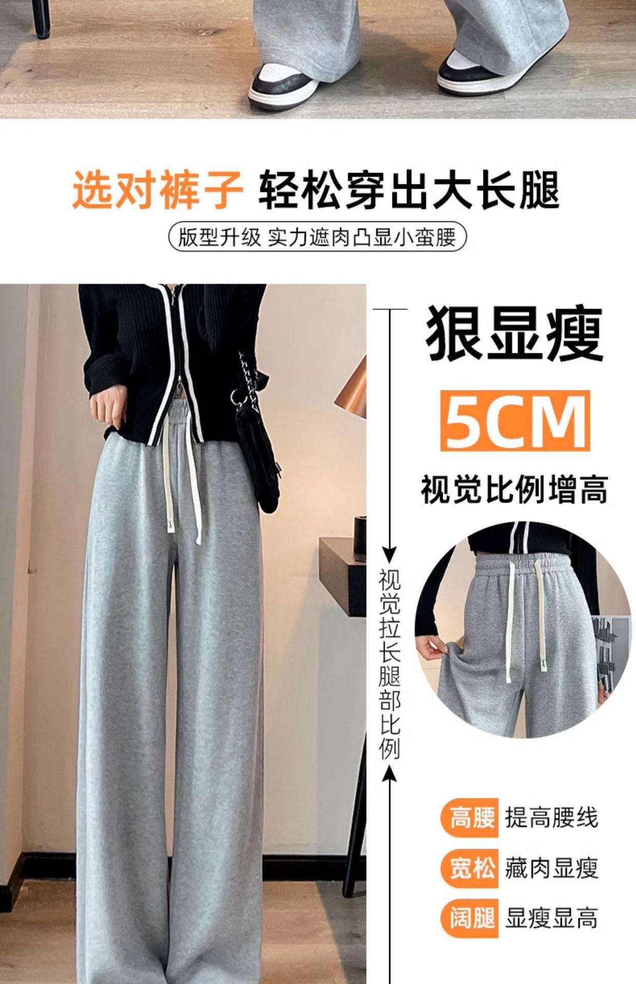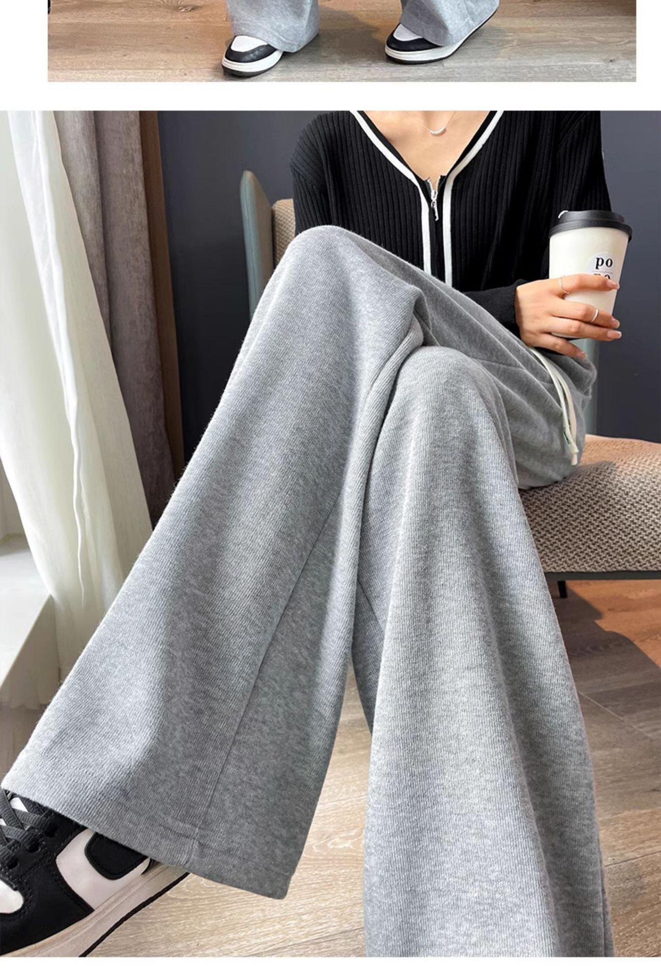 Talla grande Pantalones de pierna ancha para mujer Pantalones holgados adelgazantes 2024 Primavera y Otoño Pantalones deportivos de punto rectos casuales