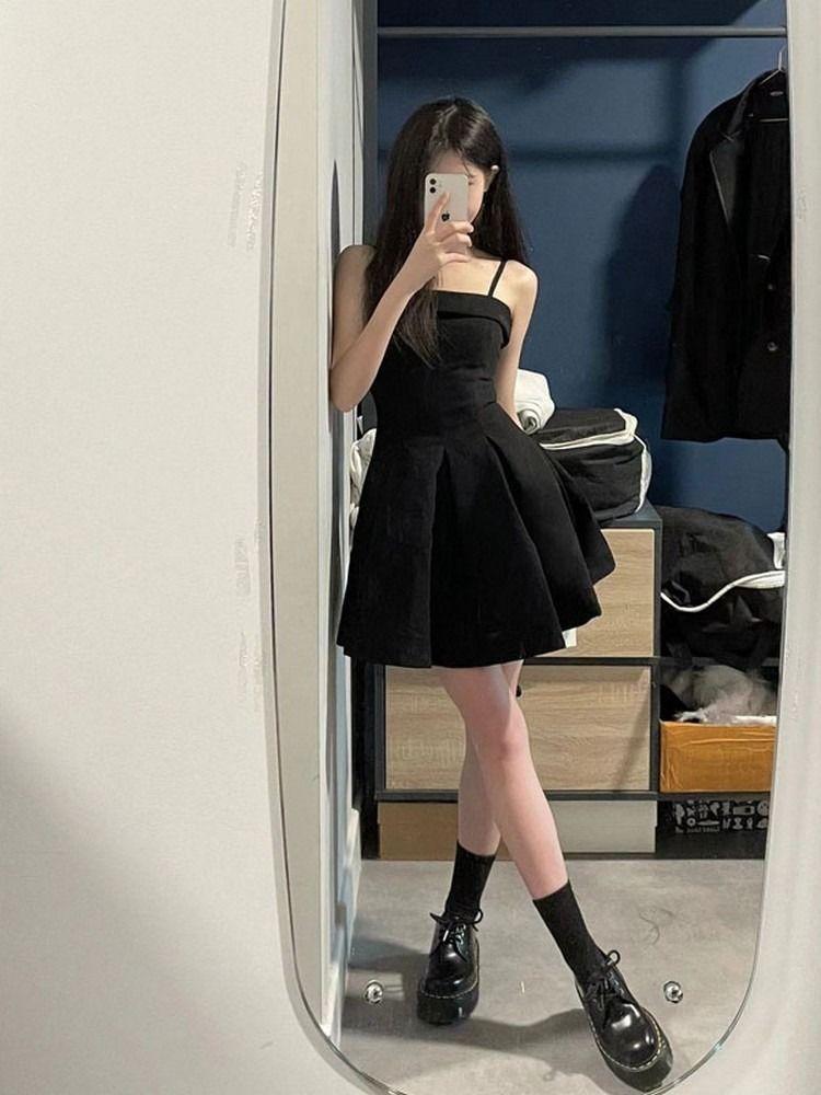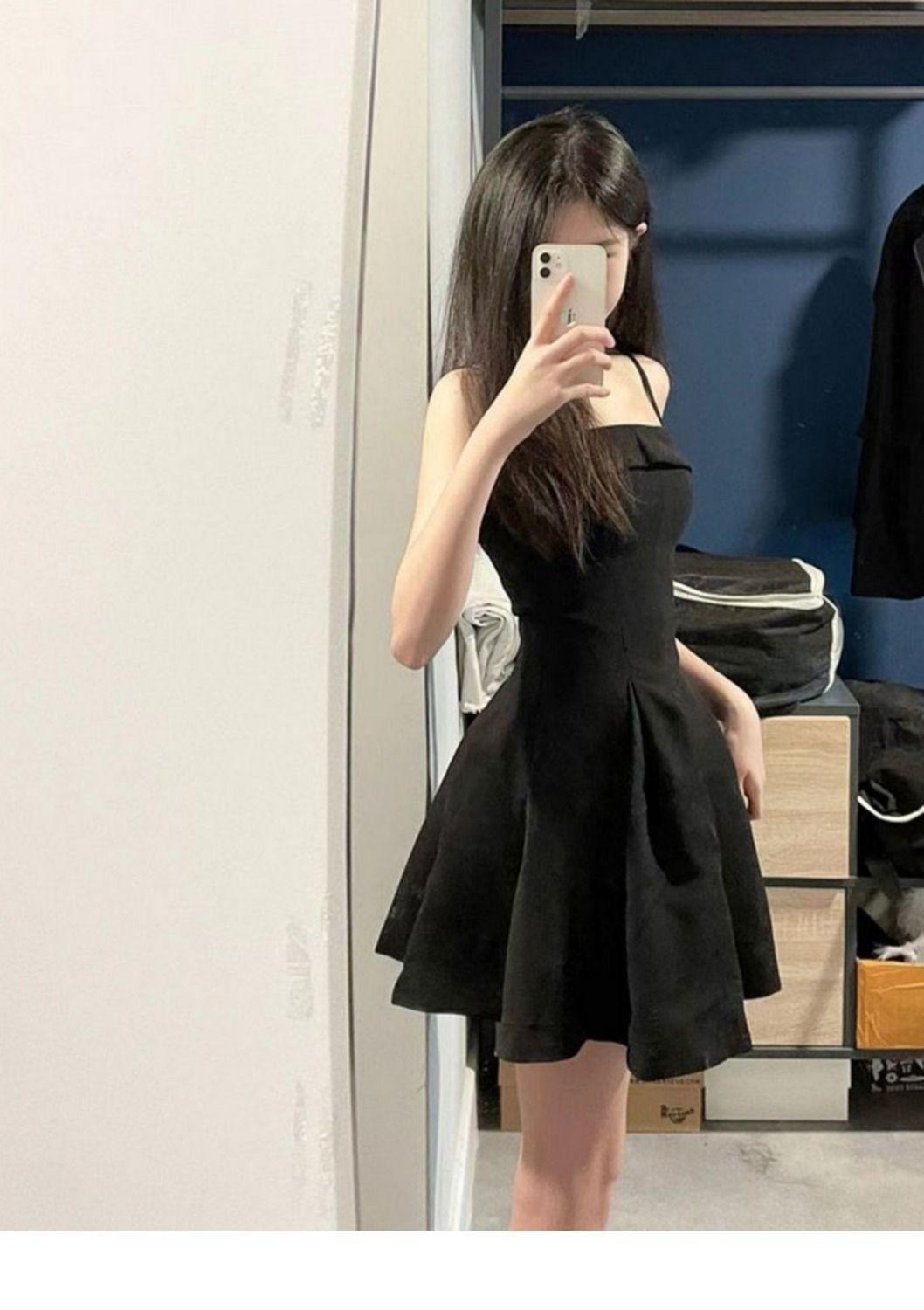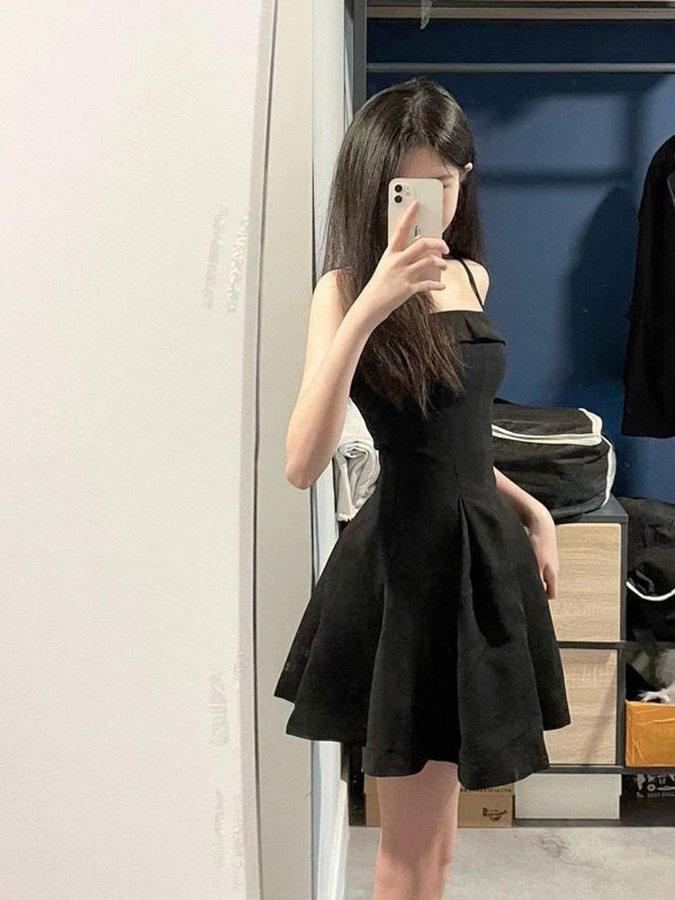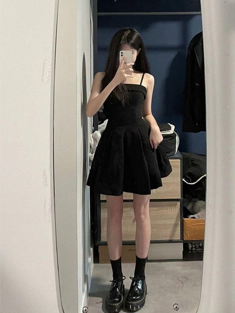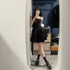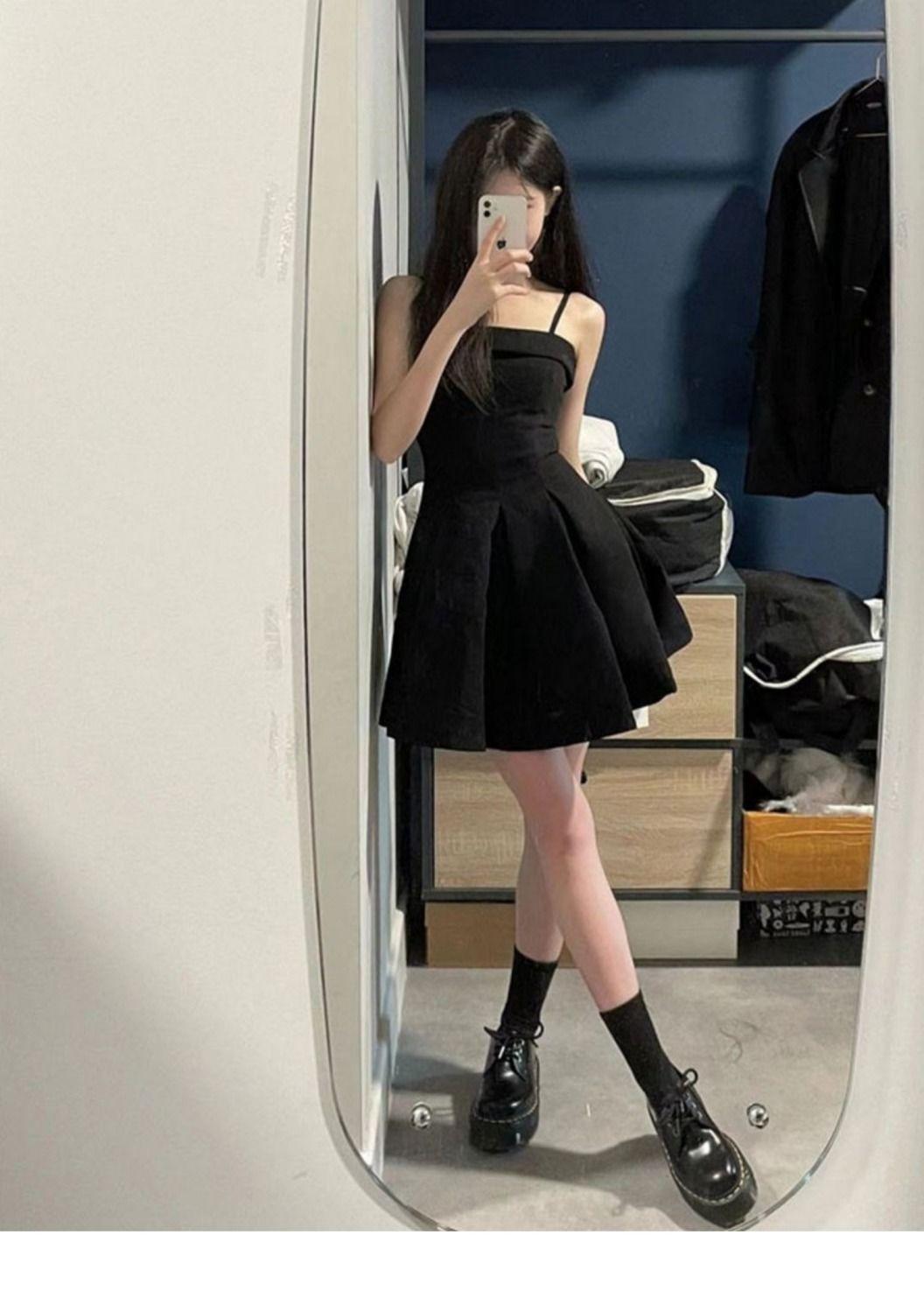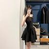 Vestido negro francés Hepburn con tirantes Nuevo Temperamento de alta gama Cintura ajustada Falda adelgazante Falda negra pequeña Falda