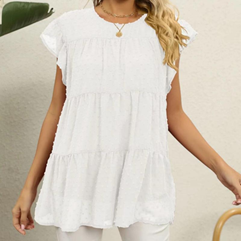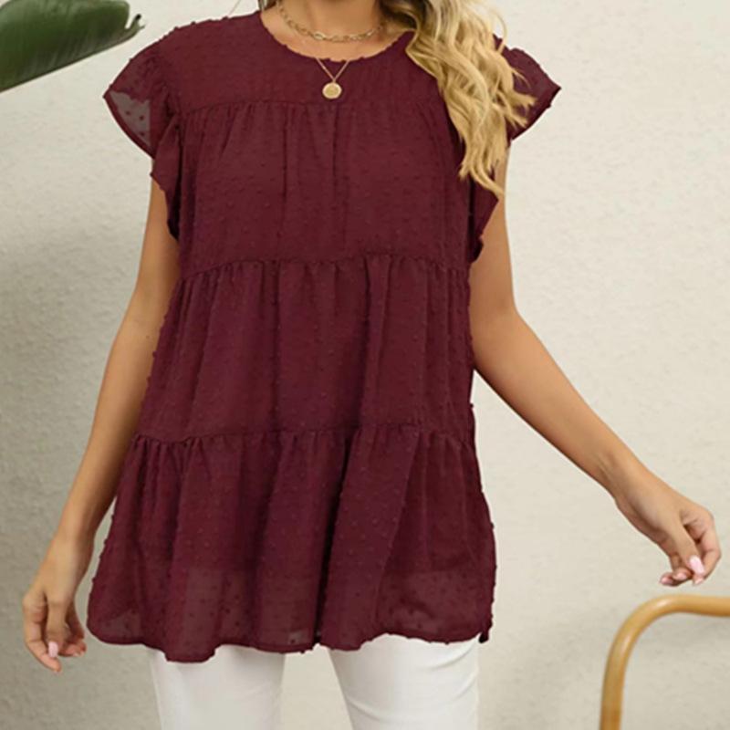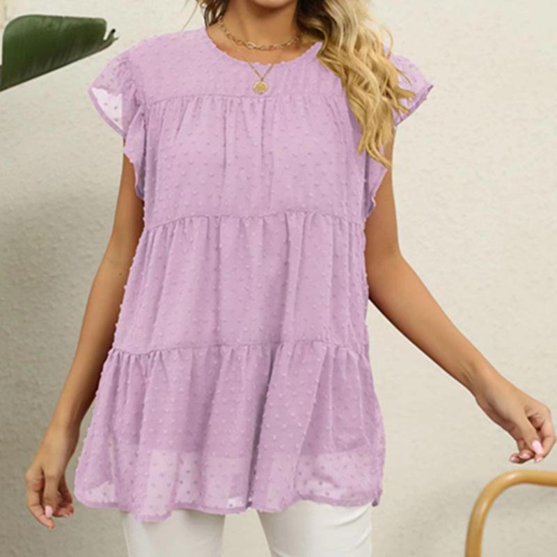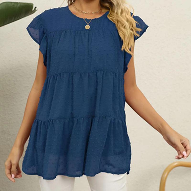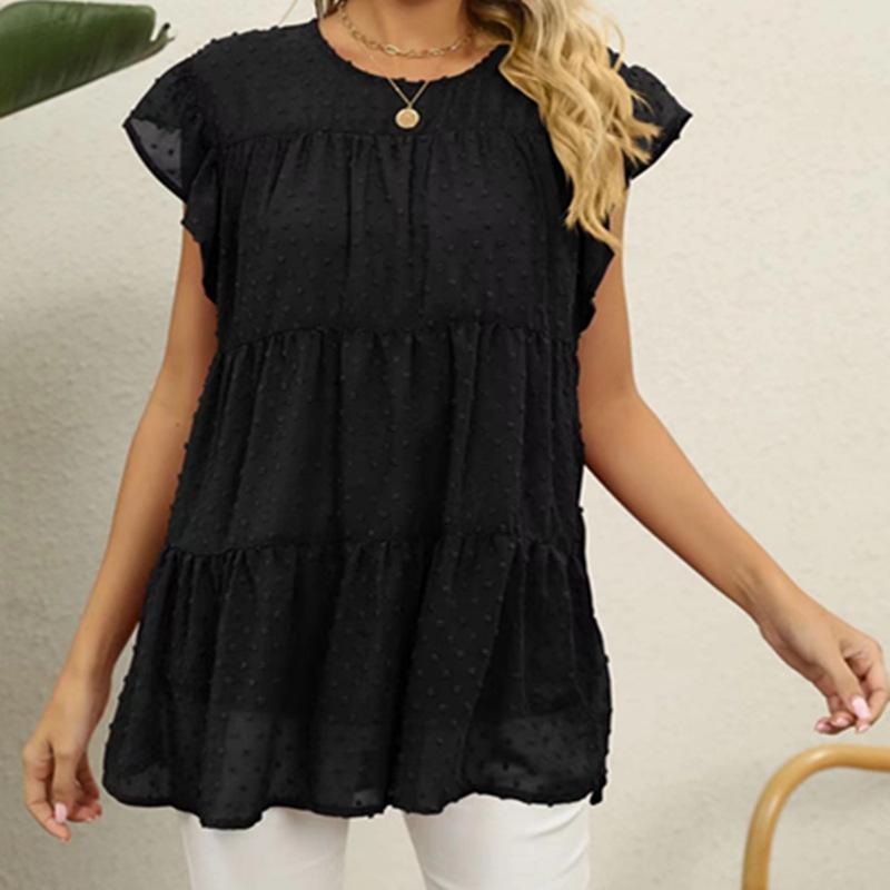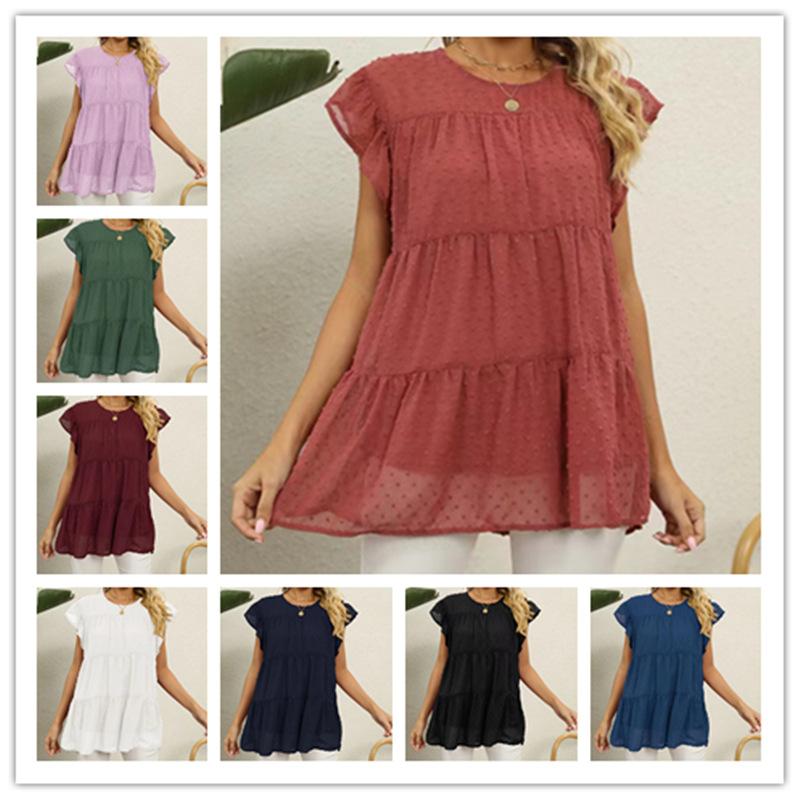 2023 Europeo y Americano Transfronterizo Amazon Popular Jacquard Gasa Tops Sueltos Casuales Modernos Cuello Redondo Ropa Cómoda para Mujer