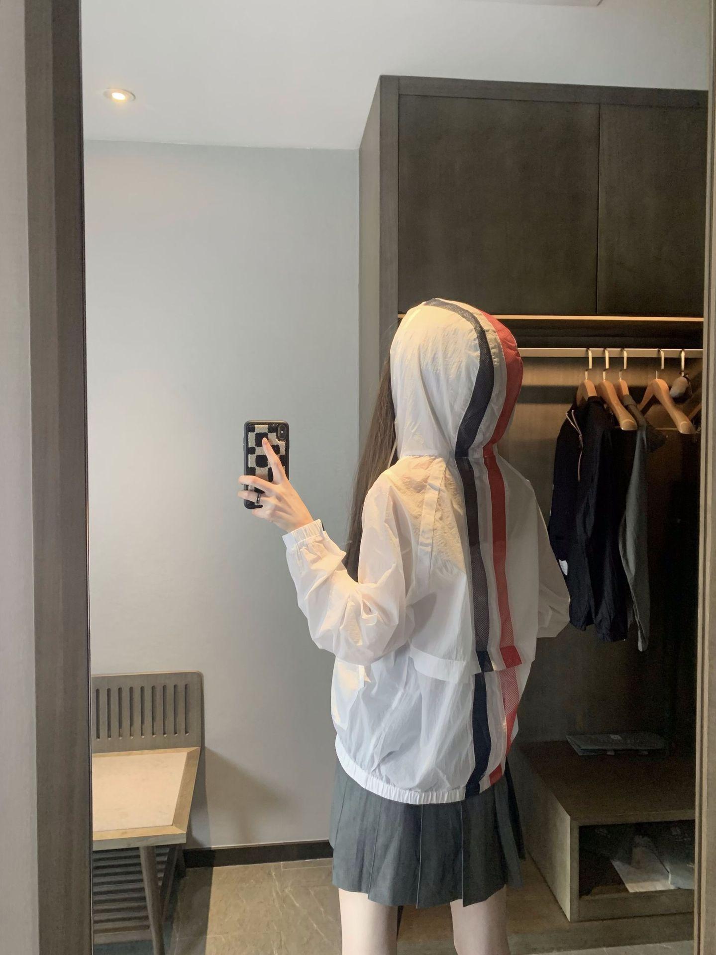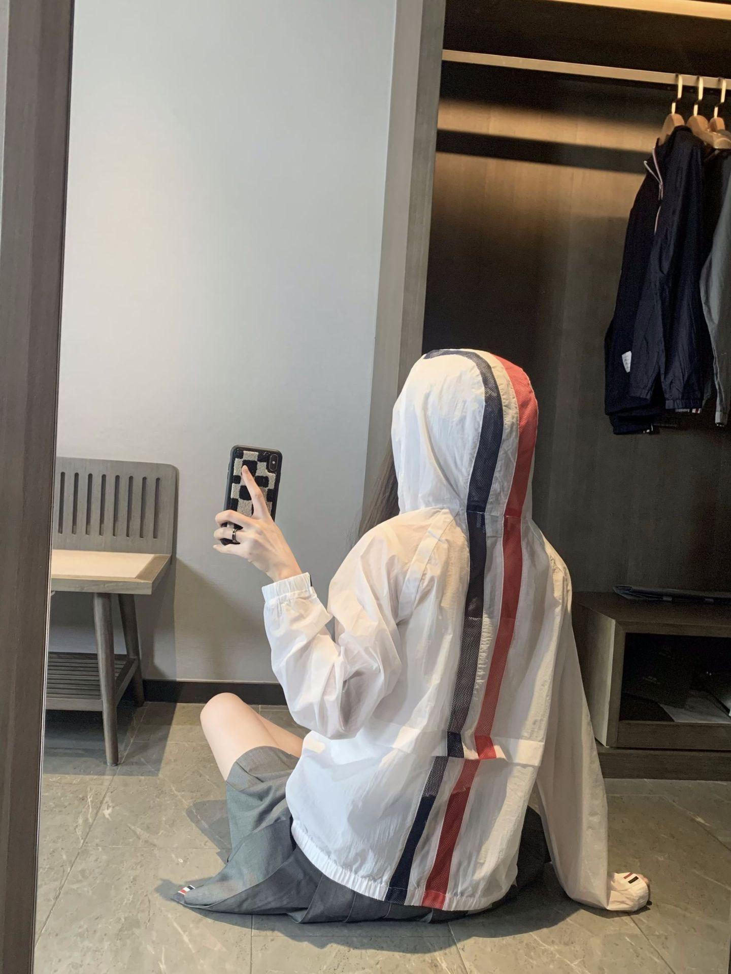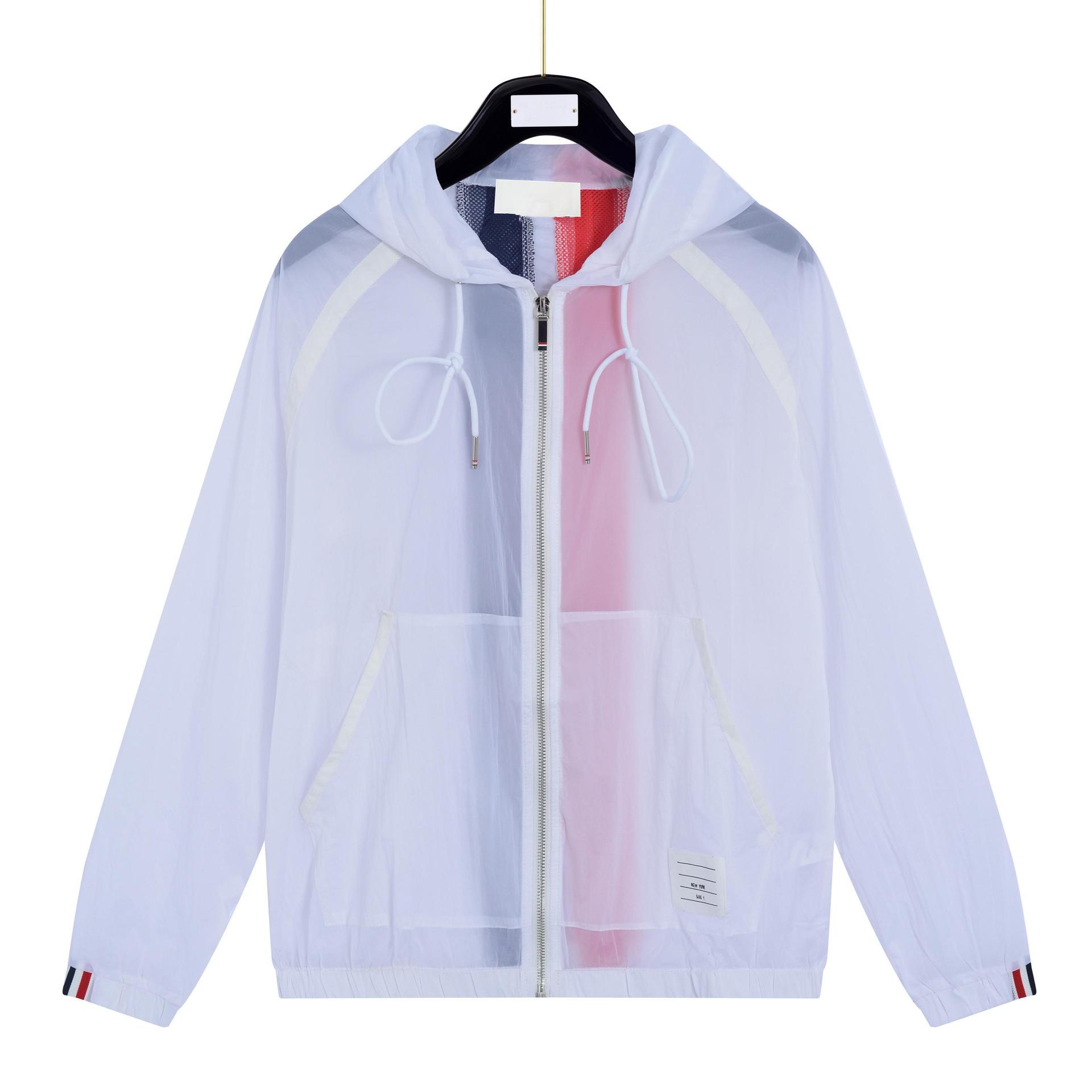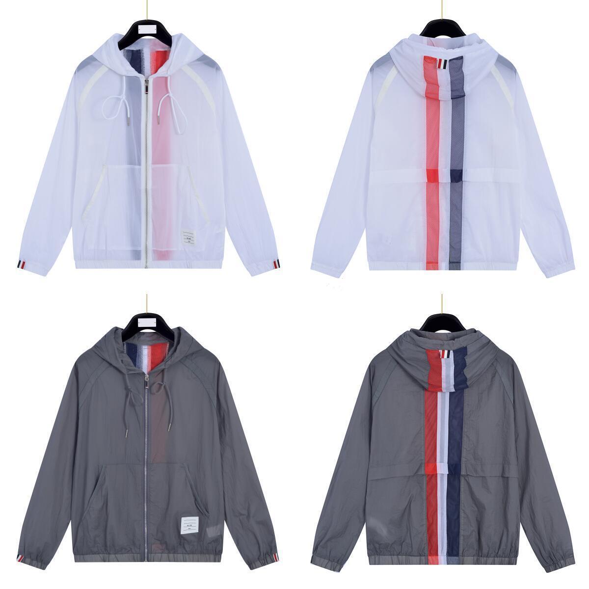 Tb Ropa de Verano con Capucha y Cierre para Mujer, Casual Versátil Unisex Estilo Pareja con Tres Rayas en la Espalda