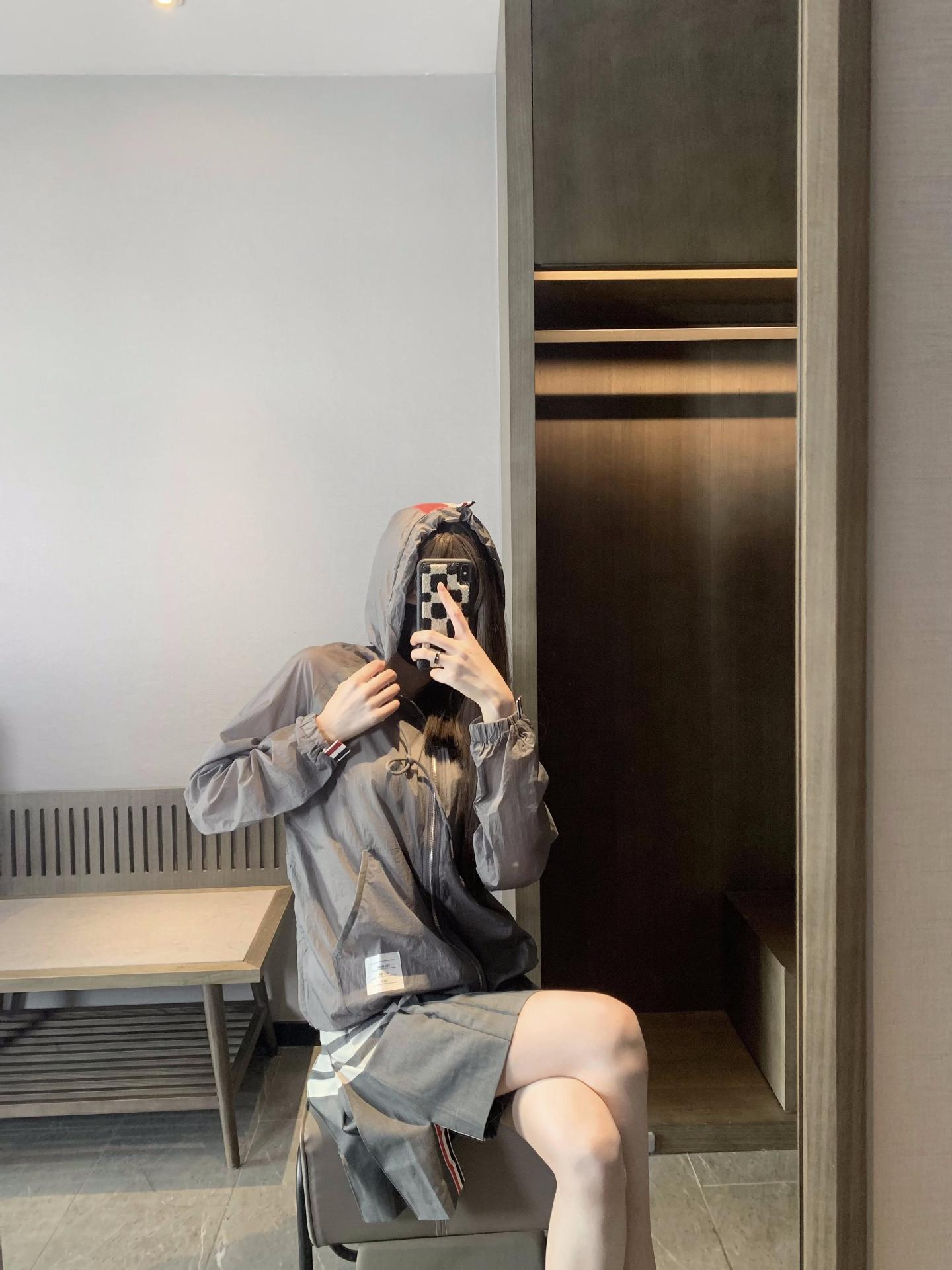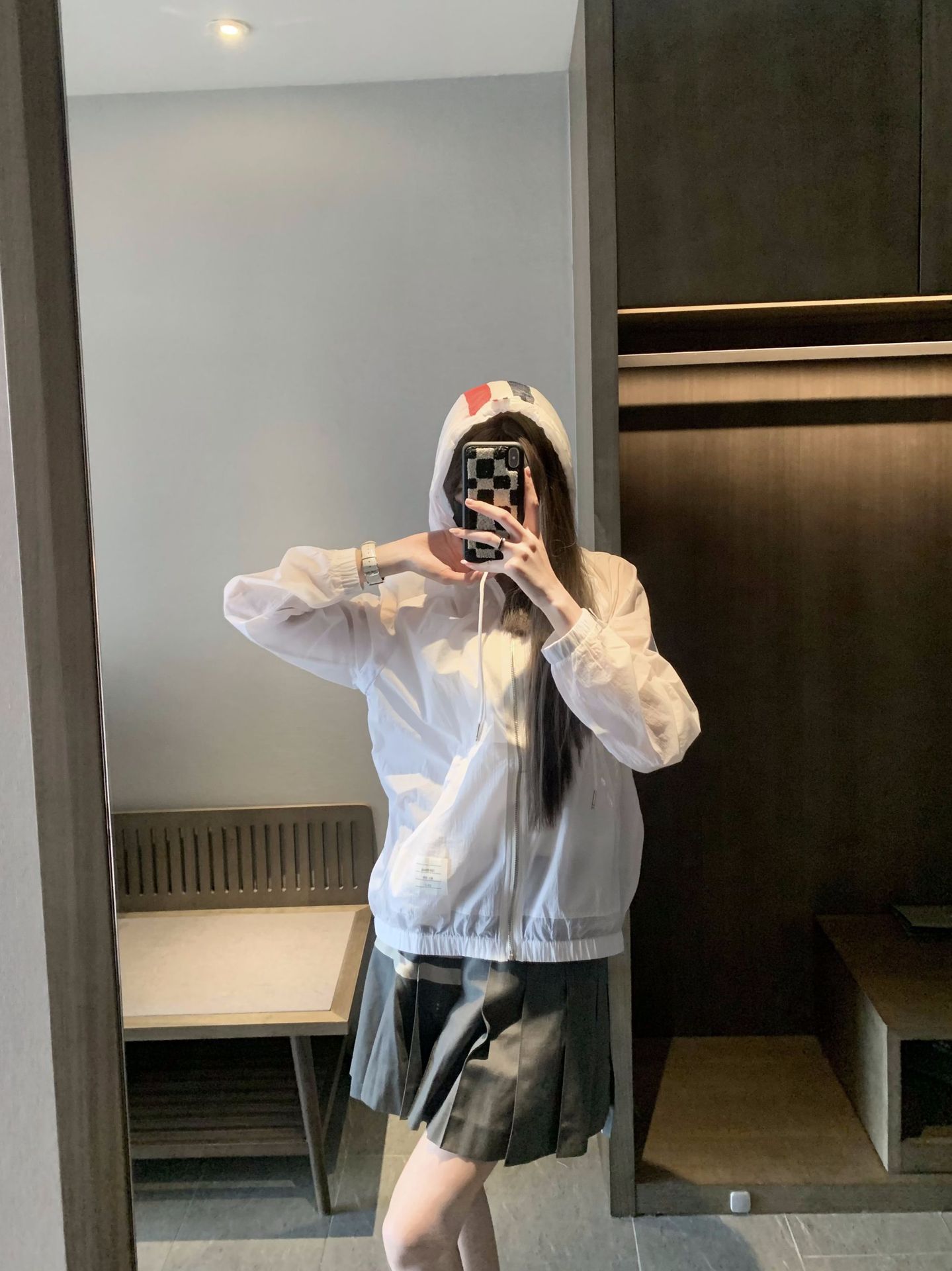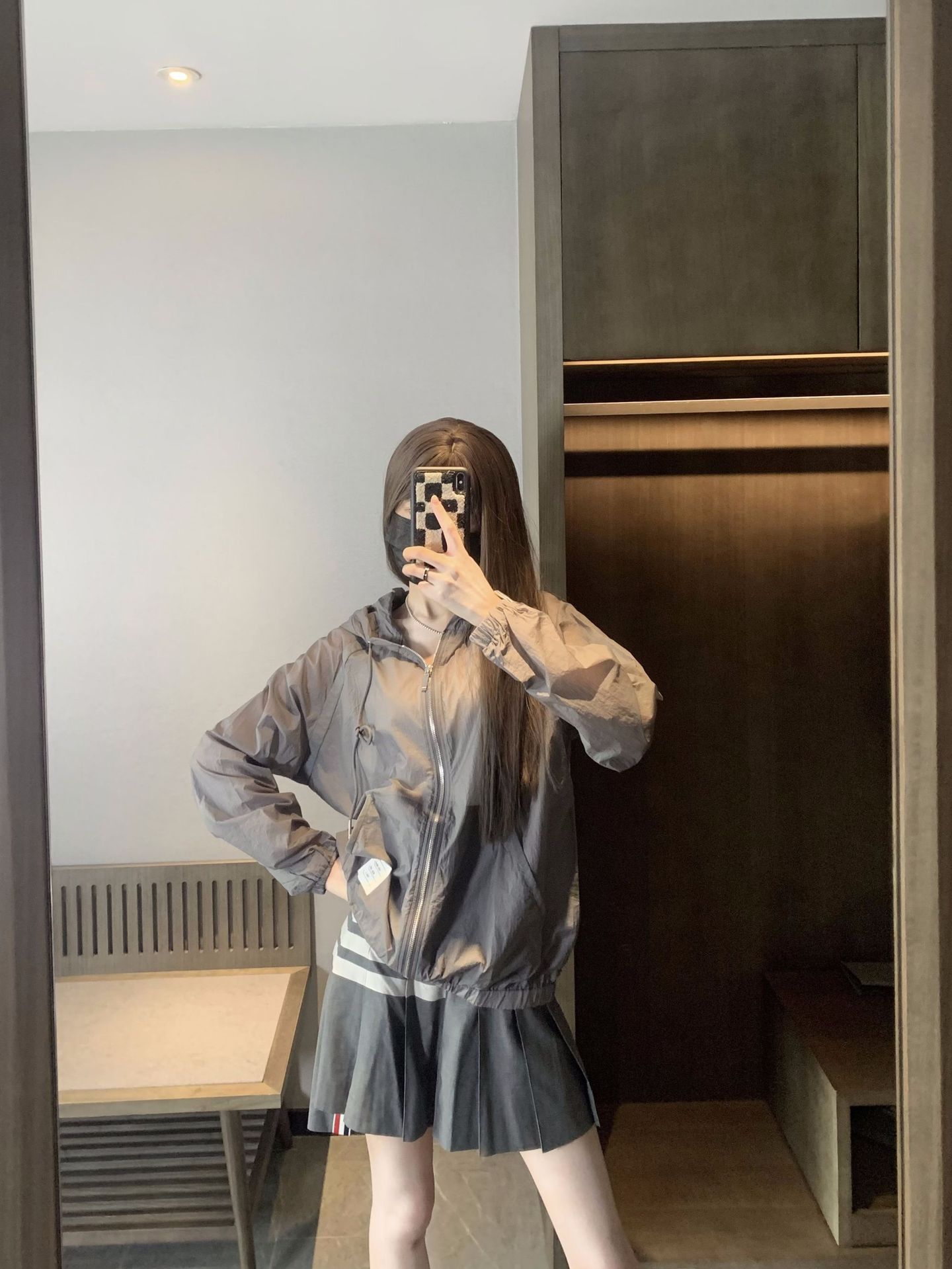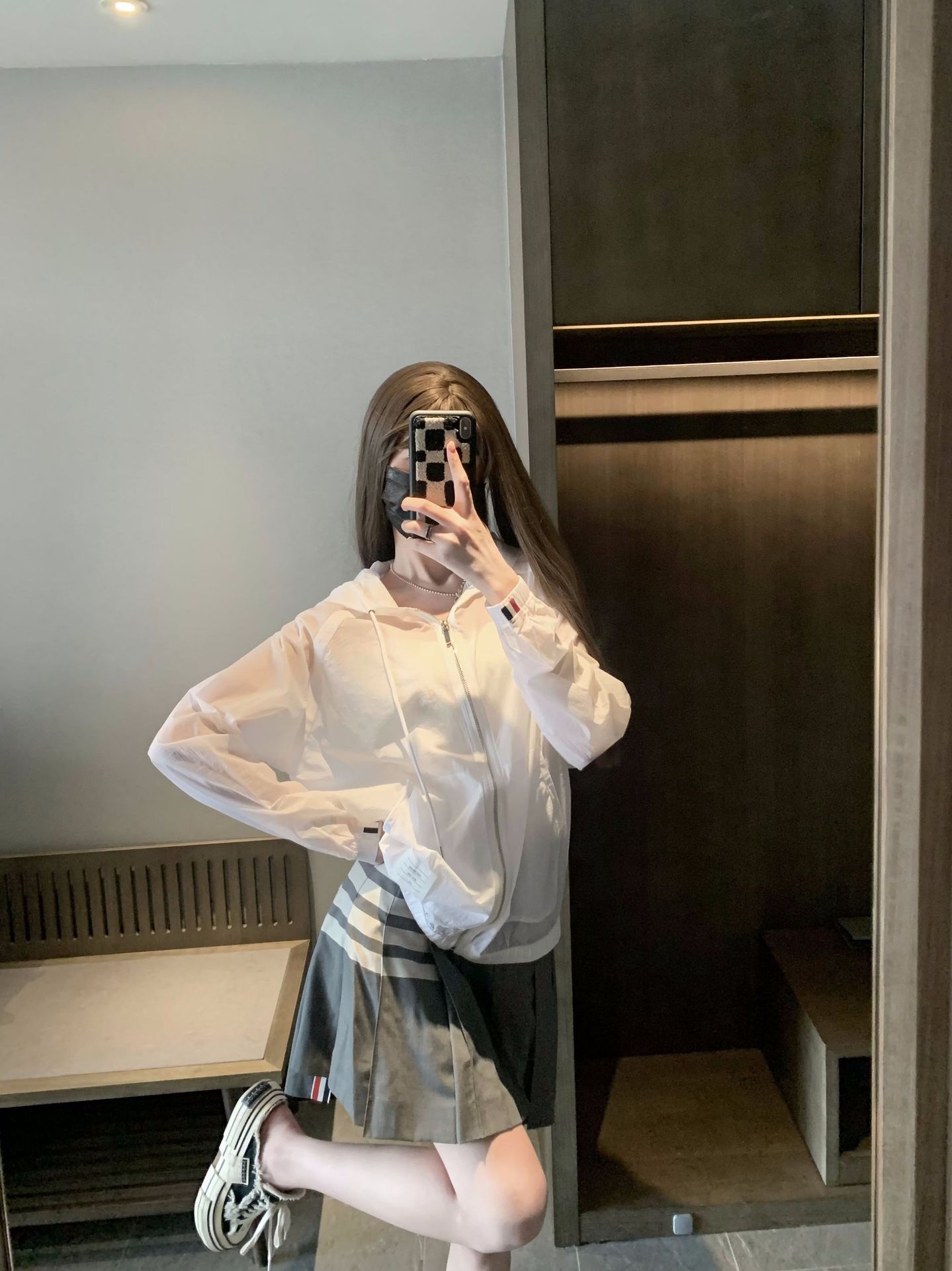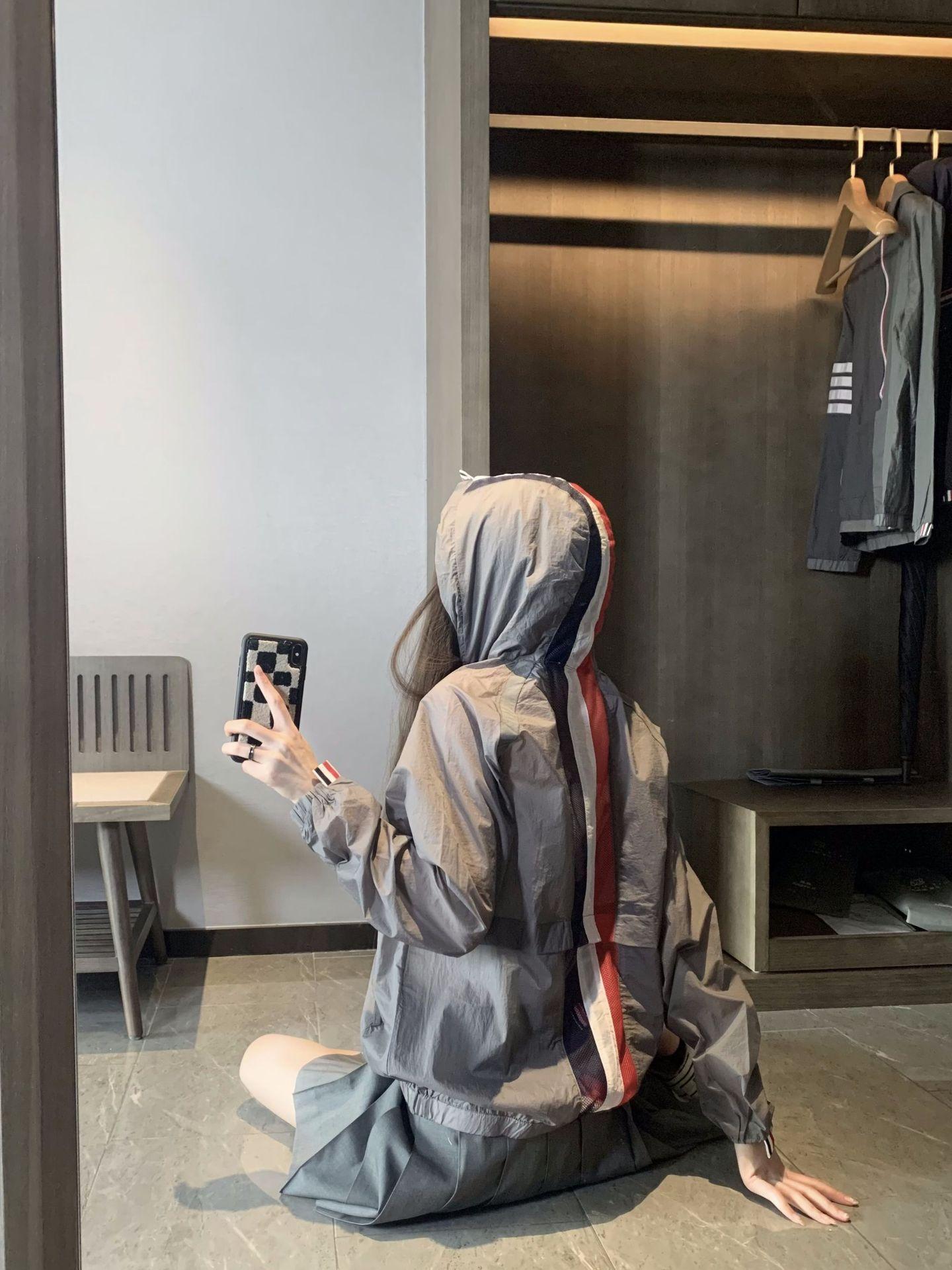 Tb Ropa de Verano con Capucha y Cierre para Mujer, Casual Versátil Unisex Estilo Pareja con Tres Rayas en la Espalda