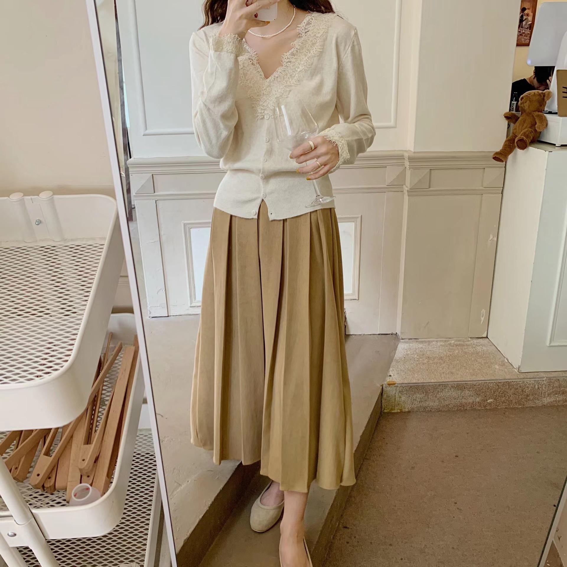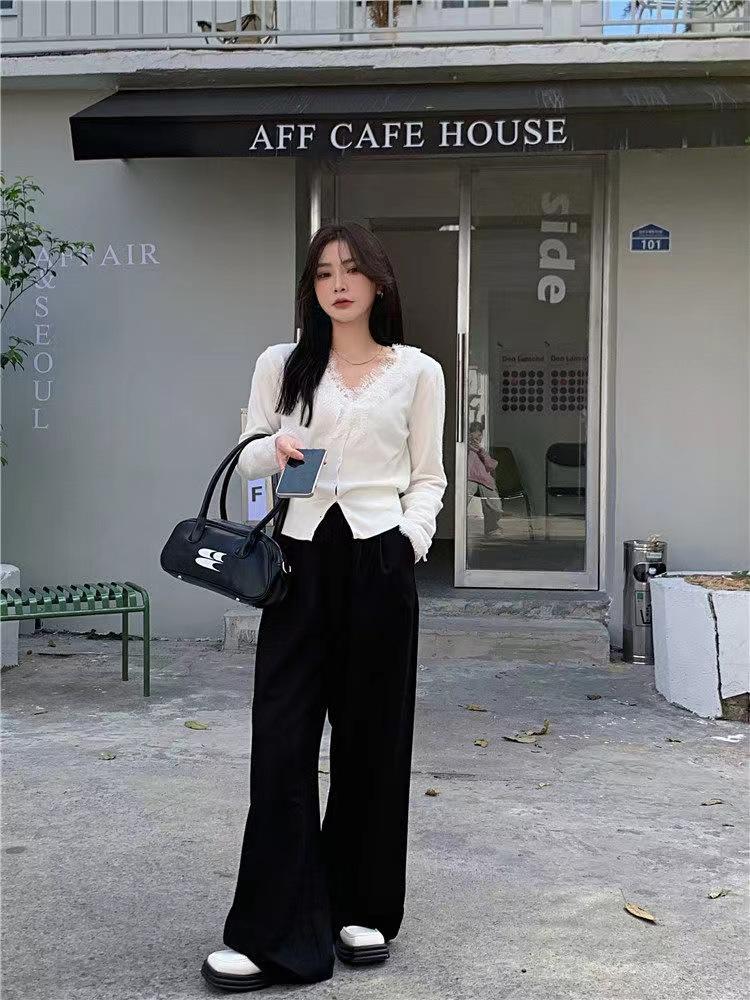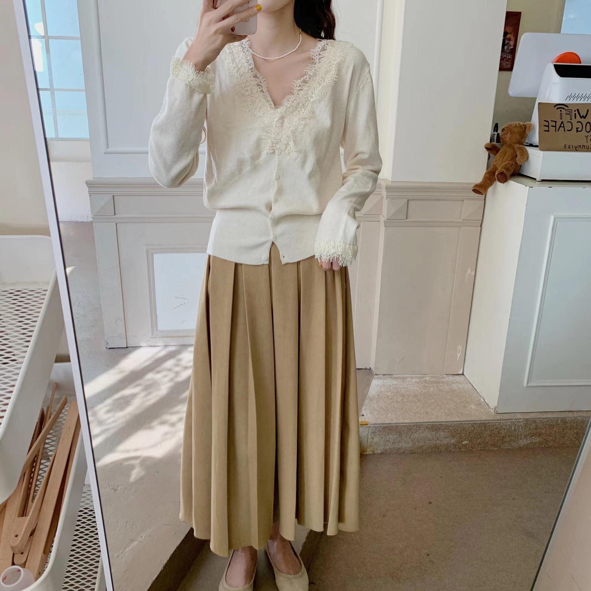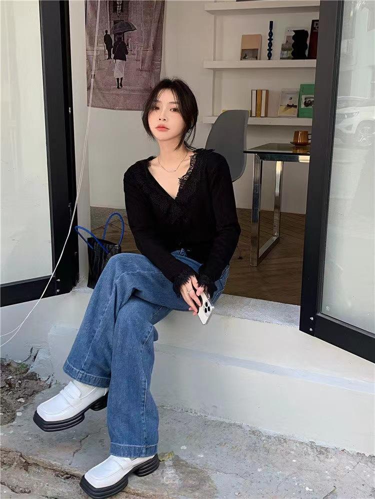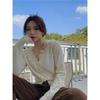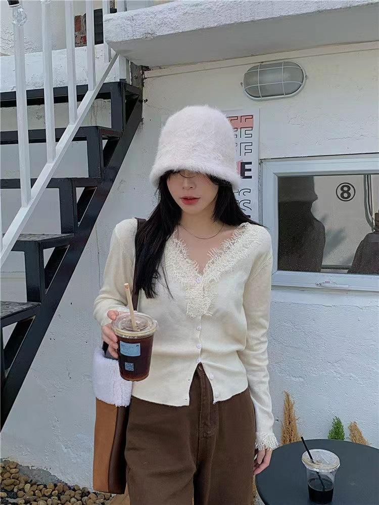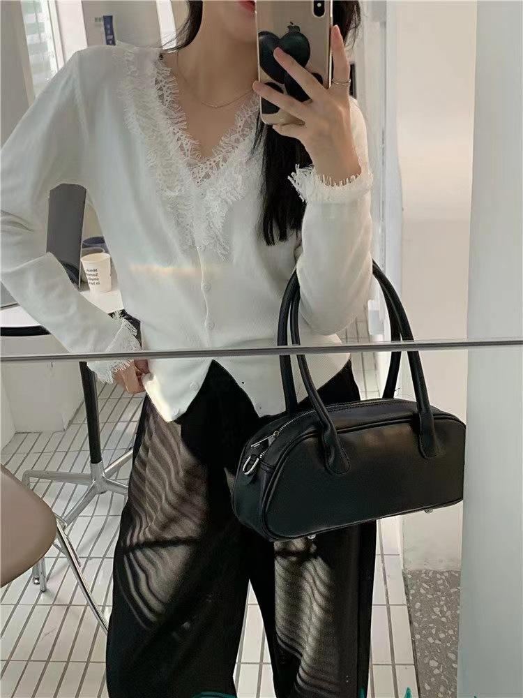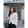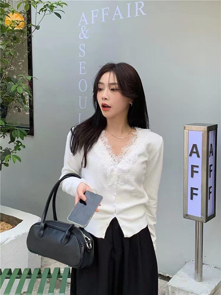 Suéter de encaje con cuello en V para mujer, cárdigan, suéter de primavera, otoño e invierno, diseño único, elegante, top corto, camisa base para mujer