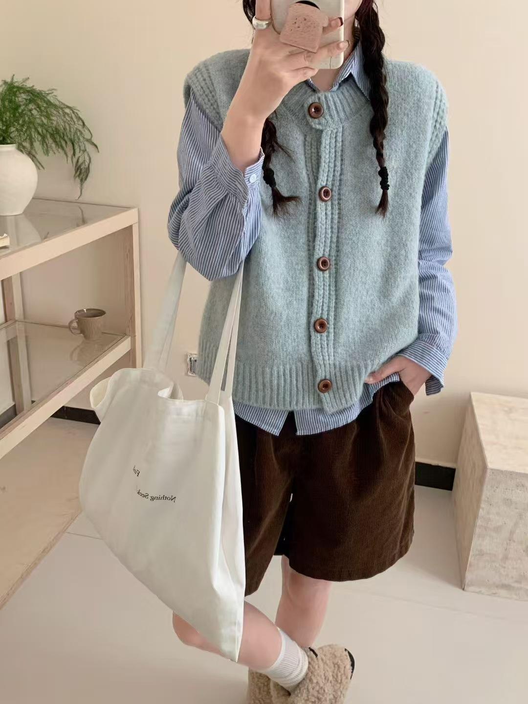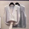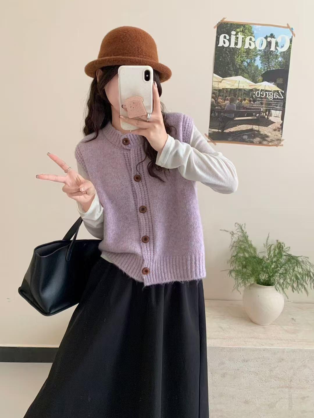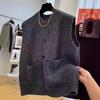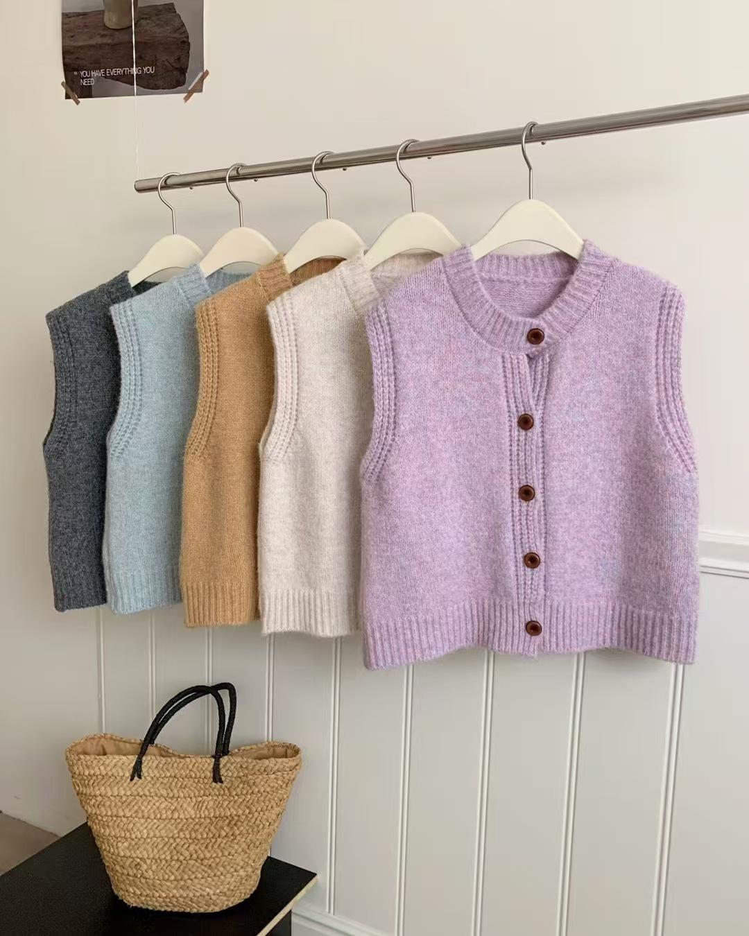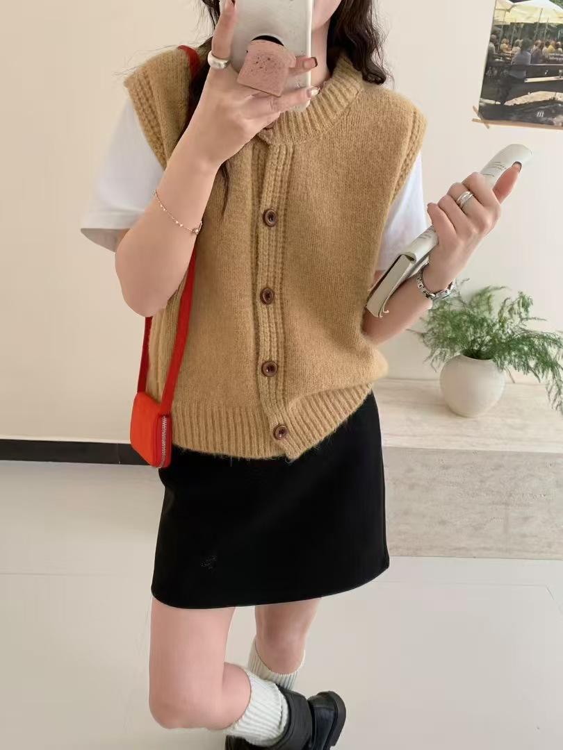 Chaleco Básico Simple de Punto con Cuello Redondo para Mujer Primavera y Otoño 2025 Suave Ceroso Combinable de un Solo Botón sin Mangas Suéter para Mujer
