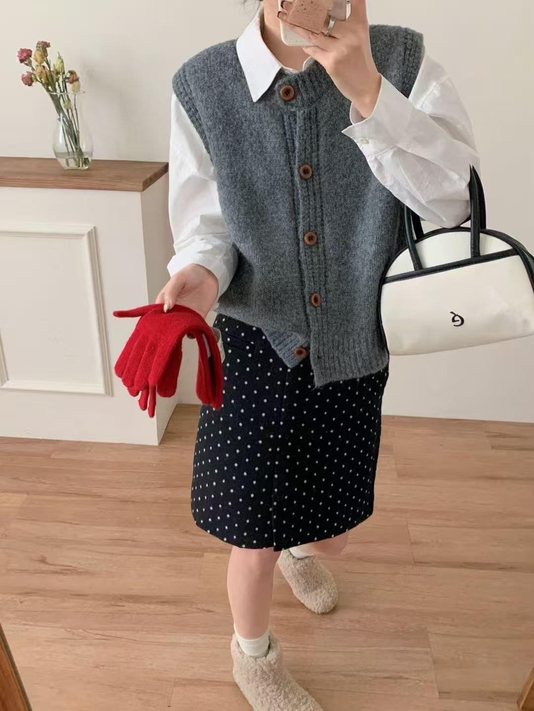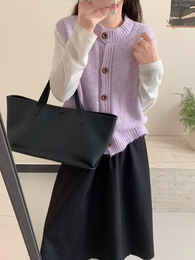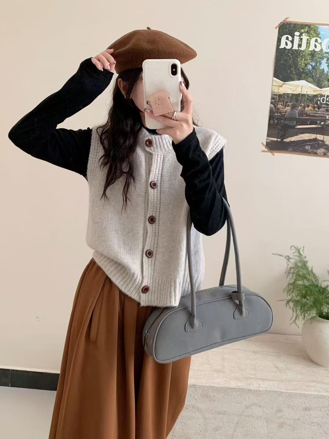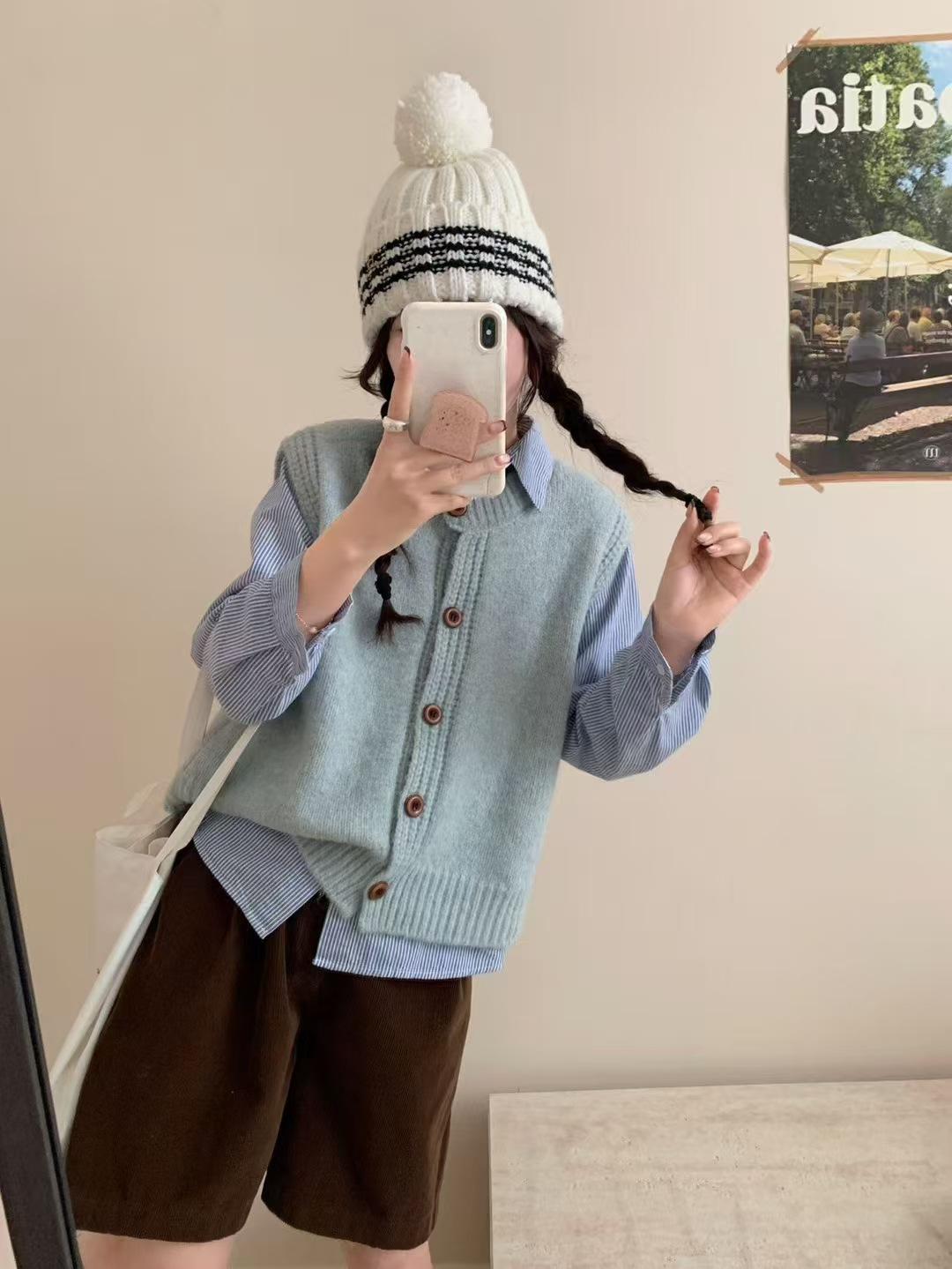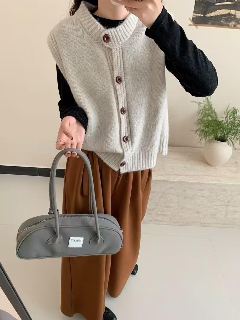 Chaleco Básico Simple de Punto con Cuello Redondo para Mujer Primavera y Otoño 2025 Suave Ceroso Combinable de un Solo Botón sin Mangas Suéter para Mujer