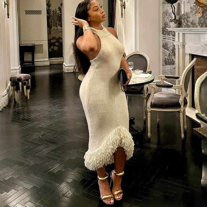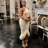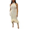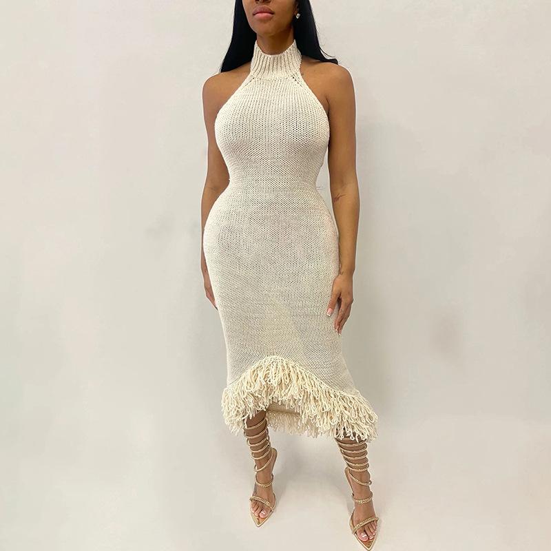 Vestido de lana ajustado de cintura alta sin espalda con cuello colgante sexy para mujer, estilo europeo y americano transfronterizo, primavera 2025